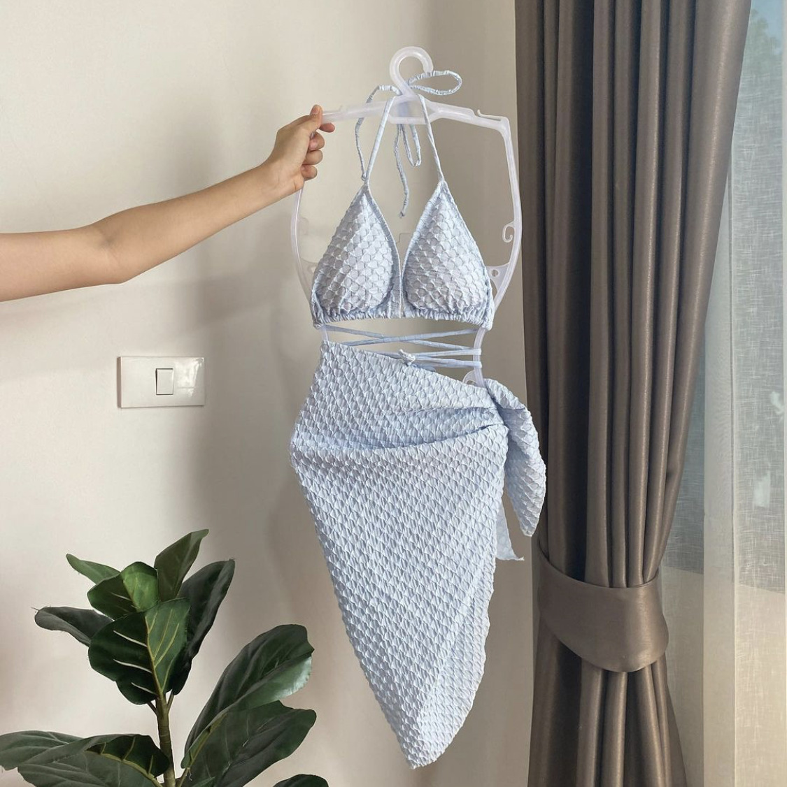 Новинка 2023, разделенный комплект бикини из трех предметов с бретелями, сексуальное бикини, женственный отдых, европейский и американский пляж