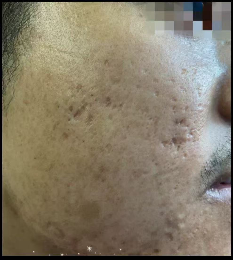 Яма от прыщей набухает, сжимает и полон рубцов