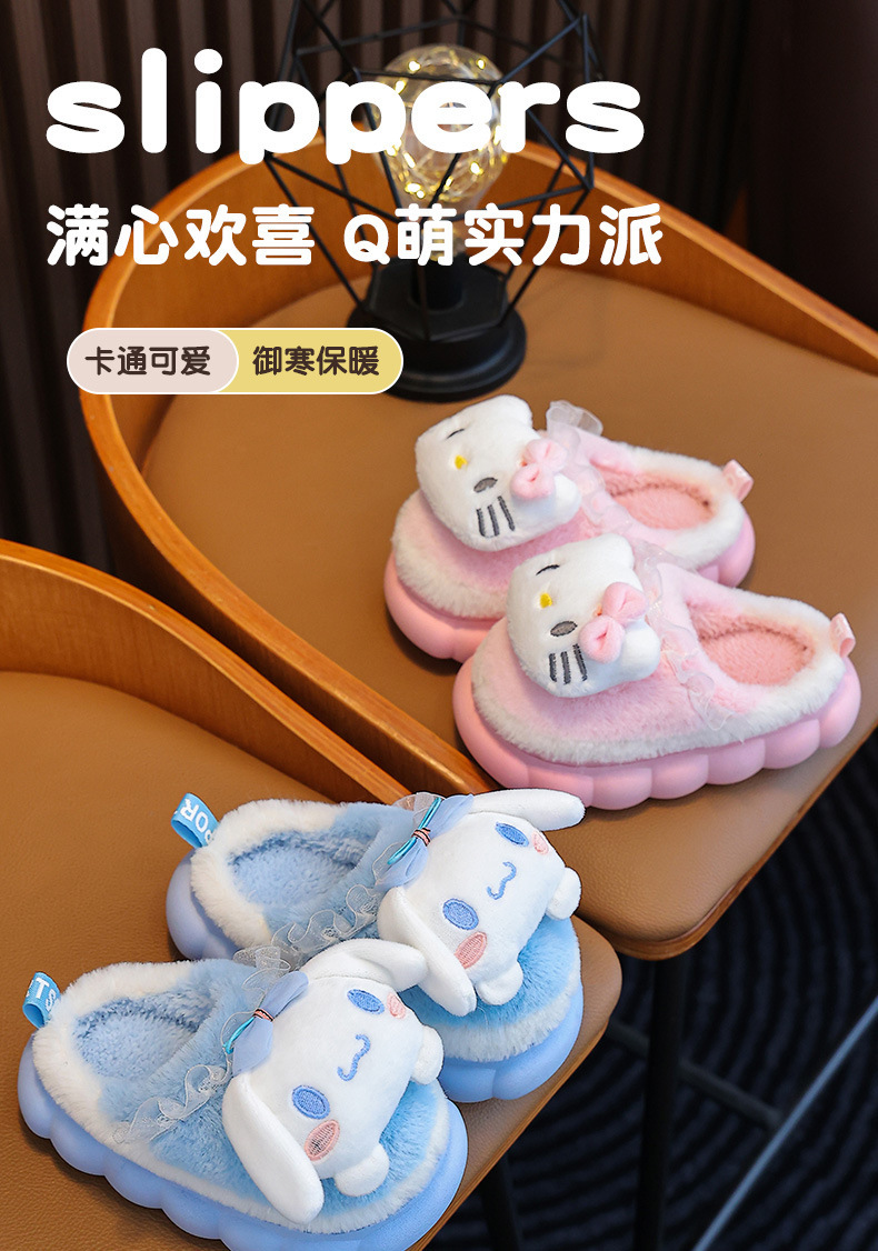 Новые осенние и зимние детские хлопковые тапочки для мальчиков и девочек в помещении милые мультяшные тапочки для девочек
