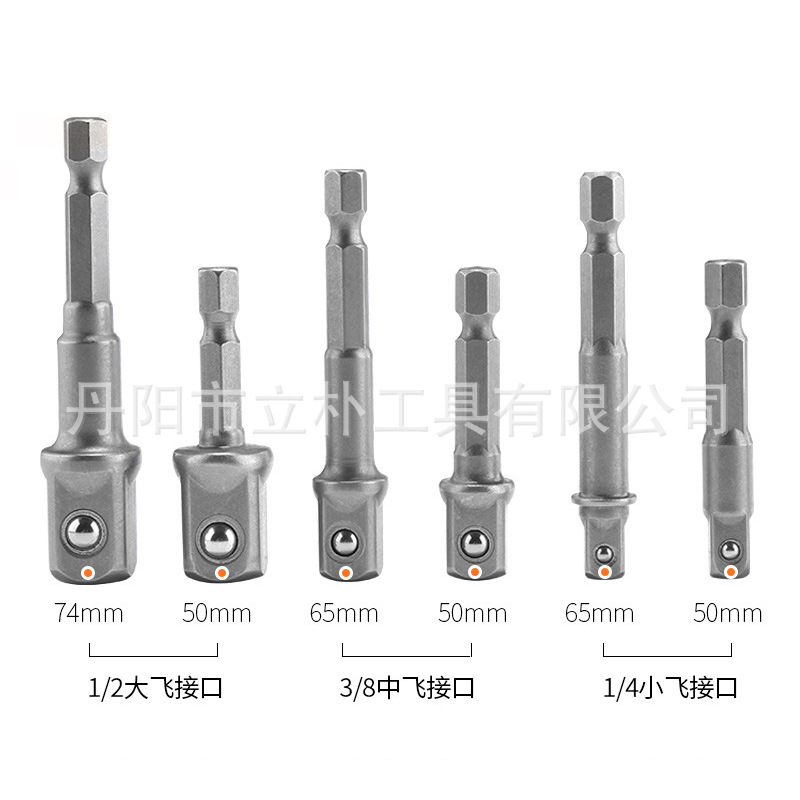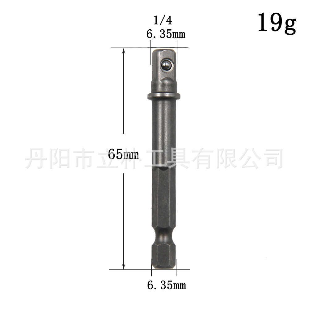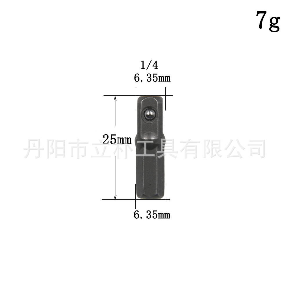 使用方法:适用于螺丝刀手柄或者电动起子工具(六角孔或者三爪夹头均可)驱动套筒使用,安装上后可把六边形接头转换为方头,从而可以用于套筒的安装,转换的利器。