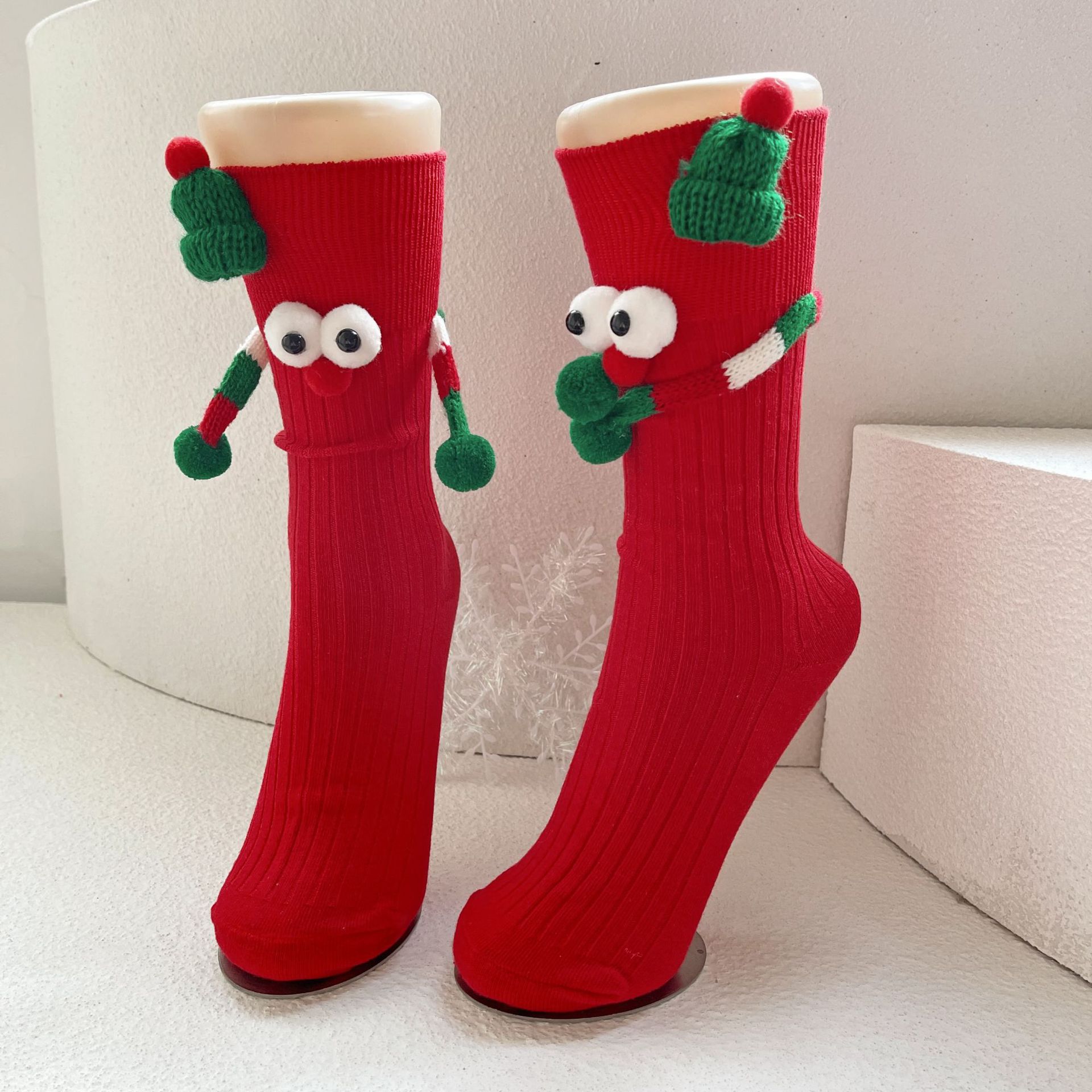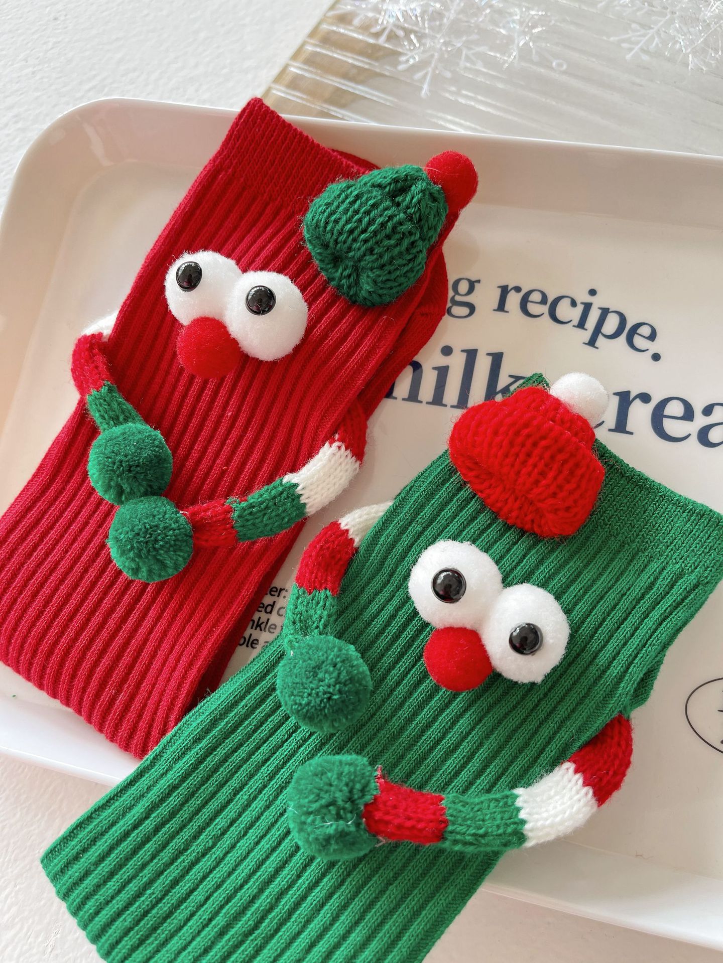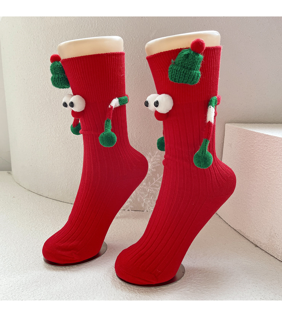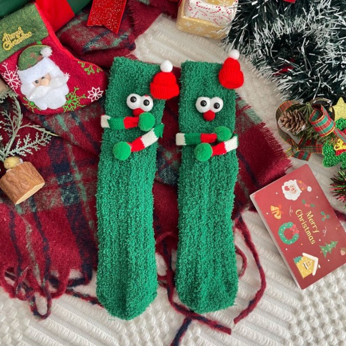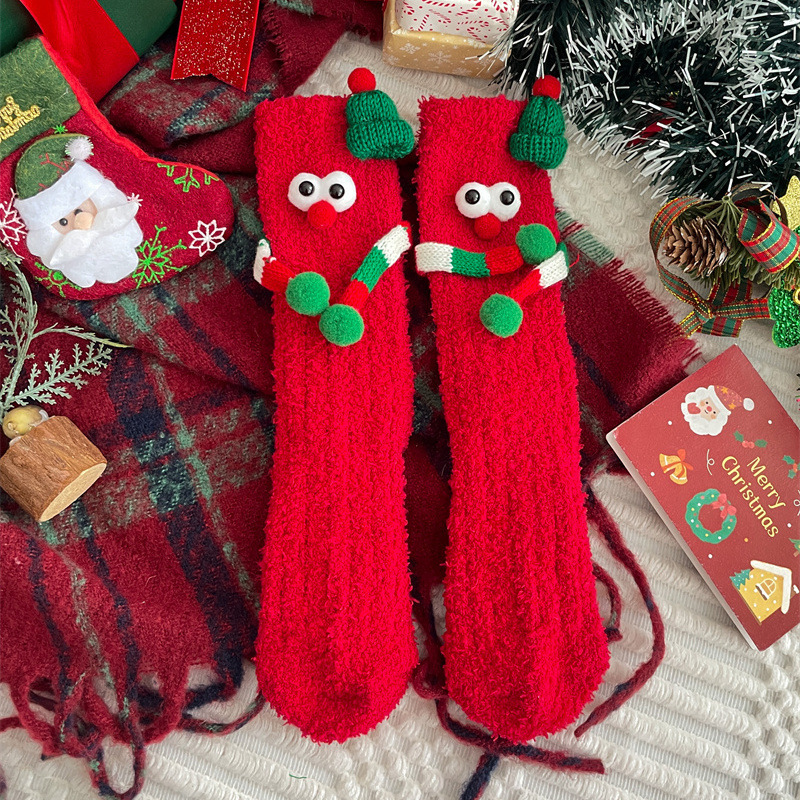 Осенне-зимний шарф Дед Мороз носки женские Красный пара подарок до середины икры носки Новый год милые детские ворс прилив