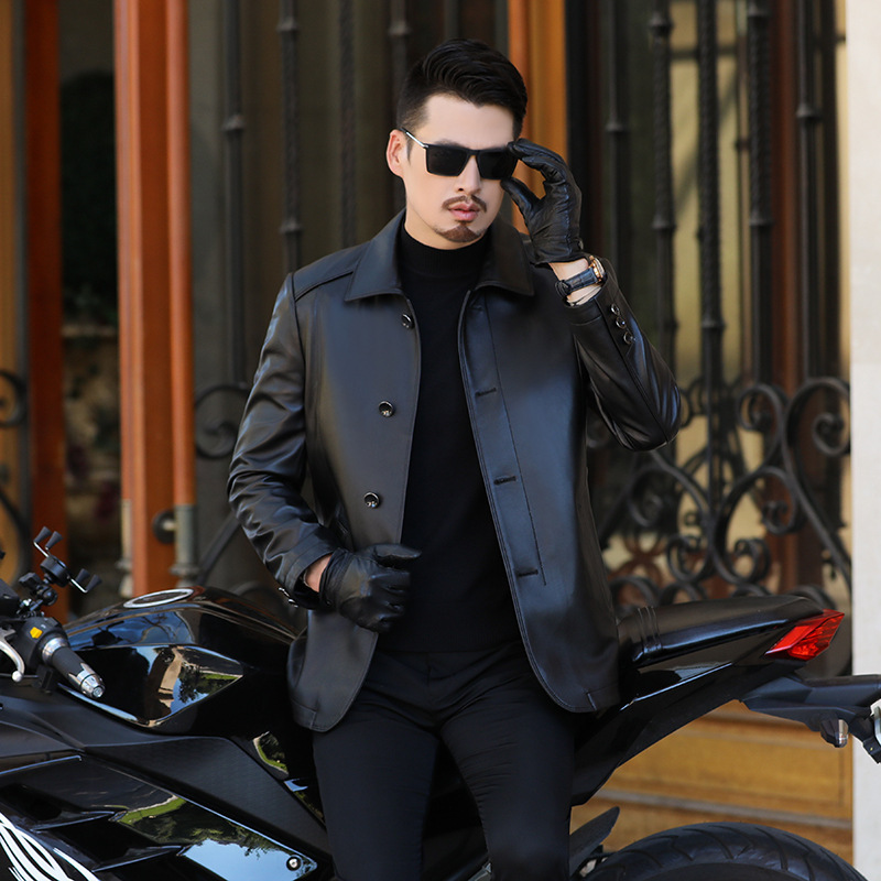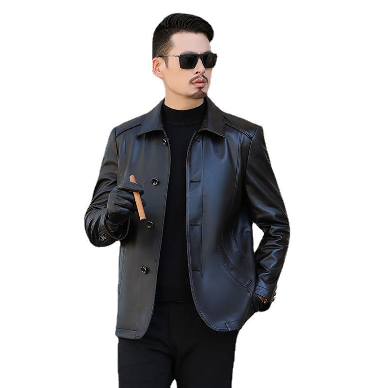 Пальто из натуральной кожи Haining для мужчин среднего возраста, осенне-зимняя куртка из овчины с отворотом и хлопковой кожаной курткой больших размеров оптом