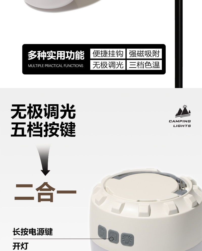 Кемпинг Наружное освещение Светодиодный фонарь для палатки для кемпинга Портативный кемпинговый свет Зарядка сверхдлительная выносливость Магнитное всасывание Небольшой подвесной светильник