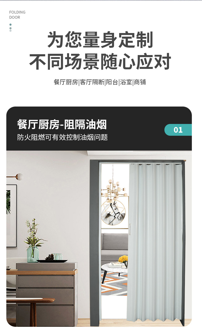 Складная дверь из ПВХ на природном газе, кухонная перегородка, раздвижная простая невидимая дверь, балкон, ванная комната, внутренняя телескопическая дверь