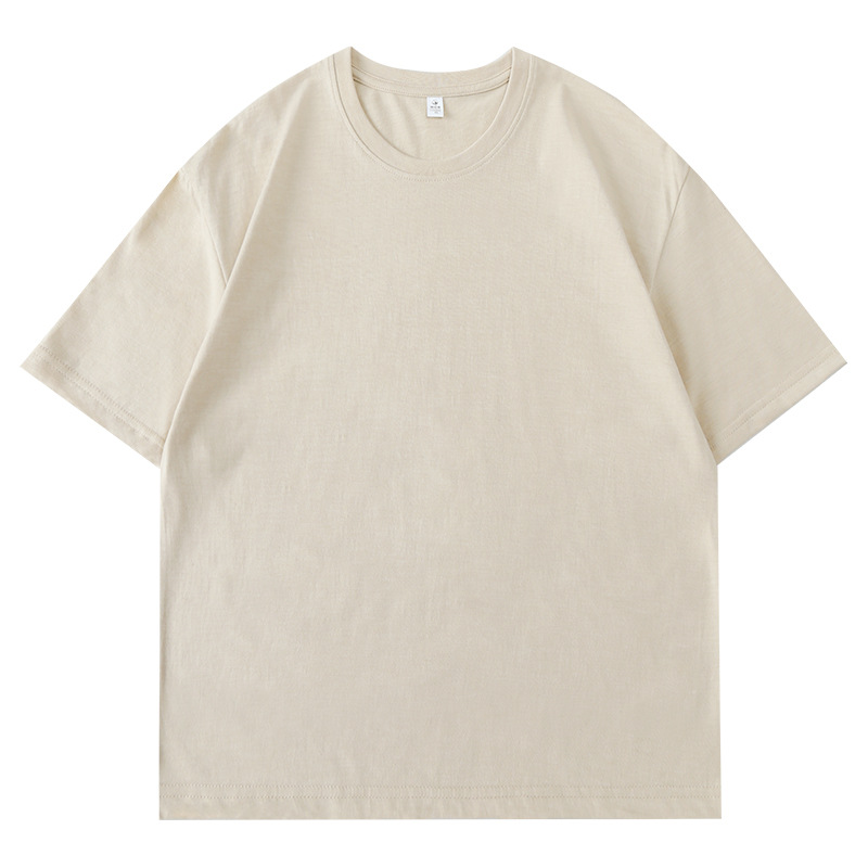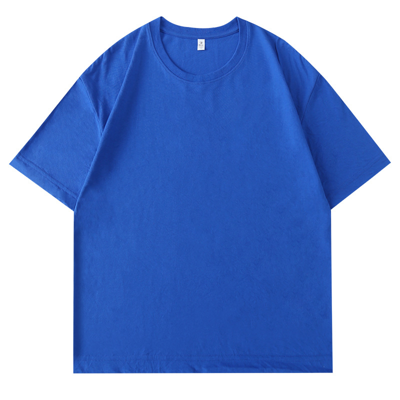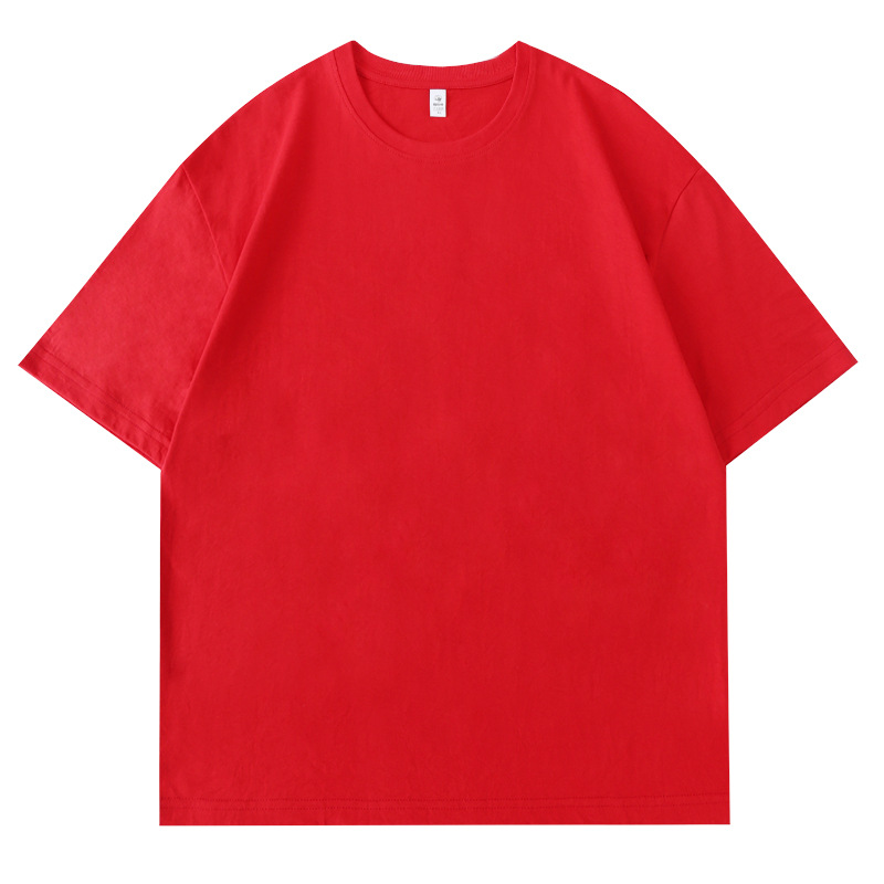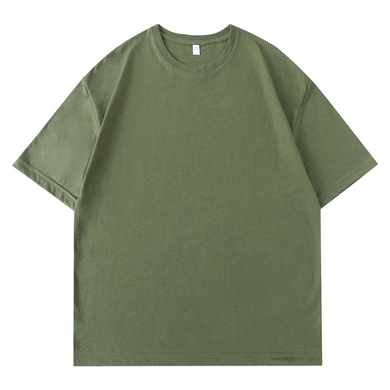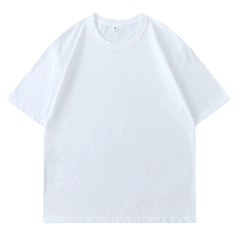 180 г Однотонная футболка с круглым вырезом и длинными размерами из чесаного хлопка с короткими рукавами, мужская и женская спортивная свободная одежда, нижняя рубашка