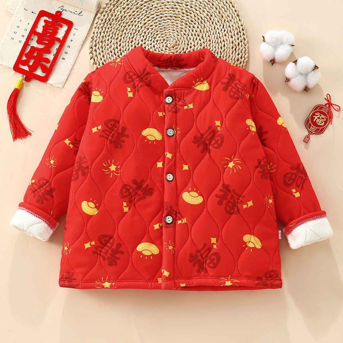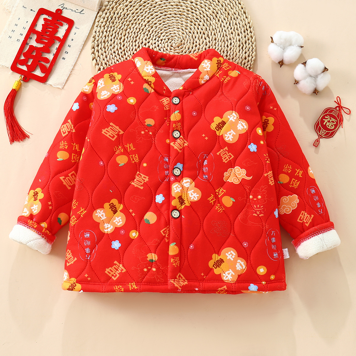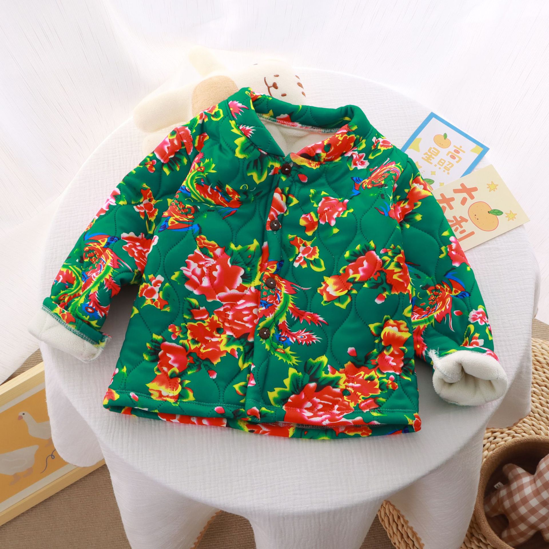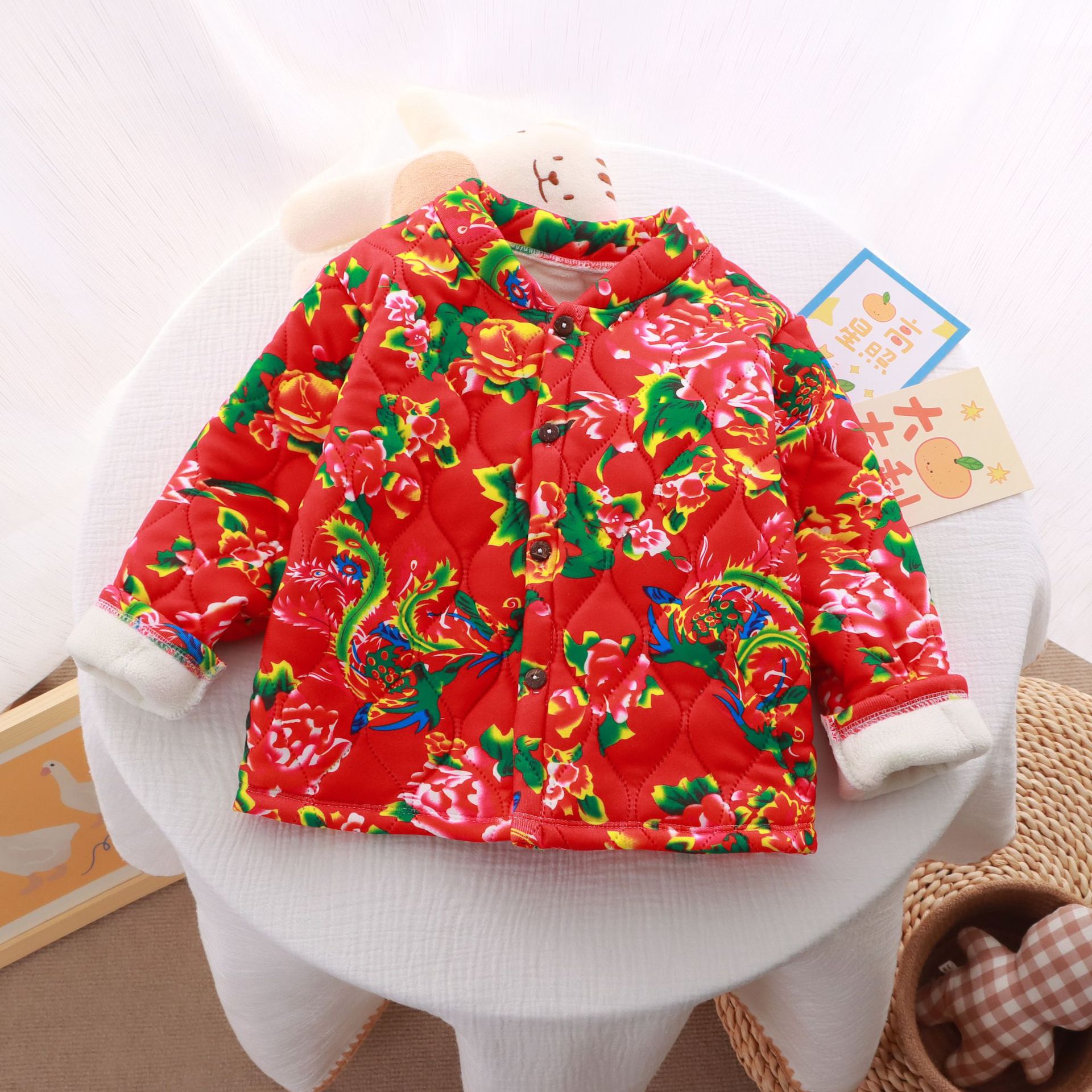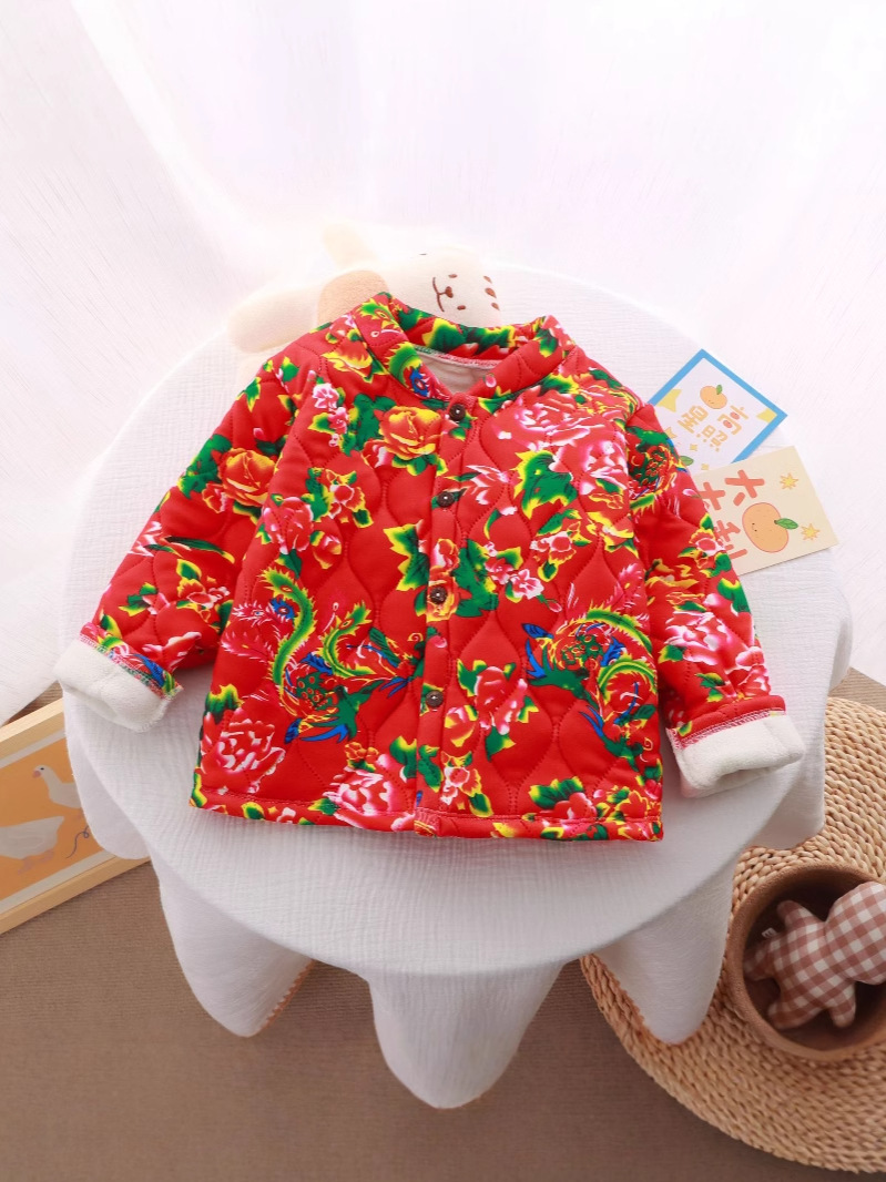 Детская одежда в северо-восточном стиле, толстая куртка с цветочным принтом и хлопковой подкладкой, зимнее пальто в этническом стиле для мальчиков и девочек, трехслойное пальто на флисовой подкладке.