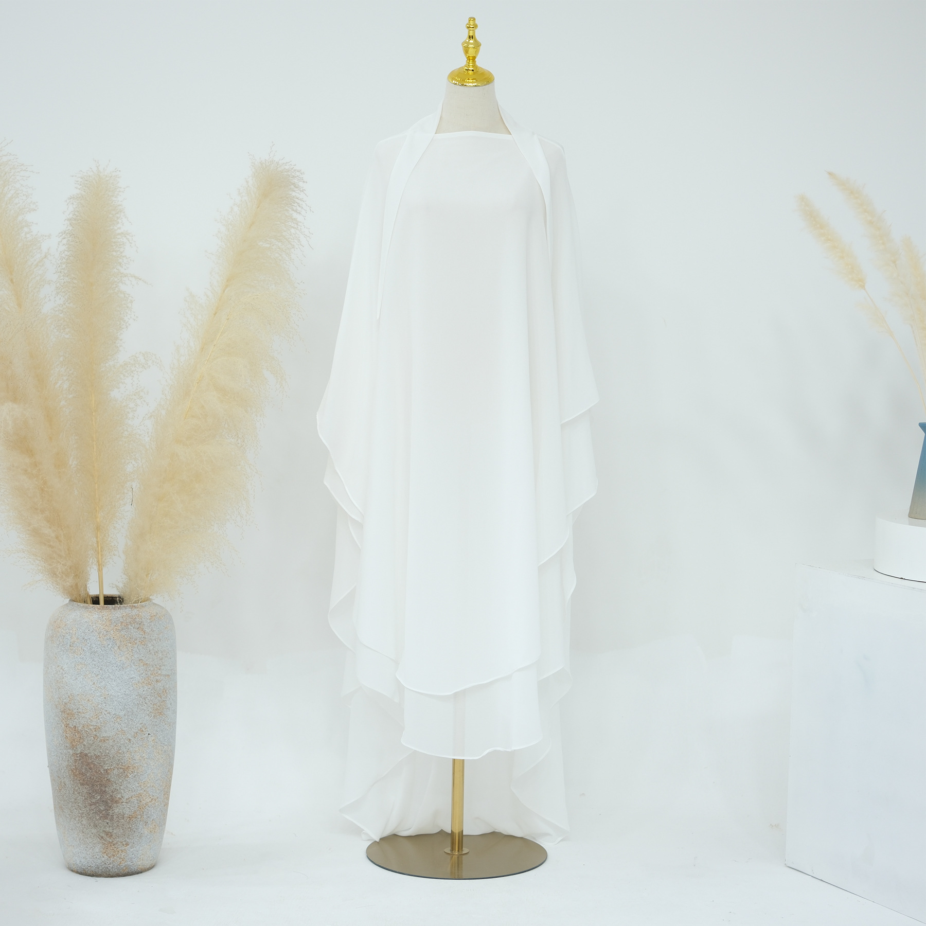 2023Loriya速卖通亚马逊纯色前后双层雪纺大摆头巾中东纯色大头巾
