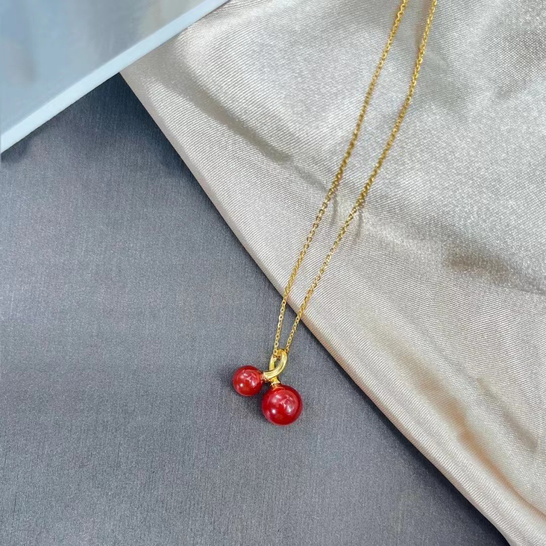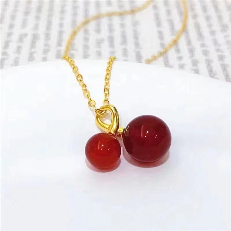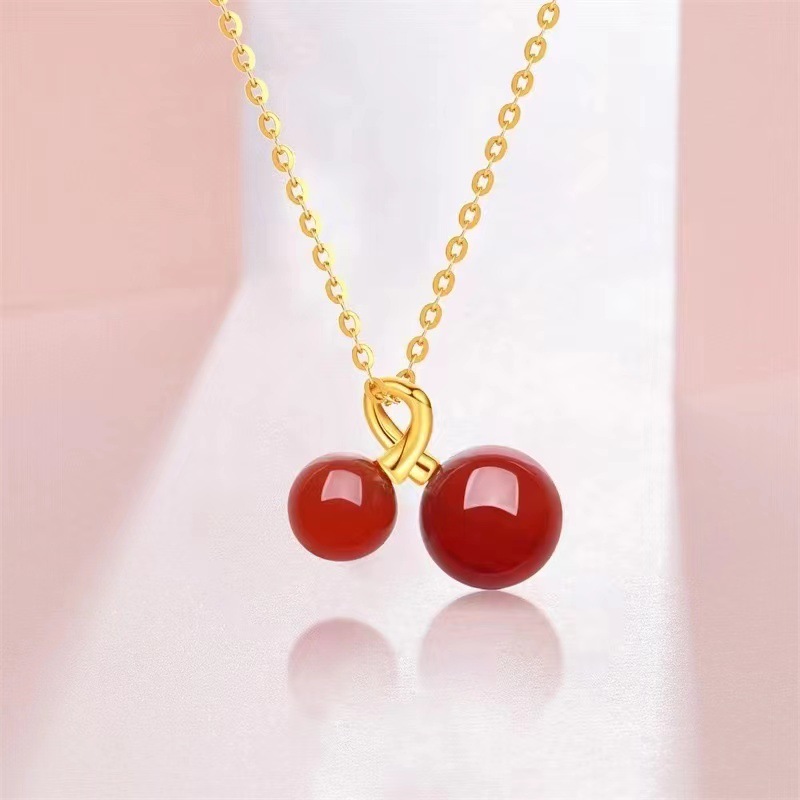 Подвеска в виде вишни из золота 18 карат Au750, высококачественная легкая роскошная нишевая ювелирная продукция с красным агатом и вишней на шею, оптовая продажа в реальном времени