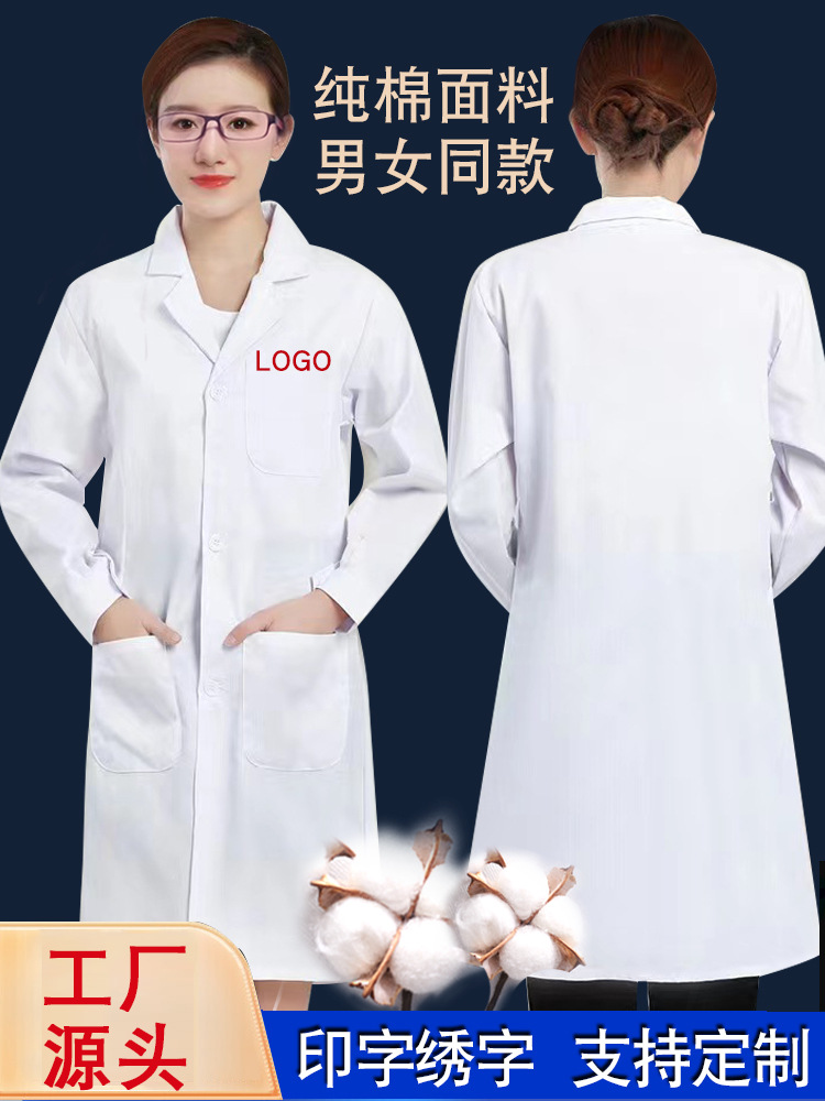 Белое пальто с длинными рукавами из чистого хлопка, доктор, студент, химический эксперимент, аптека, Пищевая Фабрика, мастерская, белое пальто, осенне-зимние комбинезоны