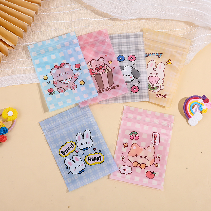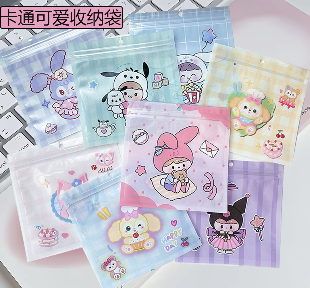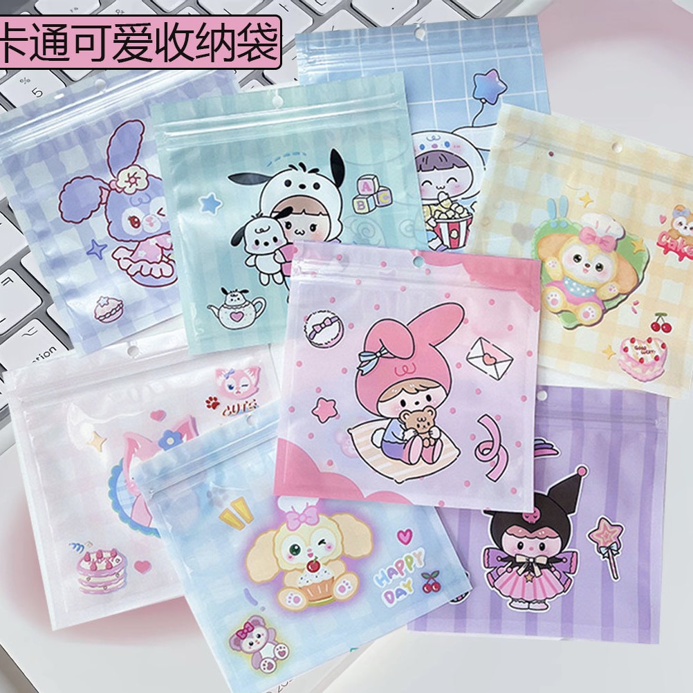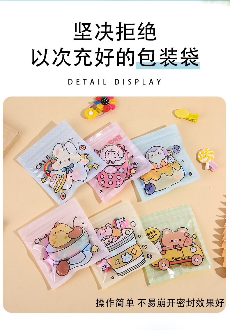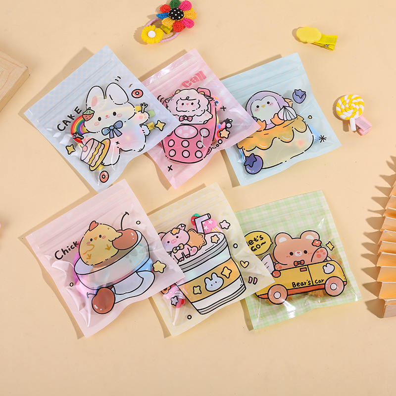 Готовые мультяшные сумки с застежкой-молнией, изысканные небольшие подарочные упаковочные пакеты, герметичные пакеты с застежкой-молнией из рыбьей кости, милые упаковочные пакеты с героями мультфильмов