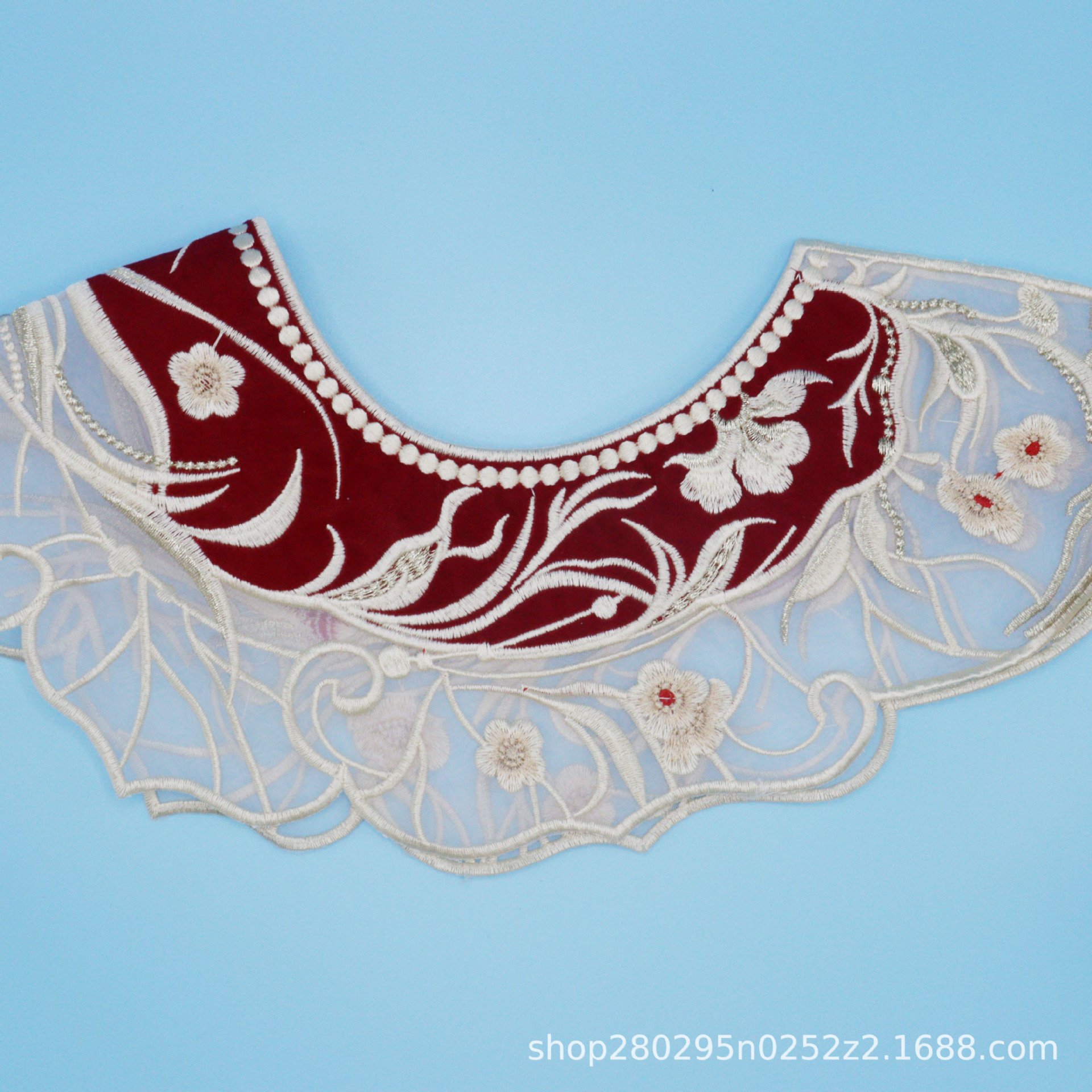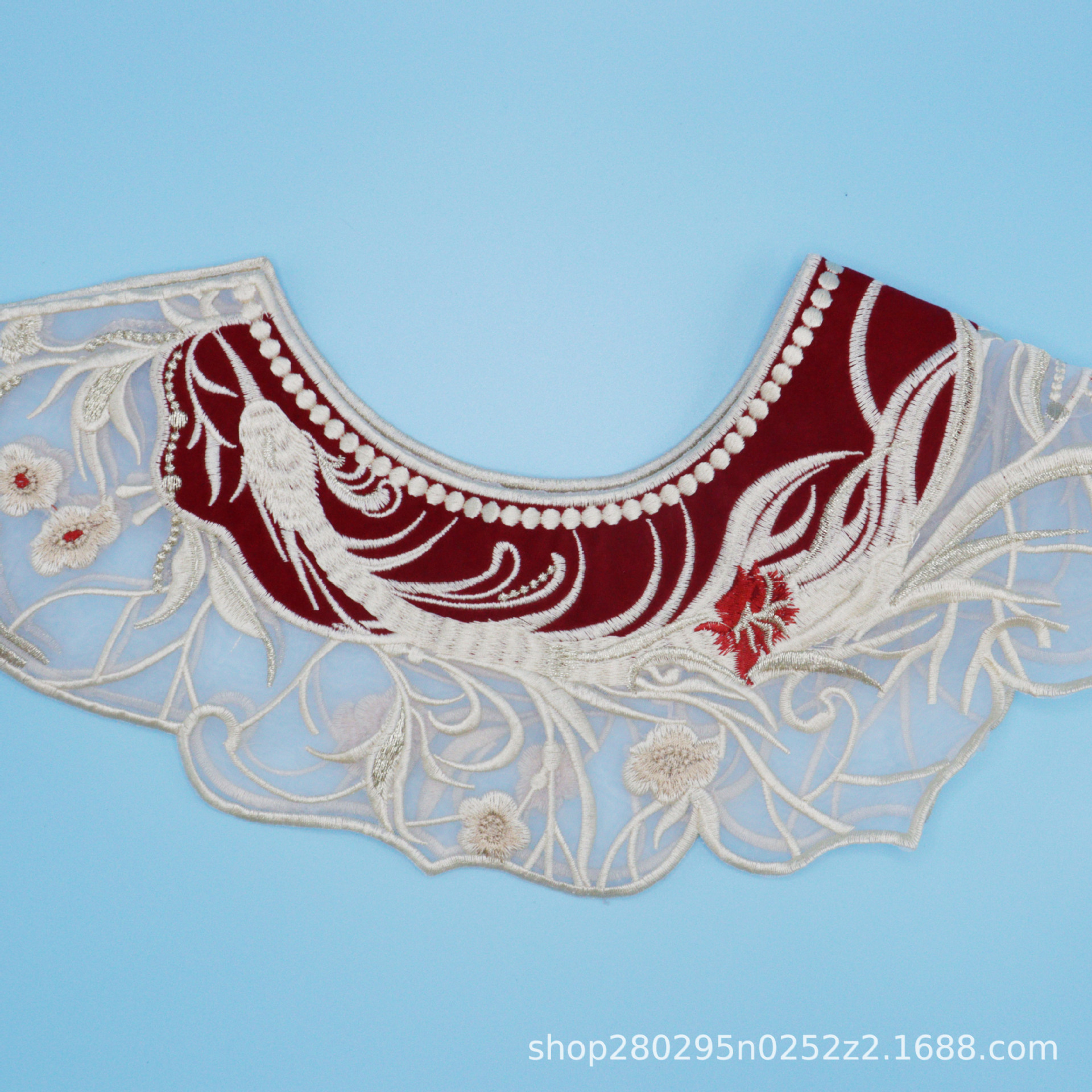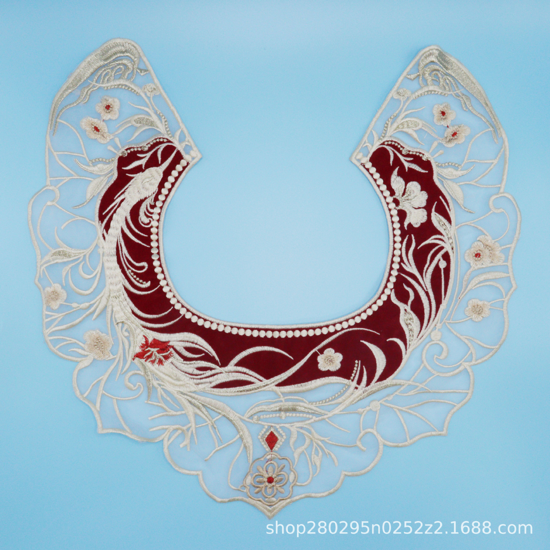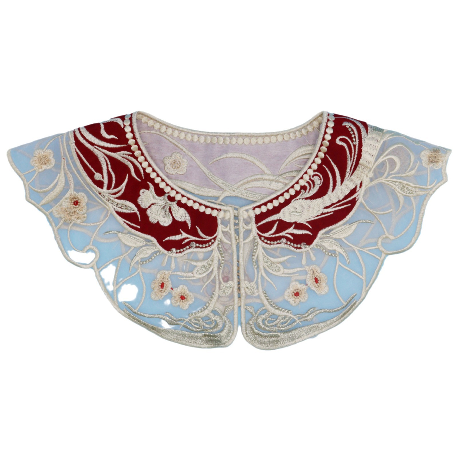 Детский декоративный воротник из органзы с вышивкой «Феникс», с золотистой окантовкой, красный, с эффектом облачного плеча, в виде цветка, воротник-стойка