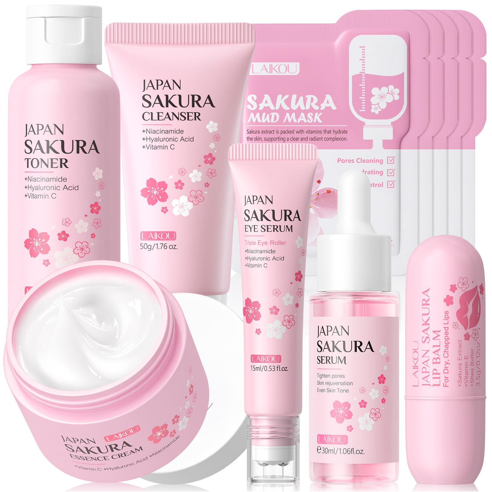 Трансграничный полный английский набор по уходу за кожей серии LAIKOU Sakura Комбинированный уход за лицом полный набор увлажняющий завод на складе