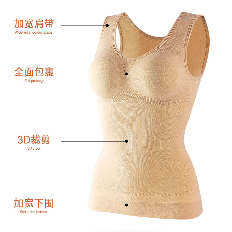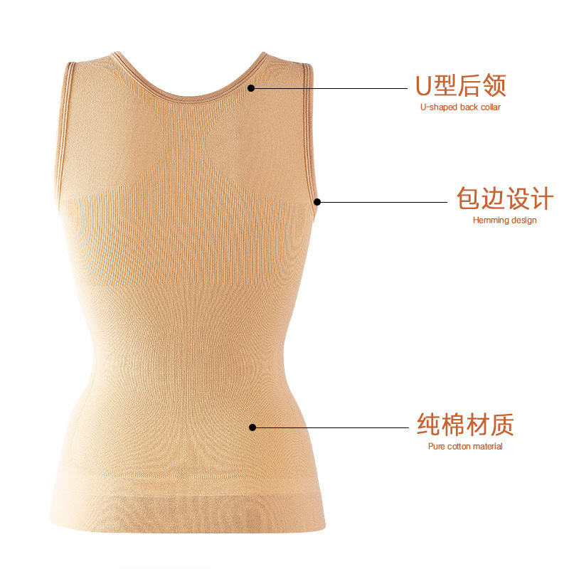 Летний тонкий бесшовный двухслойный жилет для внешней торговли, большой размер, длинный нижний жилет для формирования живота с нагрудной подушечкой для женщин