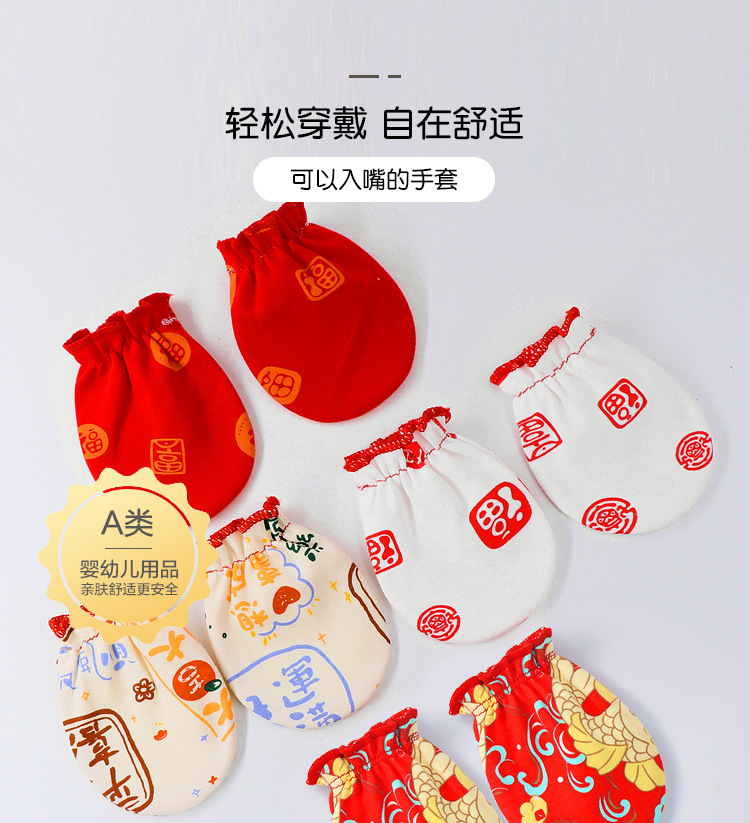 Детские маленькие перчатки, дышащие против царапин на лице, Детские праздничные красные детские перчатки из чистого хлопка с защитой от укусов, против царапин на лице