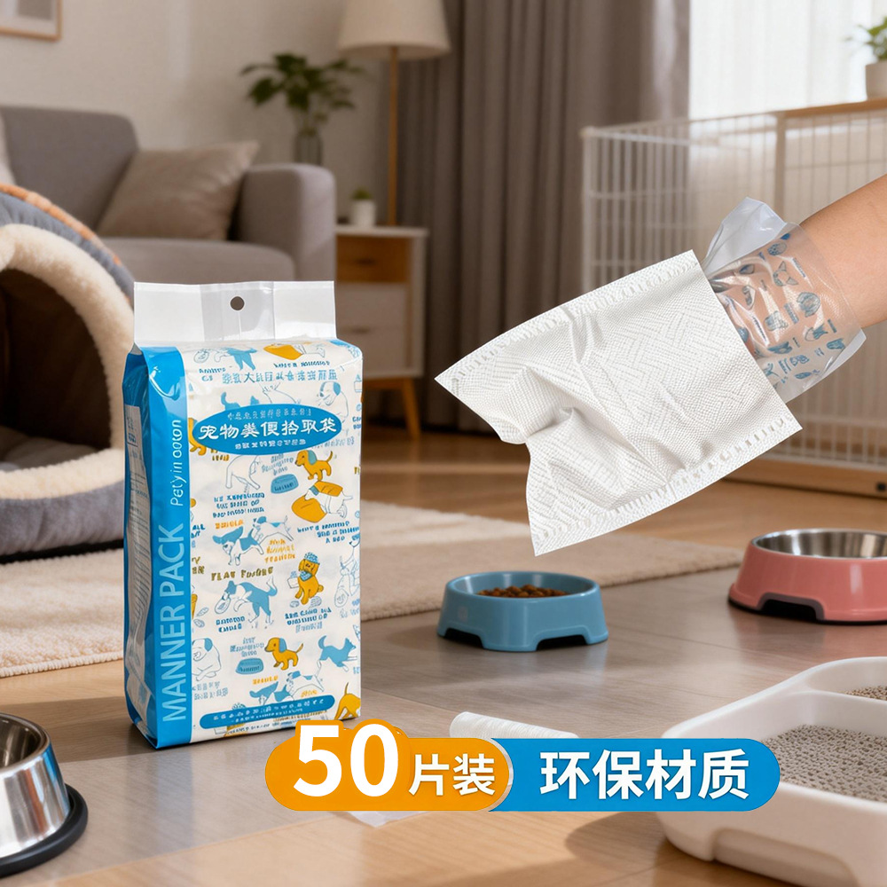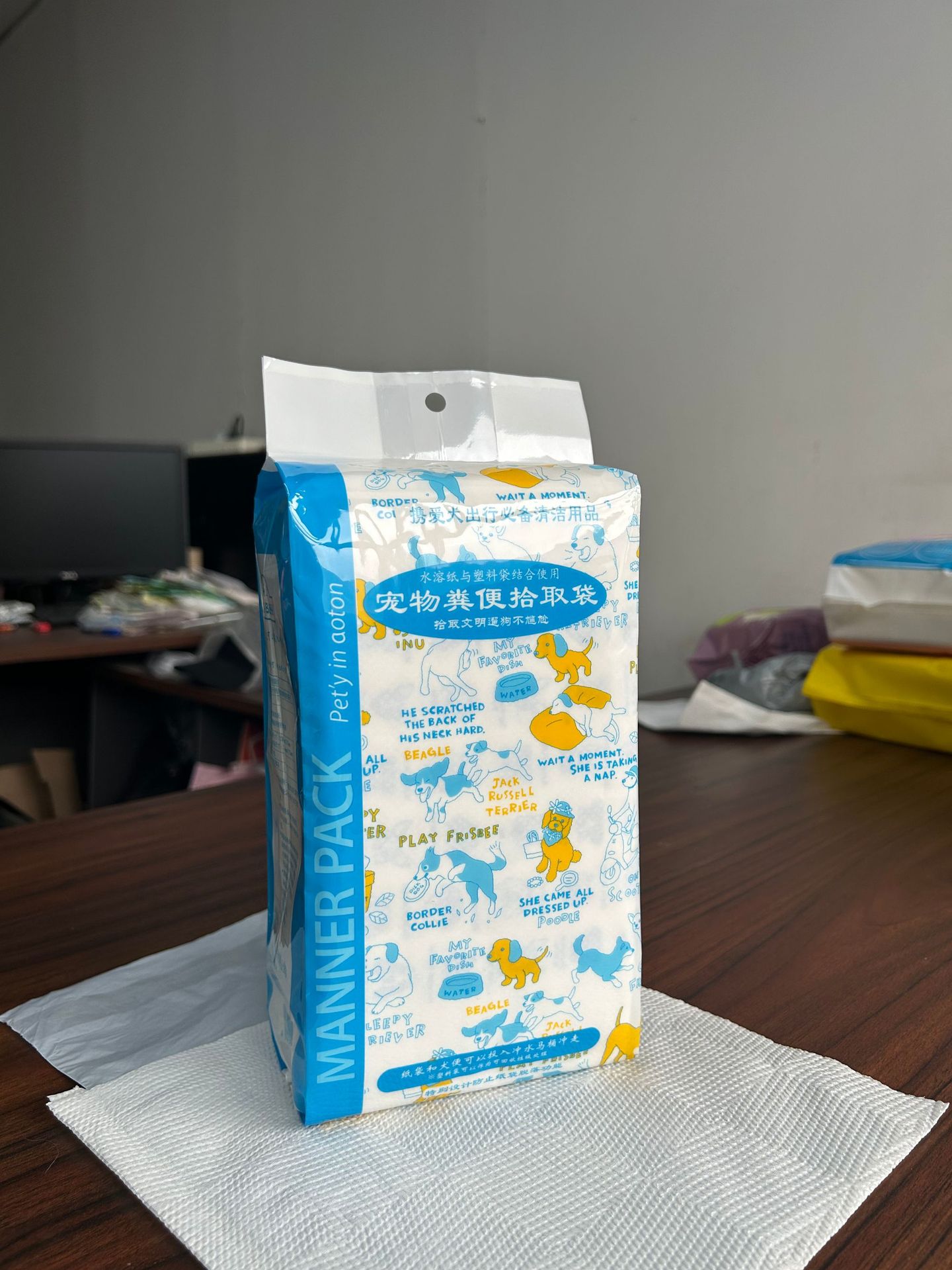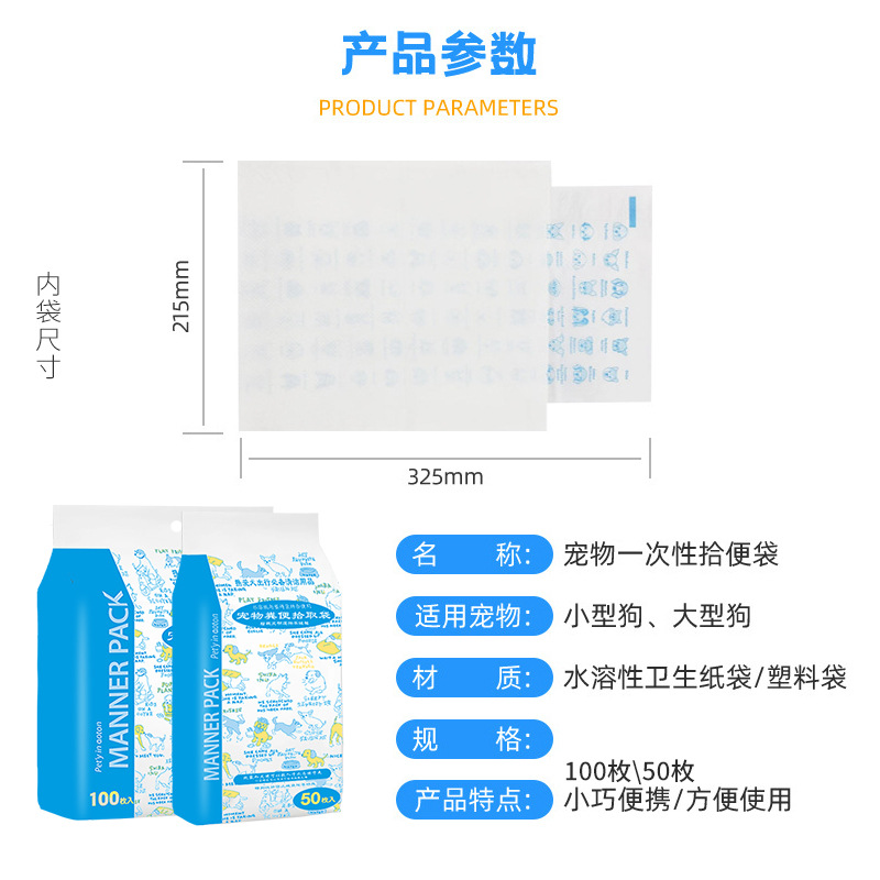 Портативная сумка-жилет; Классический синий плоский верх, упаковка из 50 штук; Классический синий плоский мешок 325*215 мм; Тип без трения; Большой пакет для собачьих отходов