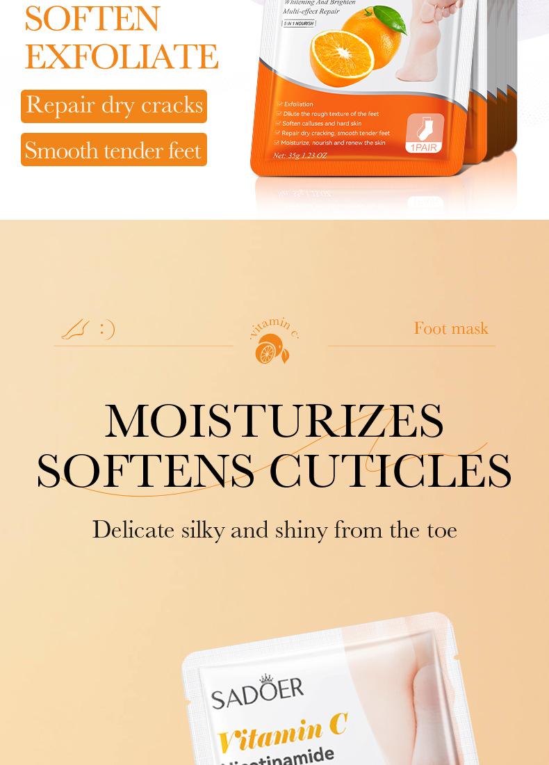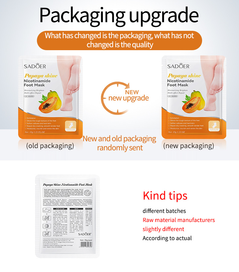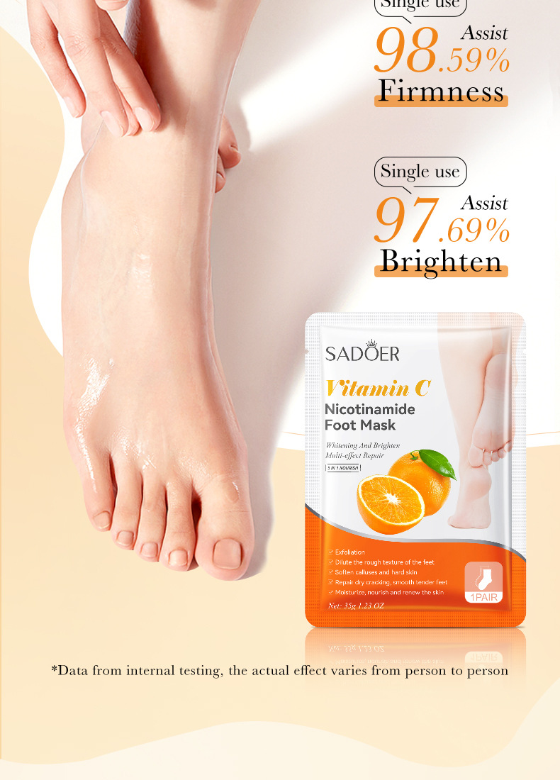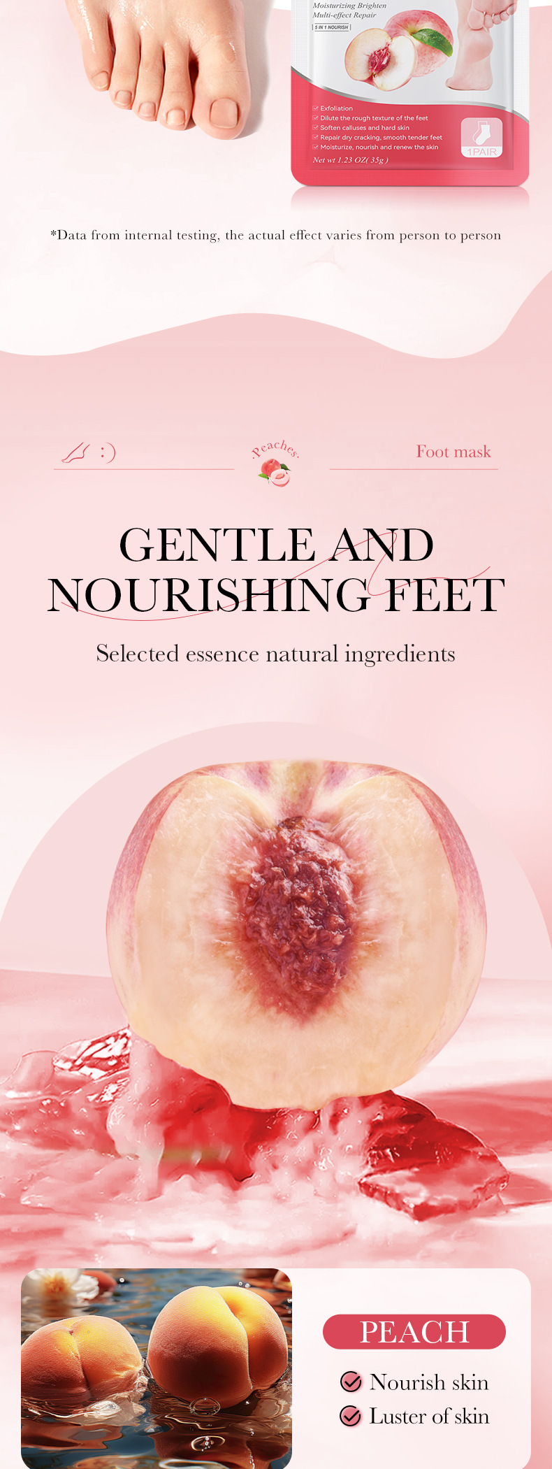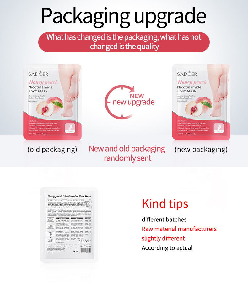 Полная английская маска для ног SADOER Персиковая ниацинамидная маска для ног Омолаживающая цветочная и фруктовая эссенция FootFilm Трансграничная оптовая продажа