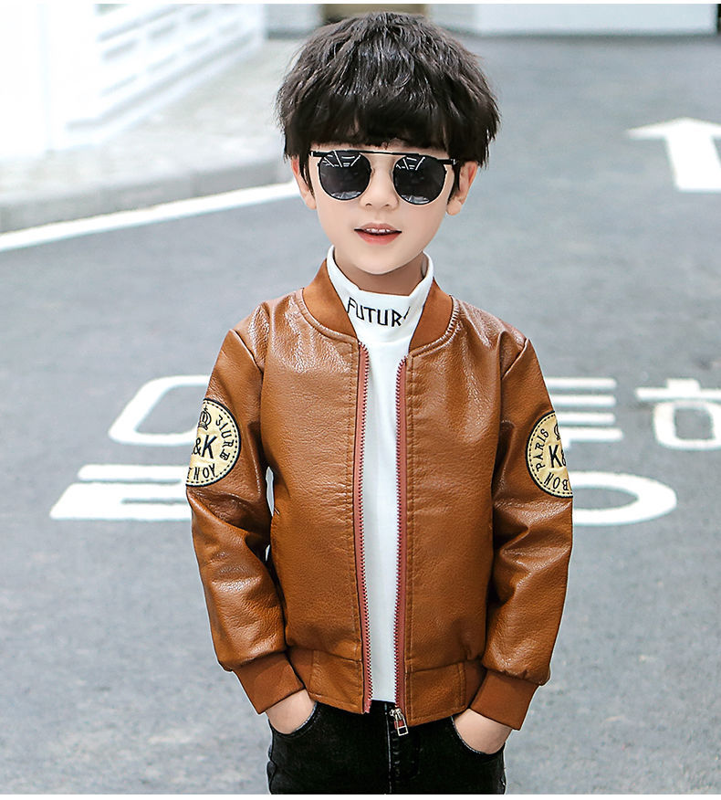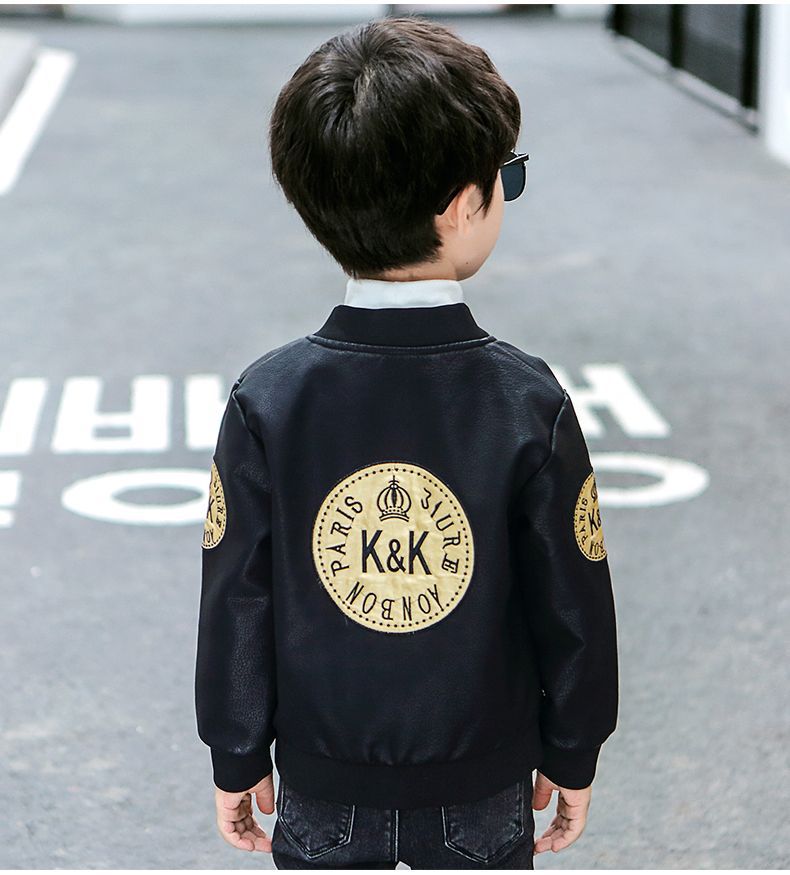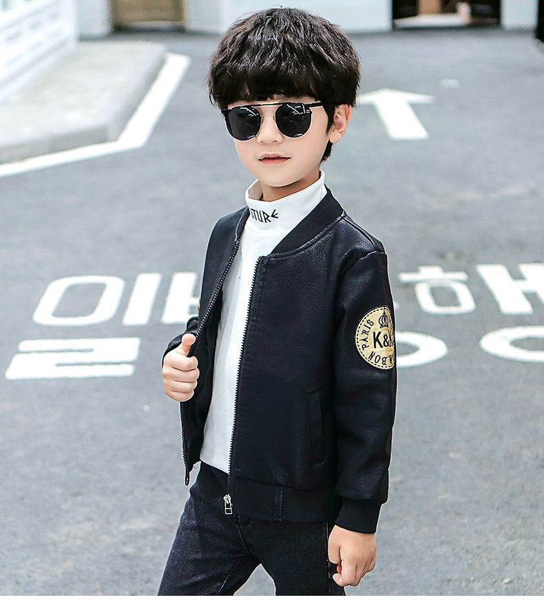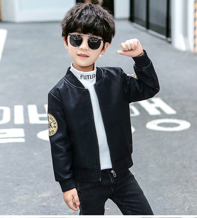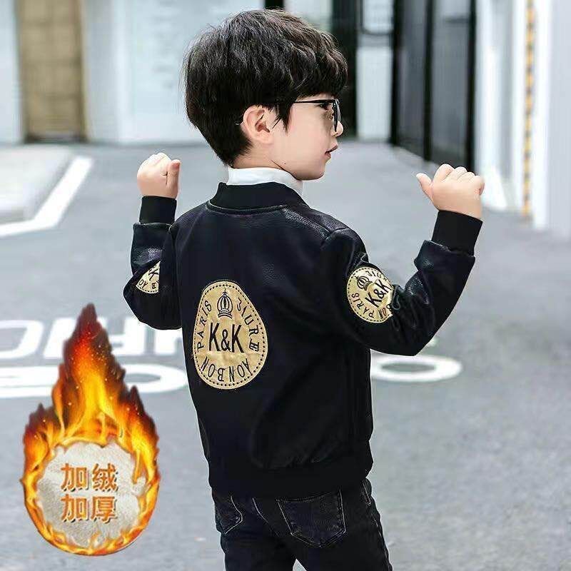 Кожаная куртка для мальчиков на осень и зиму, новый стиль для детей, стильная утепленная куртка из искусственной кожи на флисе, модная куртка с длинным рукавом для мальчиков
