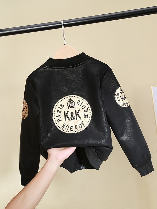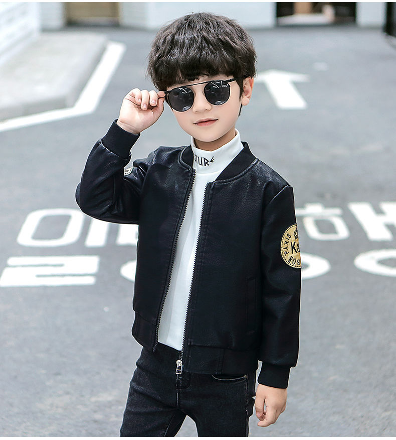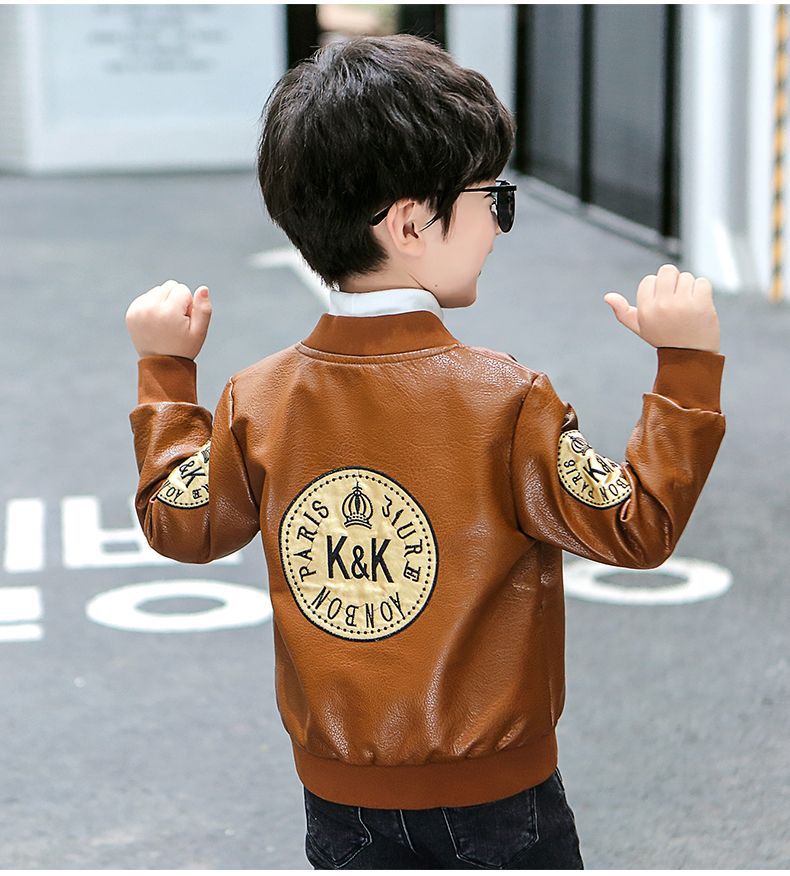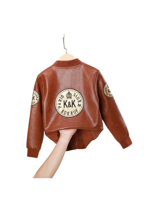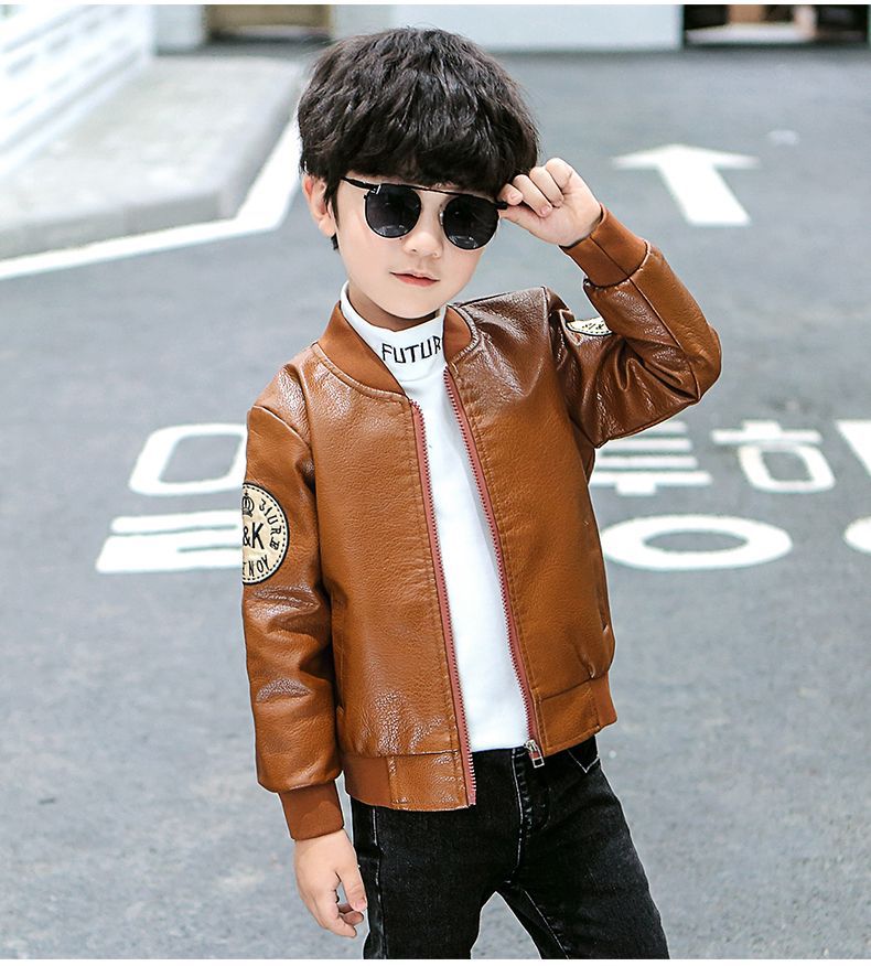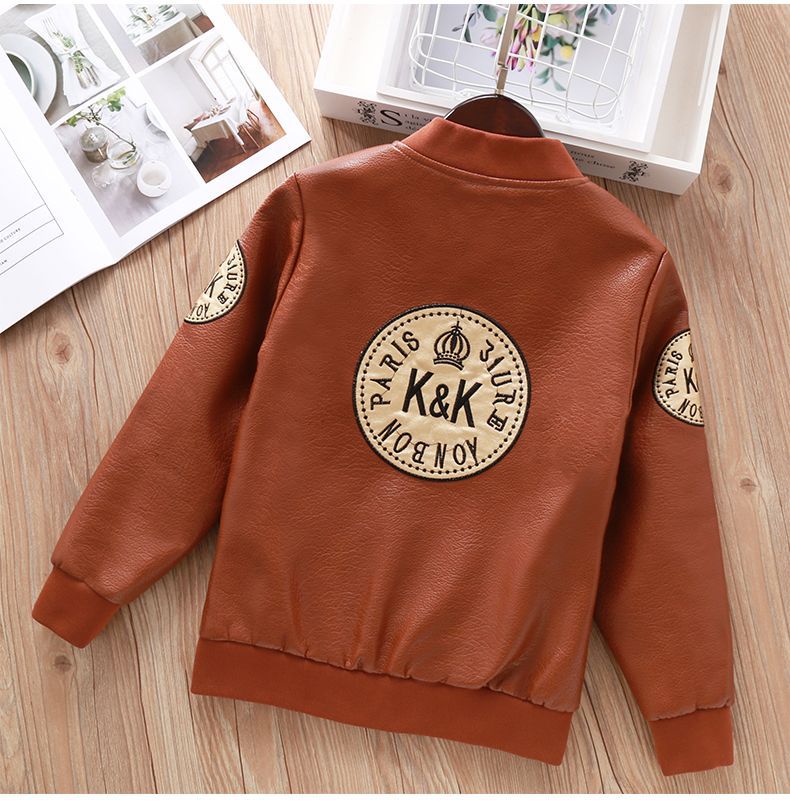 Кожаная куртка для мальчиков на осень и зиму, новый стиль для детей, стильная утепленная куртка из искусственной кожи на флисе, модная куртка с длинным рукавом для мальчиков