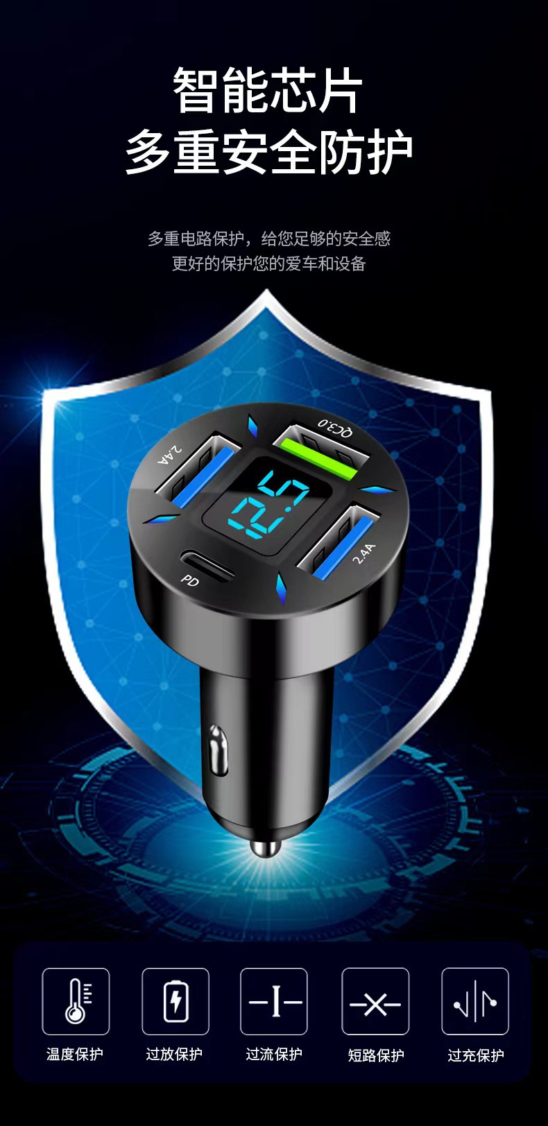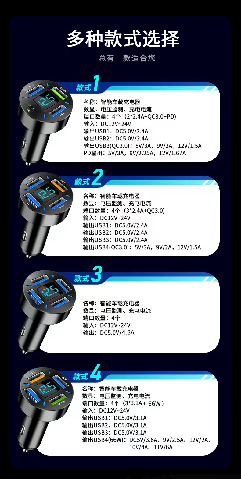 六、全新设计,四USB足量输出,私人模具,安全环保