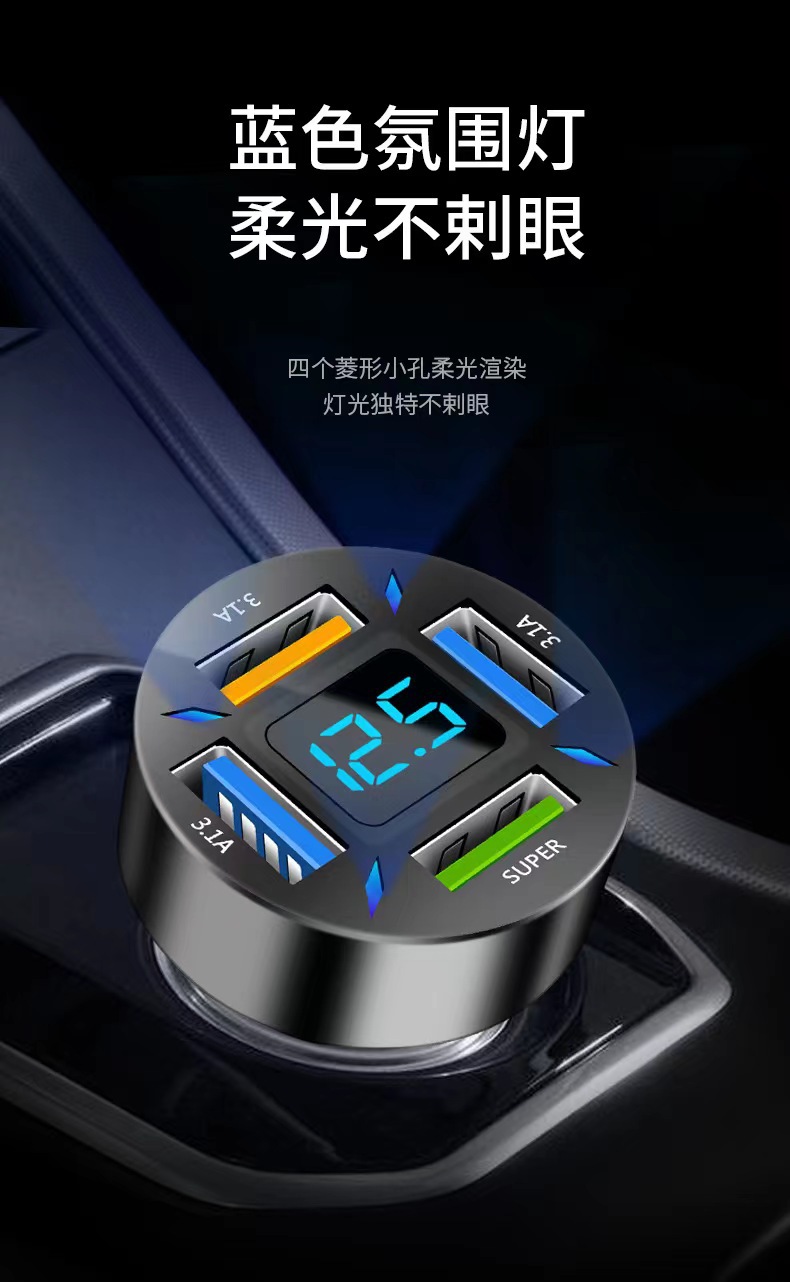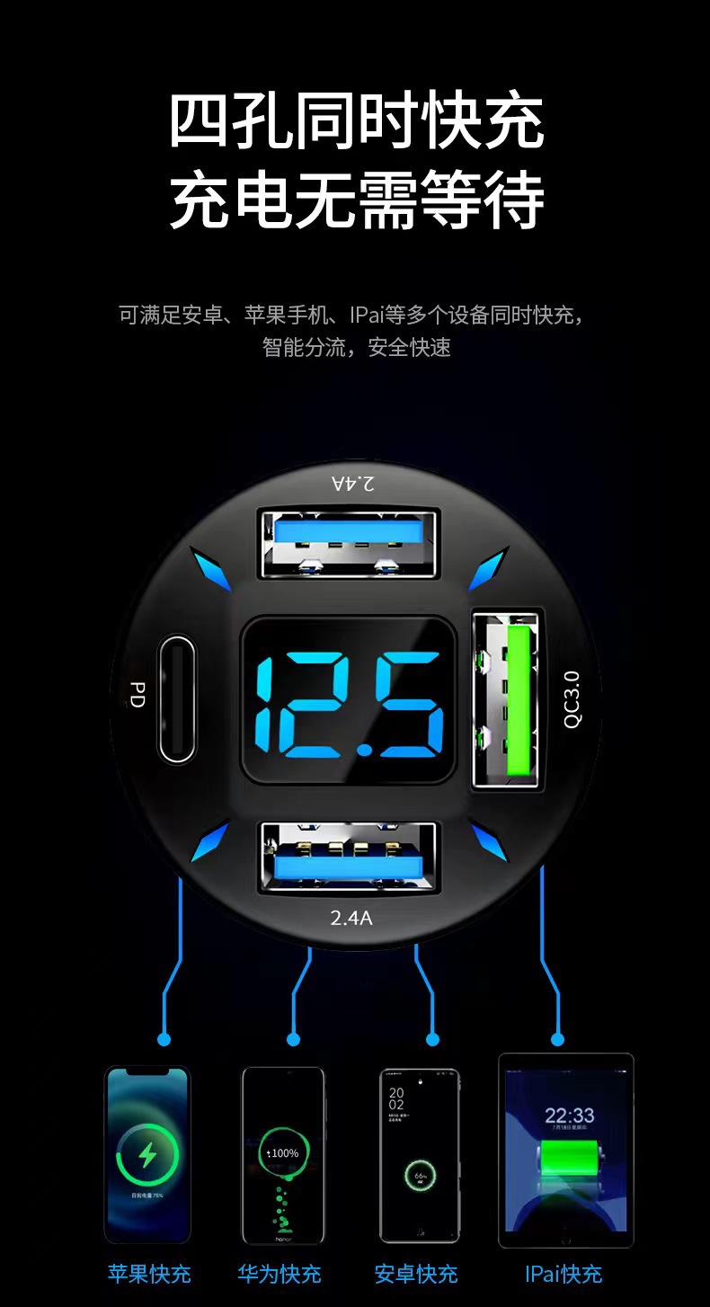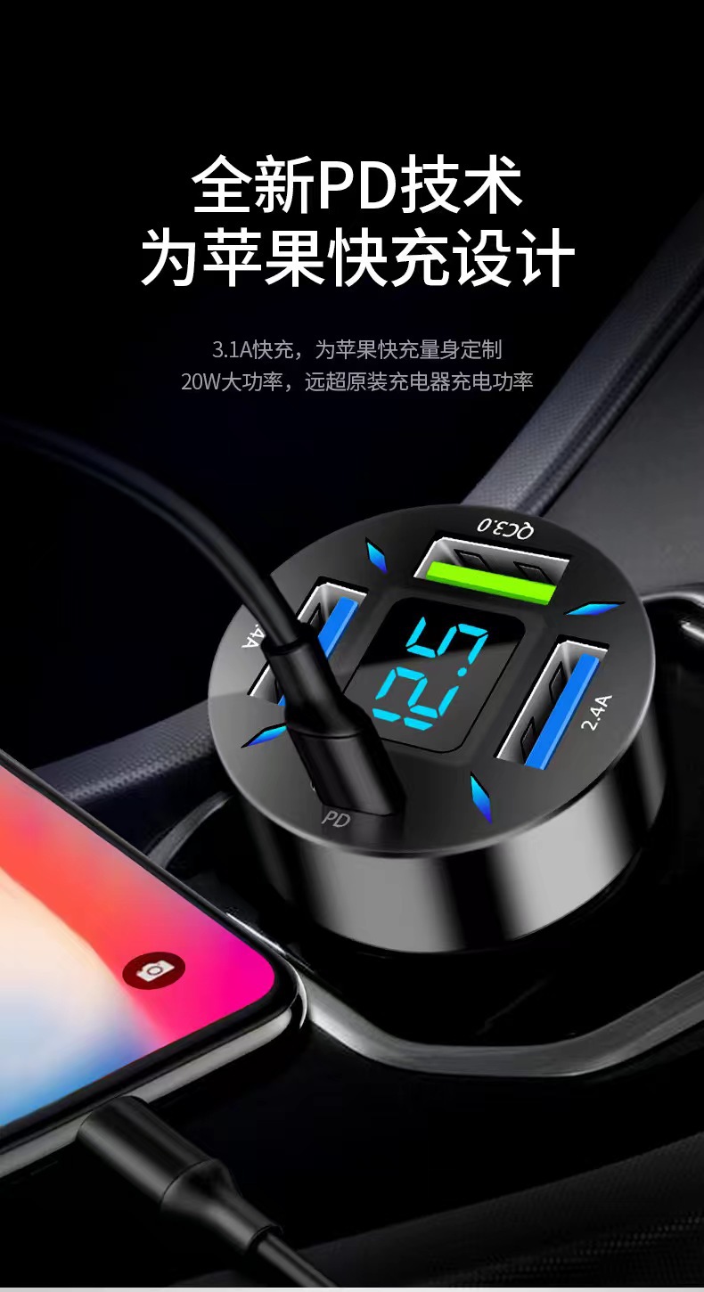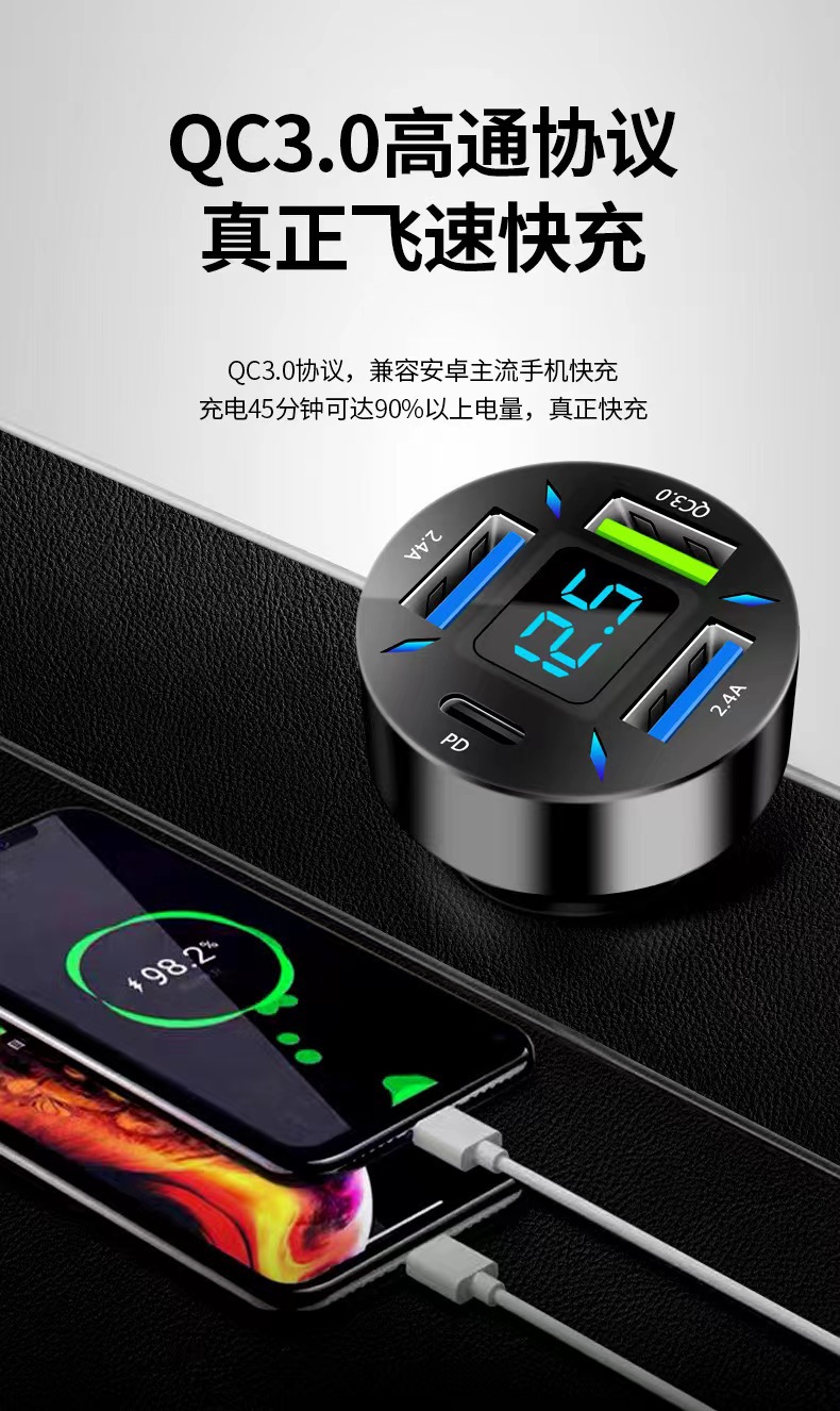 Трансграничная 120W автомобильная зарядка супер быстрая зарядка с четырьмя дисплеем PD автомобильное зарядное устройство