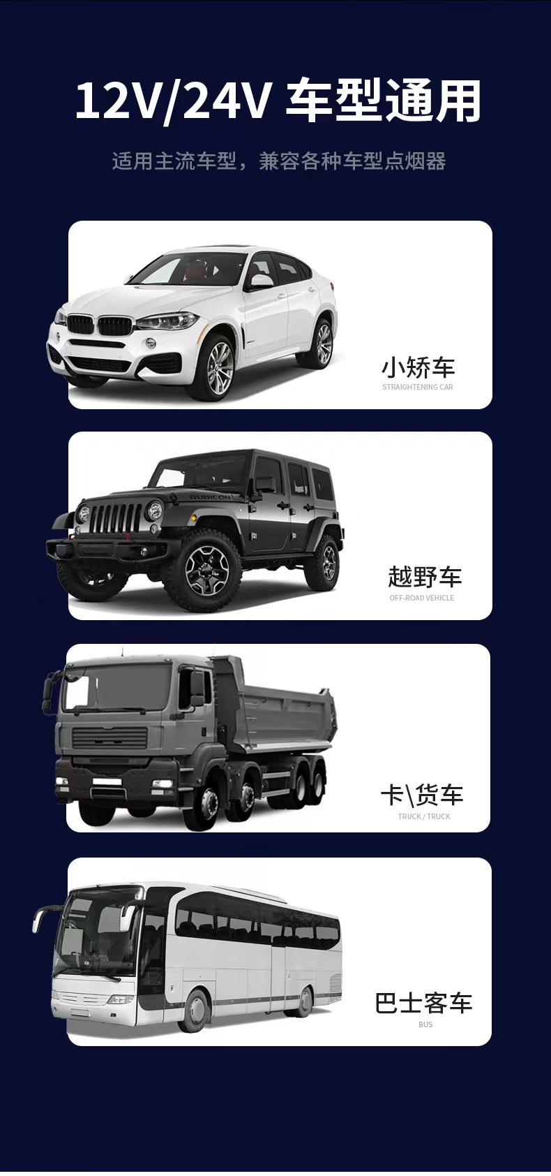 一、输入:12V-24VDC,适用于所有车型;