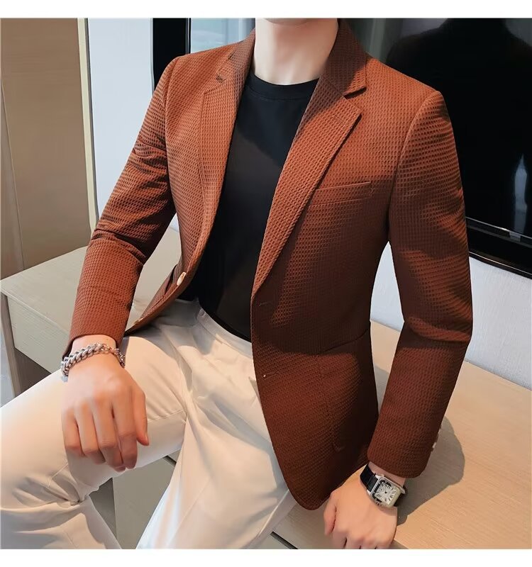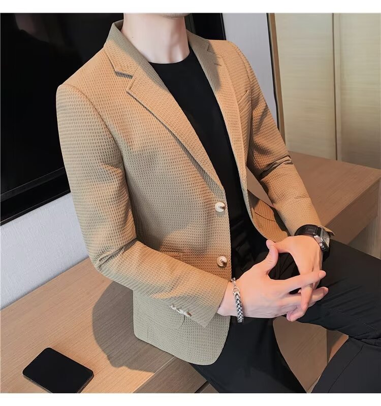 Легкий роскошный повседневный пиджак, мужской британский тонкий модный деловой профессиональный мужской цельный костюм без железа