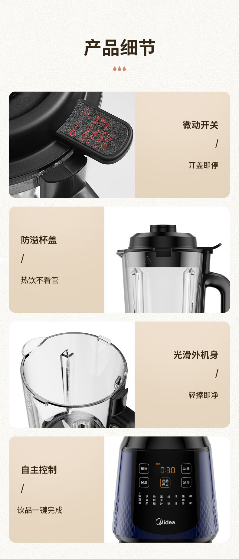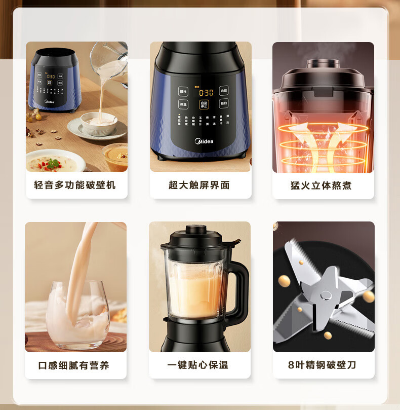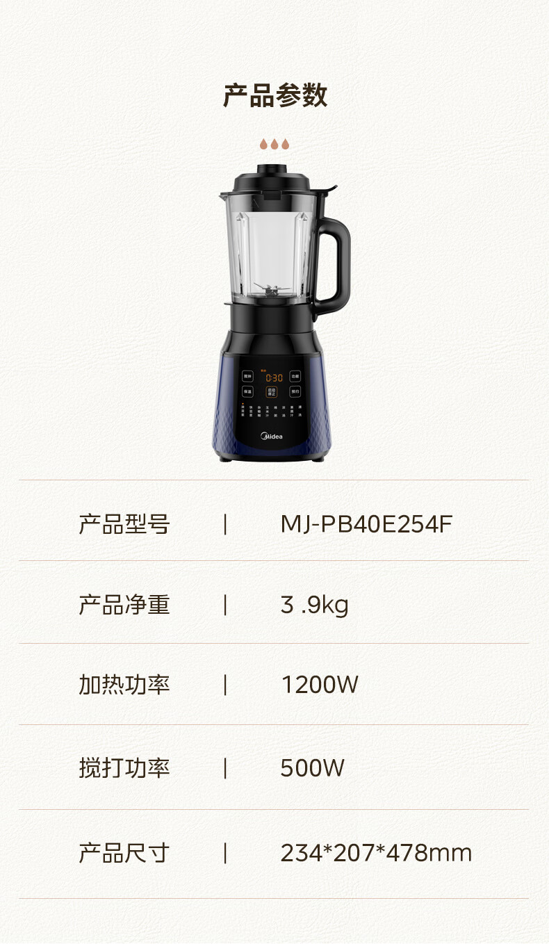 Блендер Midea PB40F254F для домашнего использования, большая емкость 1,7 л, многофункциональный прибор для приготовления соевого молока, кухонный комбайн, полностью автоматический.