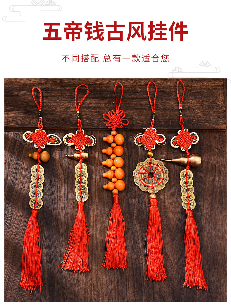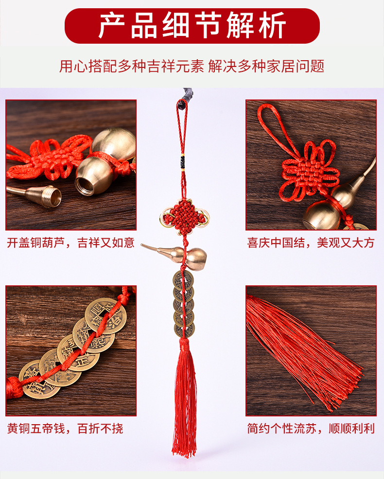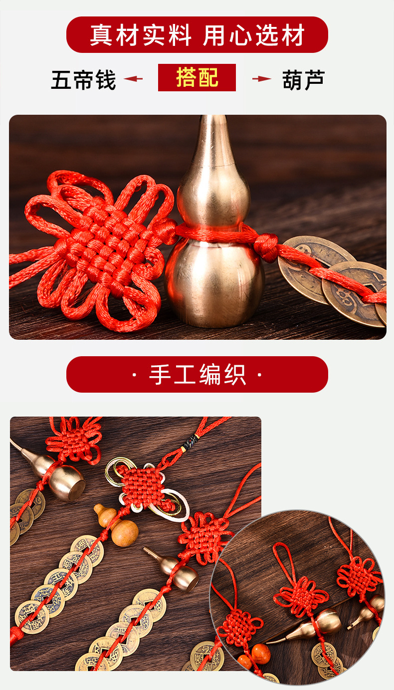 Подвеска из красного дерева с тыквой; Тыква из чистой меди 7.5cm Подвеска императорских денег большого размера; Премиум-класса из чистой меди 4.7cm Императорская грошовая труба; Тыква из чистой меди 4.7cm Императорская грошовая труба; Подвеска из красного дерева премиум-класса из золотой проволоки; Подвеска с пятью благословениями из красного дерева; Монета из чистой красной чистой меди с пятью императорами; Премиальный узл с цветком сливы восемь императоров; Город премиум-класса и кулон «Счастлив»; Премиальный кулон из чистой меди 7cm