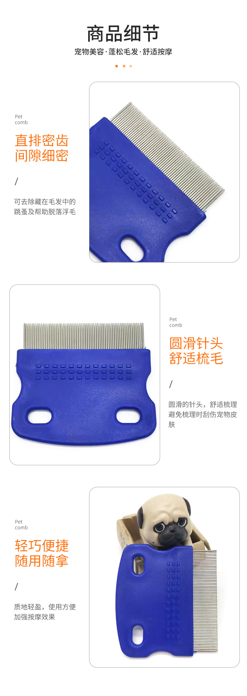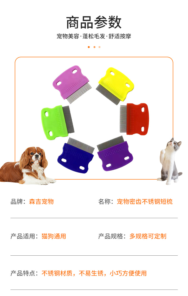 Короткая расческа из нержавеющей стали с плотными зубьями для домашних животных