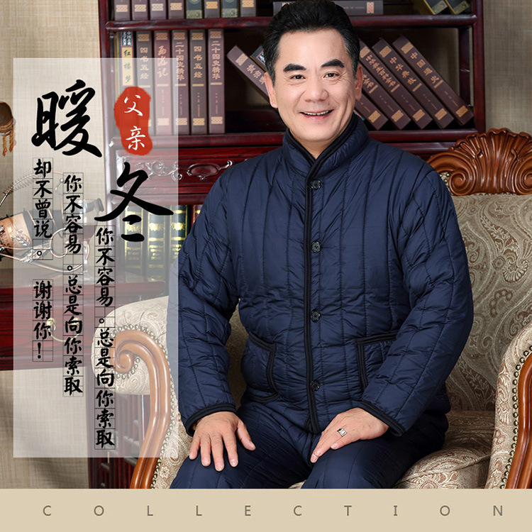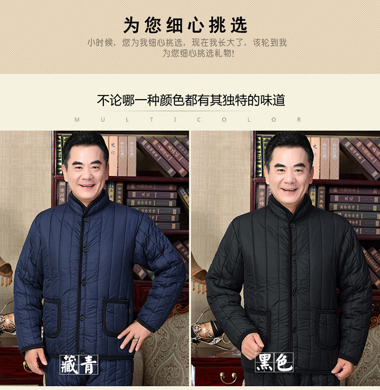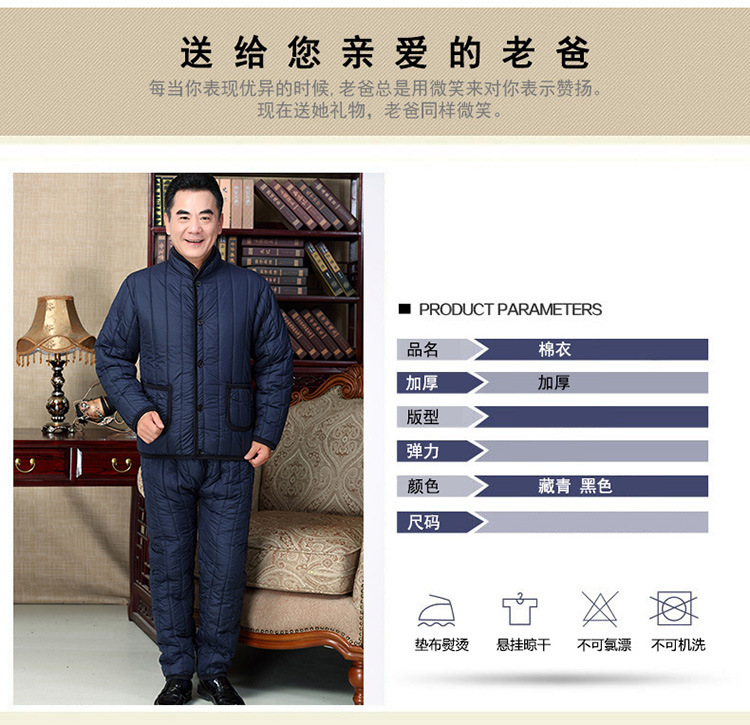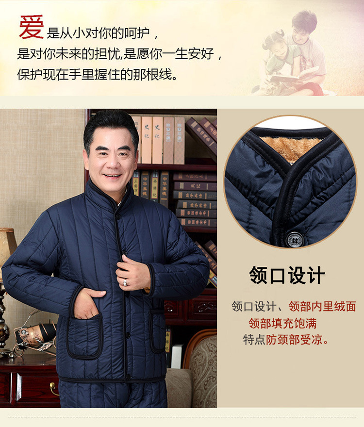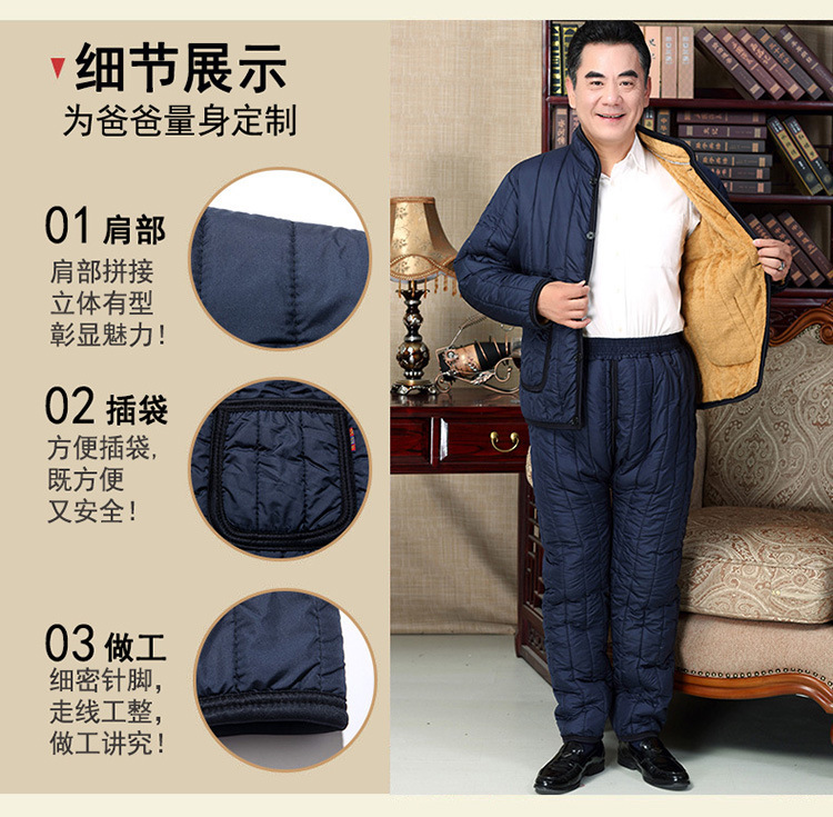 Зимняя Мужская куртка среднего и пожилого возраста, утолщенная хлопковая подкладка на флисовой подкладке, брюки с хлопковой подкладкой для пожилых людей, папа, теплый костюм, мужская теплая одежда