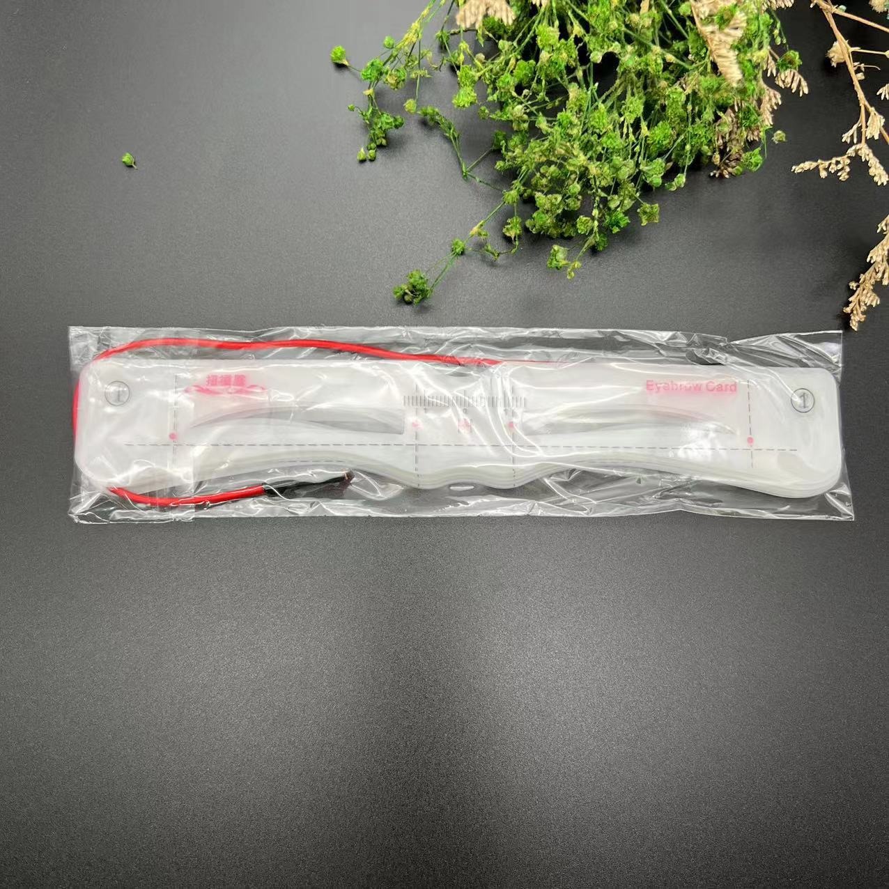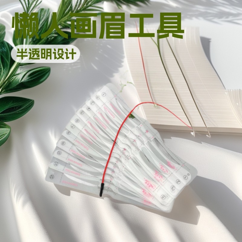 ◦ 线条标记:眉卡上有精细线条,用于定位眉头、眉峰、眉尾的位置和比例(如眉头与鼻翼对齐,眉峰在眼球外侧延长线)。