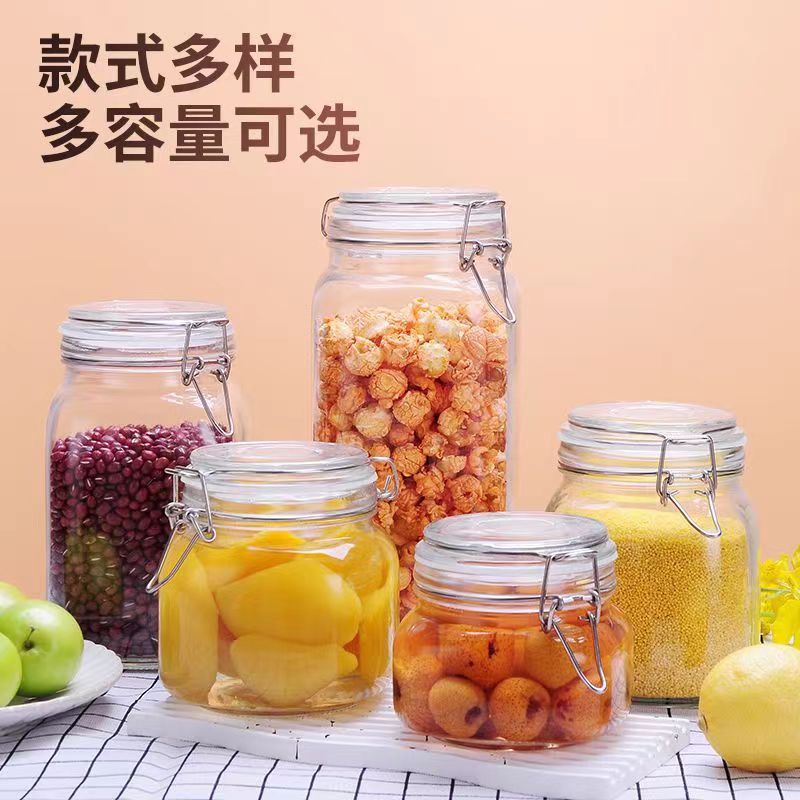 Стеклянная банка для хранения с защелкой, стеклянная герметичная банка, прозрачная влагостойкая банка для хранения чая, бутылка для меда, банка для хранения солений