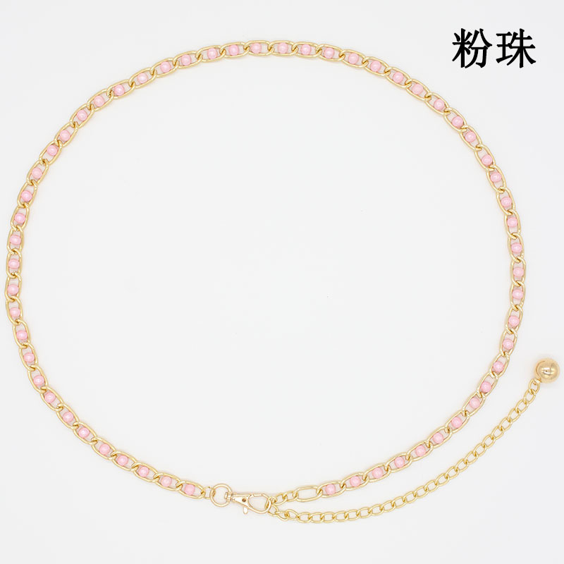 Женская жемчужная поясная цепочка в Корейском стиле с декоративным поясом в виде юбки, сладкая металлическая цепочка карамельного цвета, модный тонкий ремень с крючком