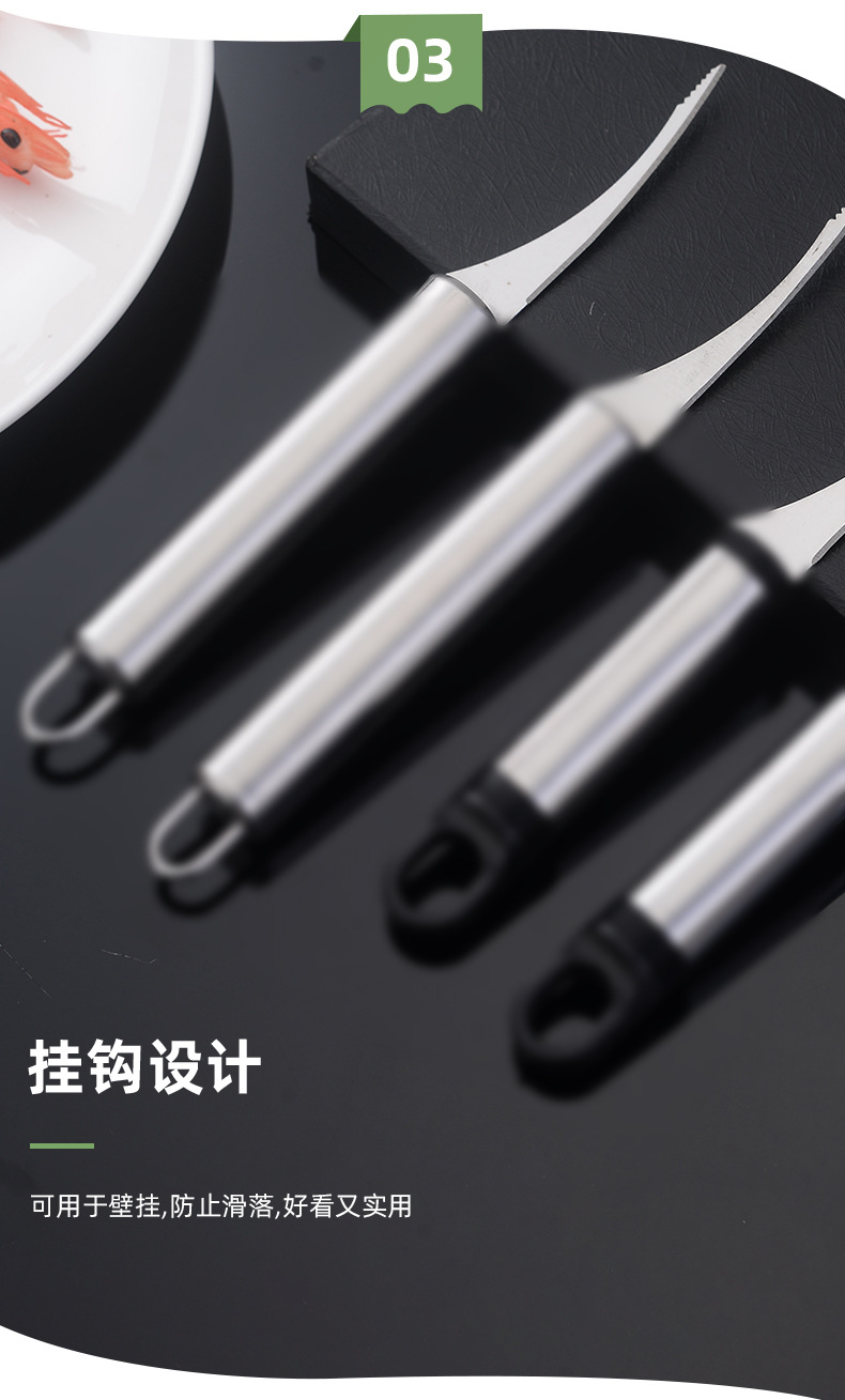 Нож для креветок из нержавеющей стали с круглой ручкой; Черная креветка нить нож; Нож для креветок Double-Line