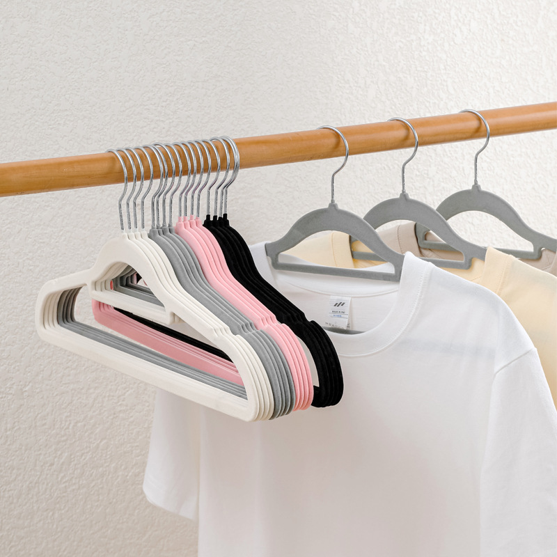 Флокированная вешалка для одежды Вешалка для влажной и сухой сушки утолщенная Нескользящая бесшовная вешалка для одежды Бытовая поддержка для хранения одежды
