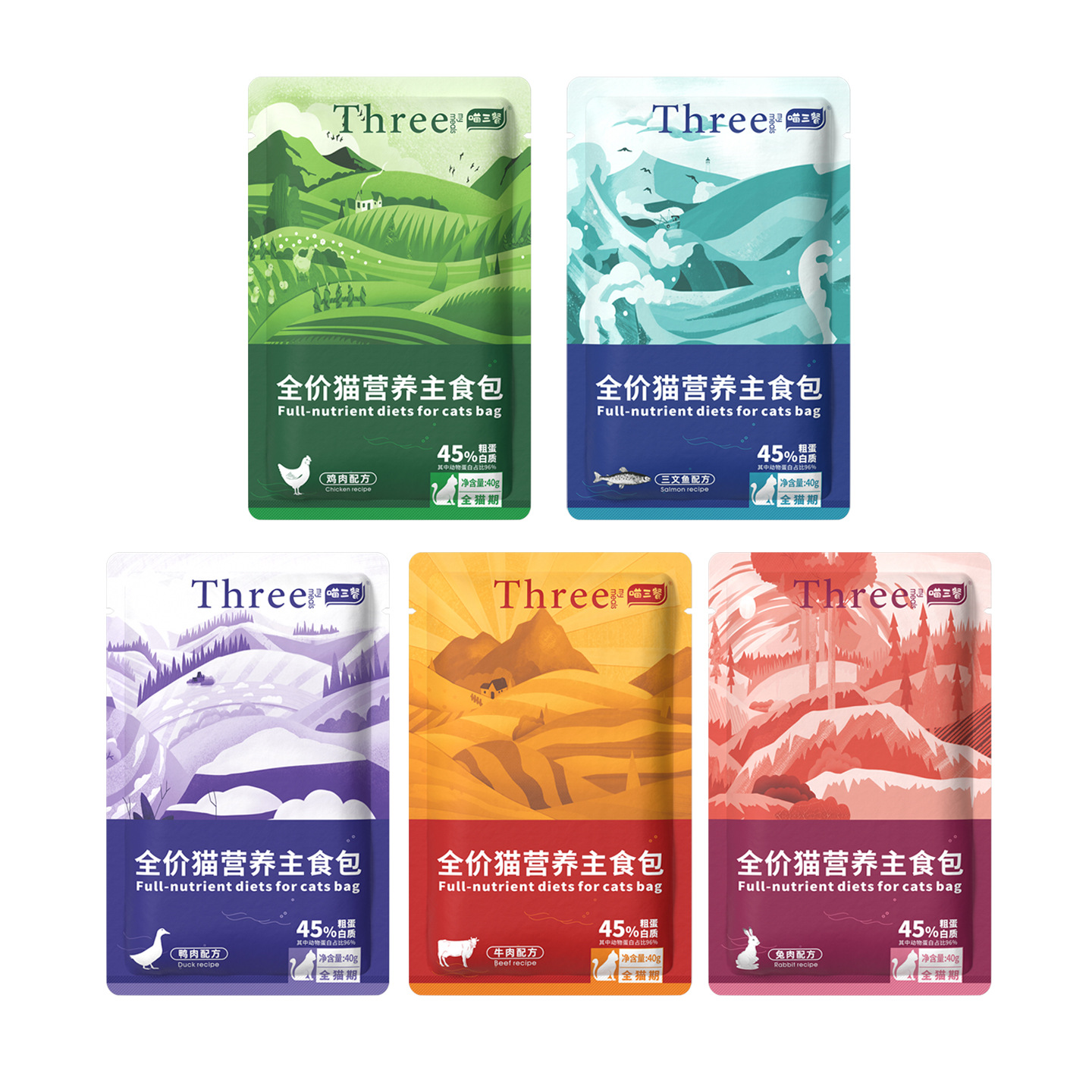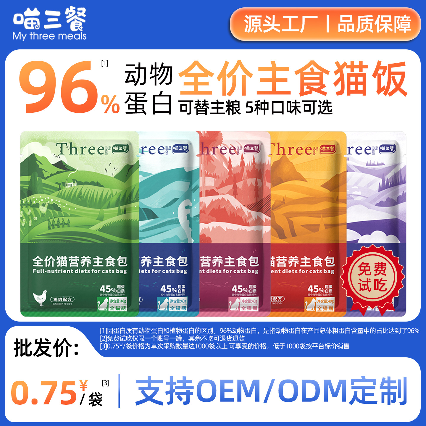 Корм для кошек Meow Three Meals: полнорационный набор с курицей и говядиной, свежее мясо для котят, свежезапечатанная упаковка, питательный влажный корм для домашних животных оптом