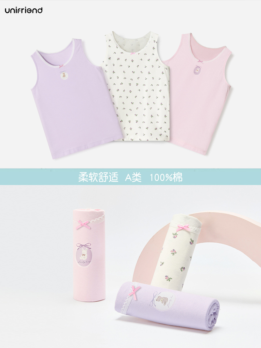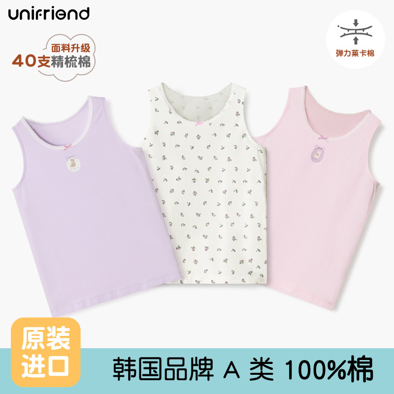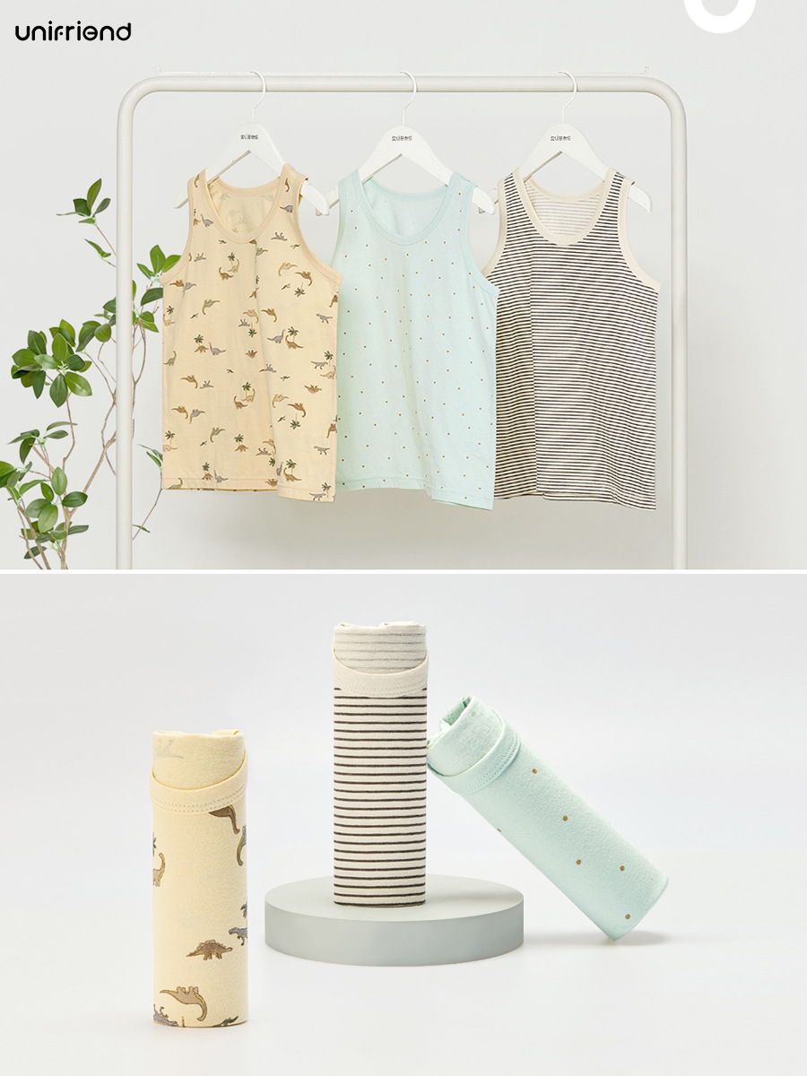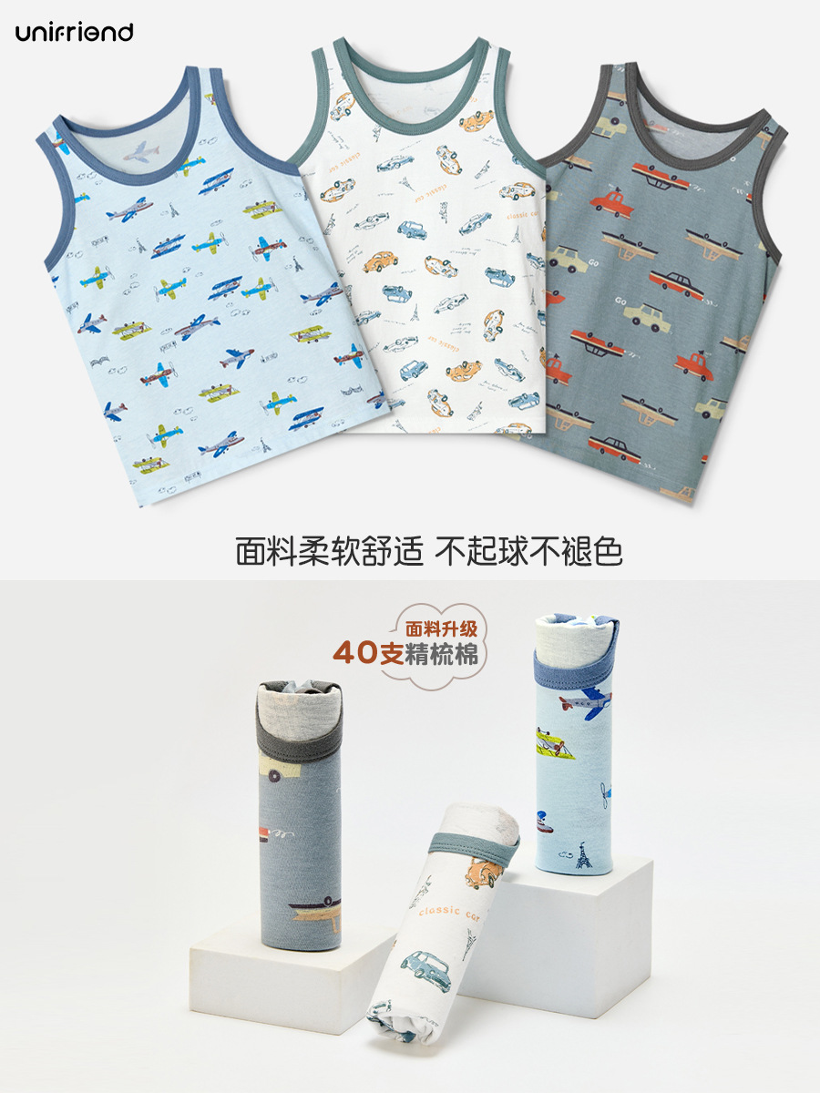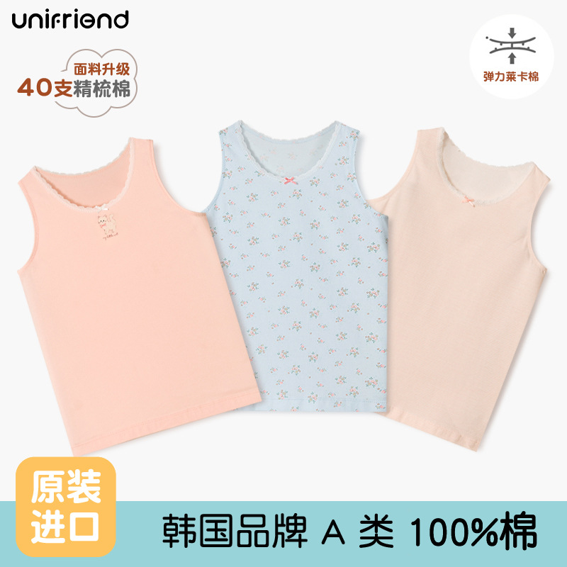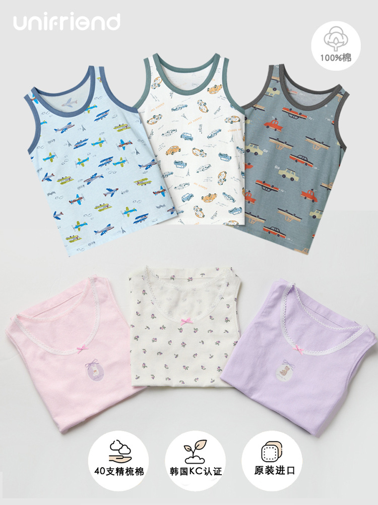 Детский жилет unifriend, нижнее белье для девочек, тонкий жилет из чистого хлопка, I-образный жилет для мальчиков, можно носить четыре сезона
