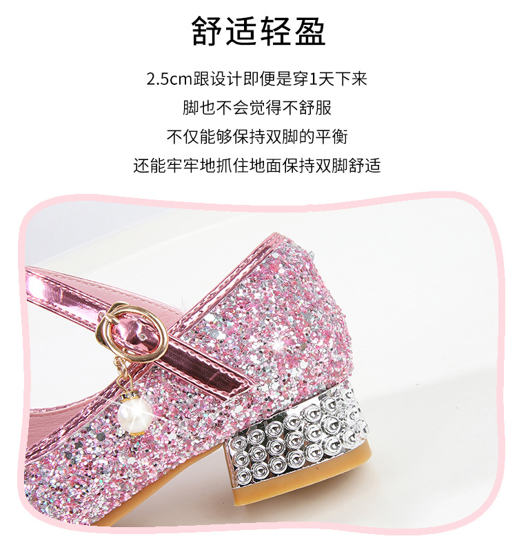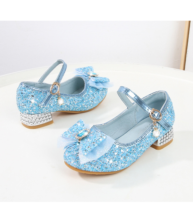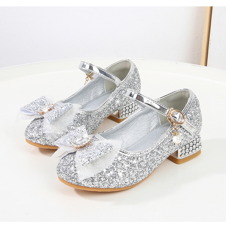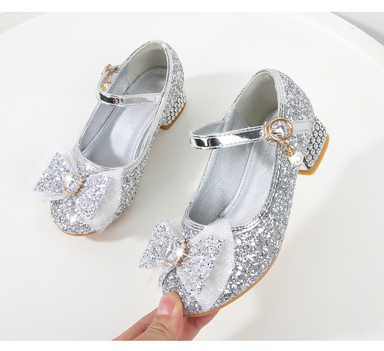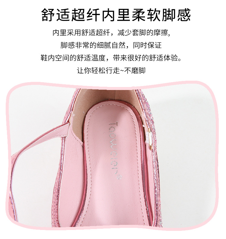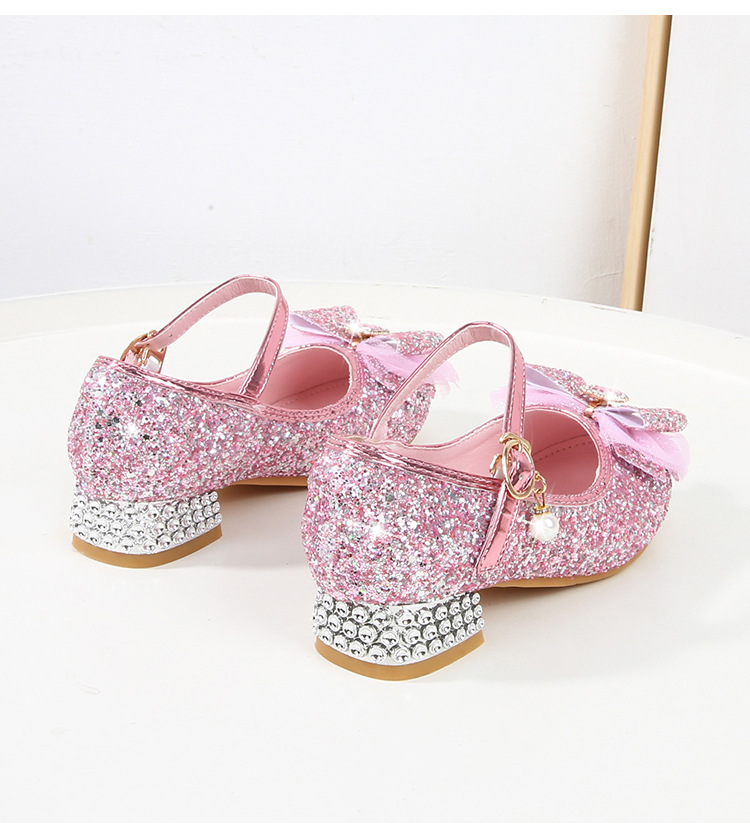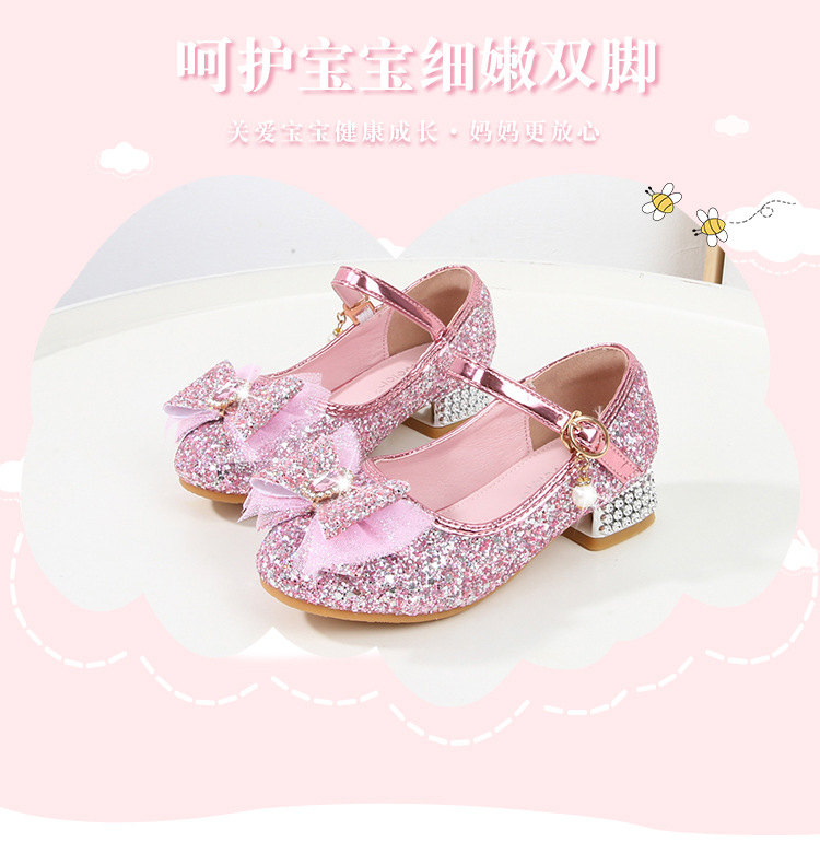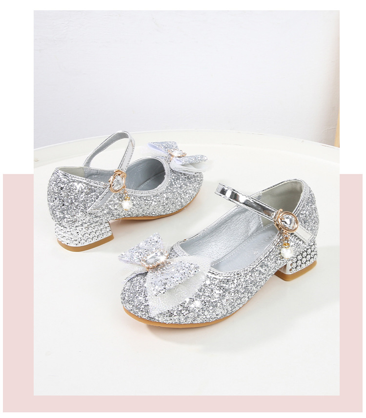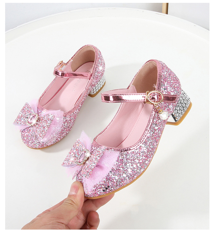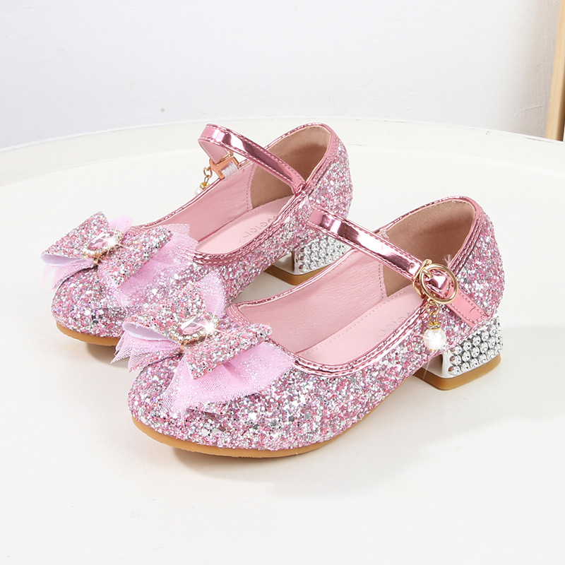 Детские туфли на высоком каблуке для девочек Принцесса обувь с блестками для девочек