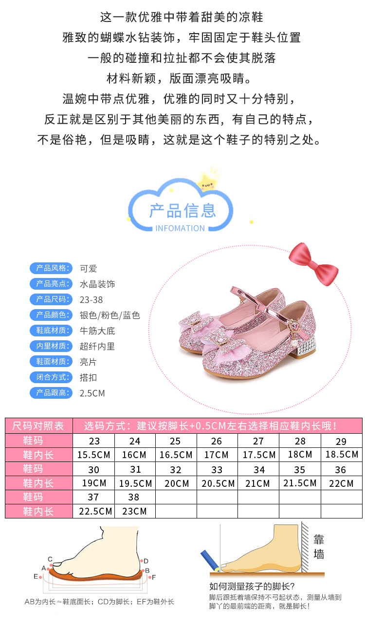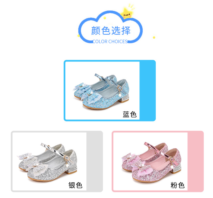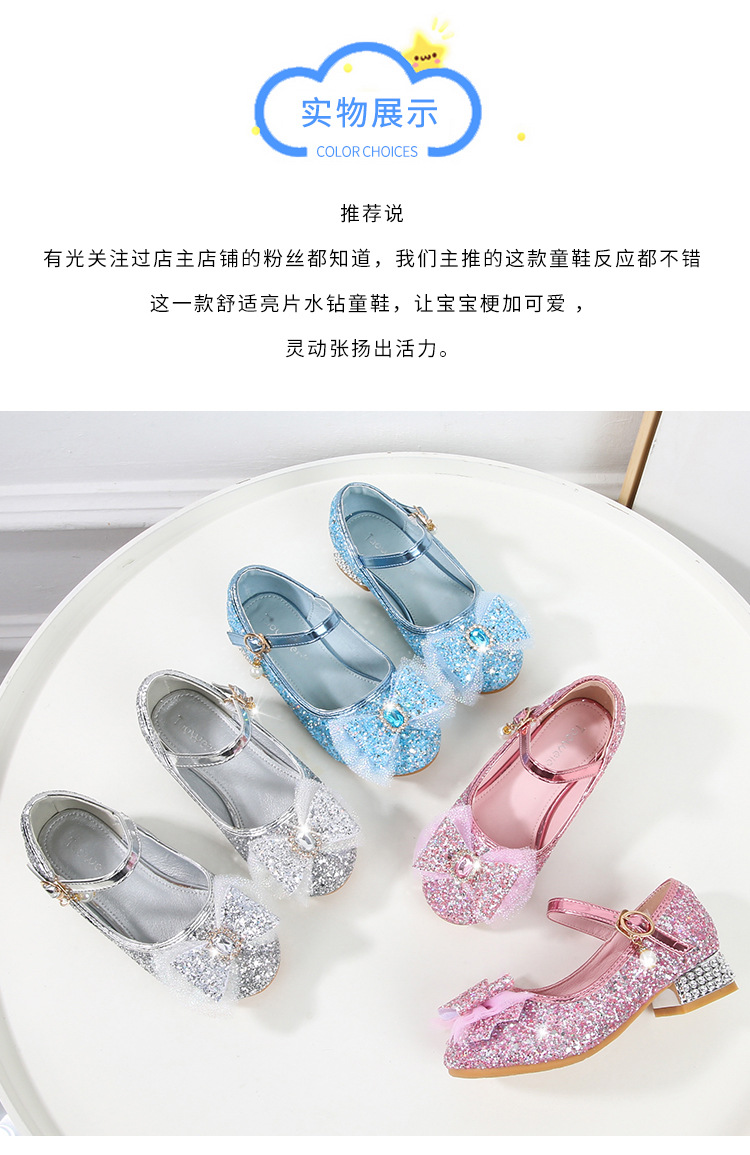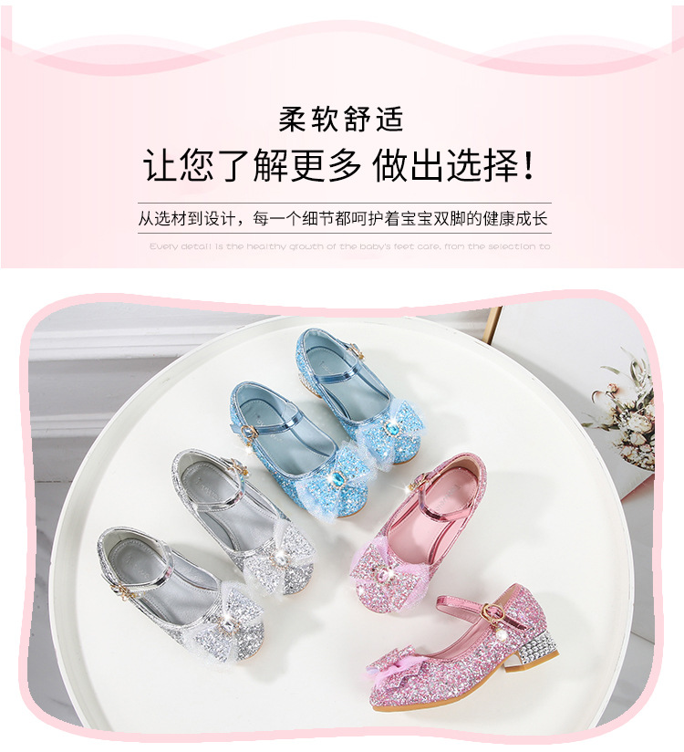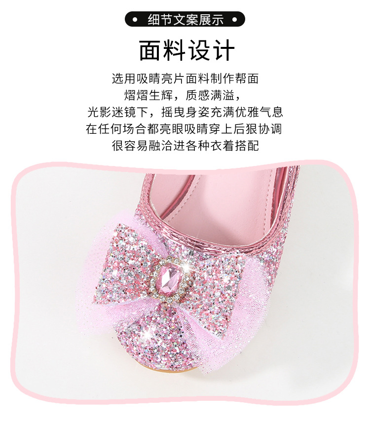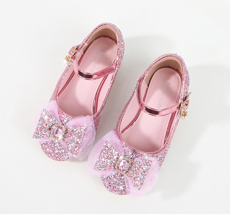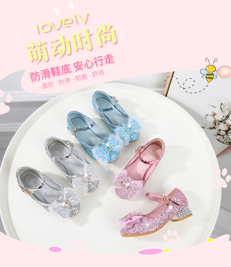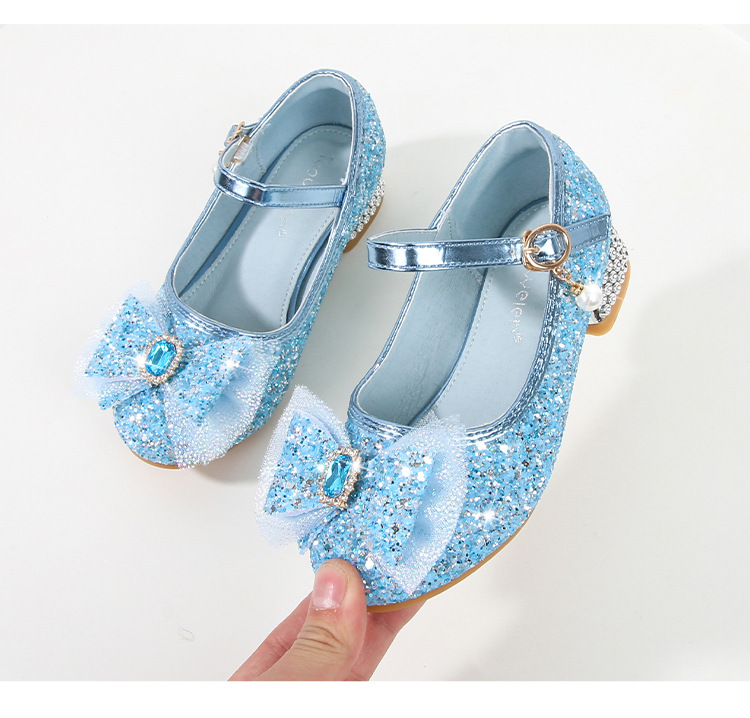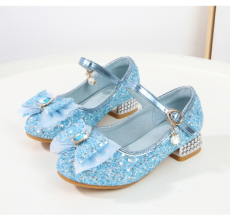 Детские туфли на высоком каблуке для девочек Принцесса обувь с блестками для девочек