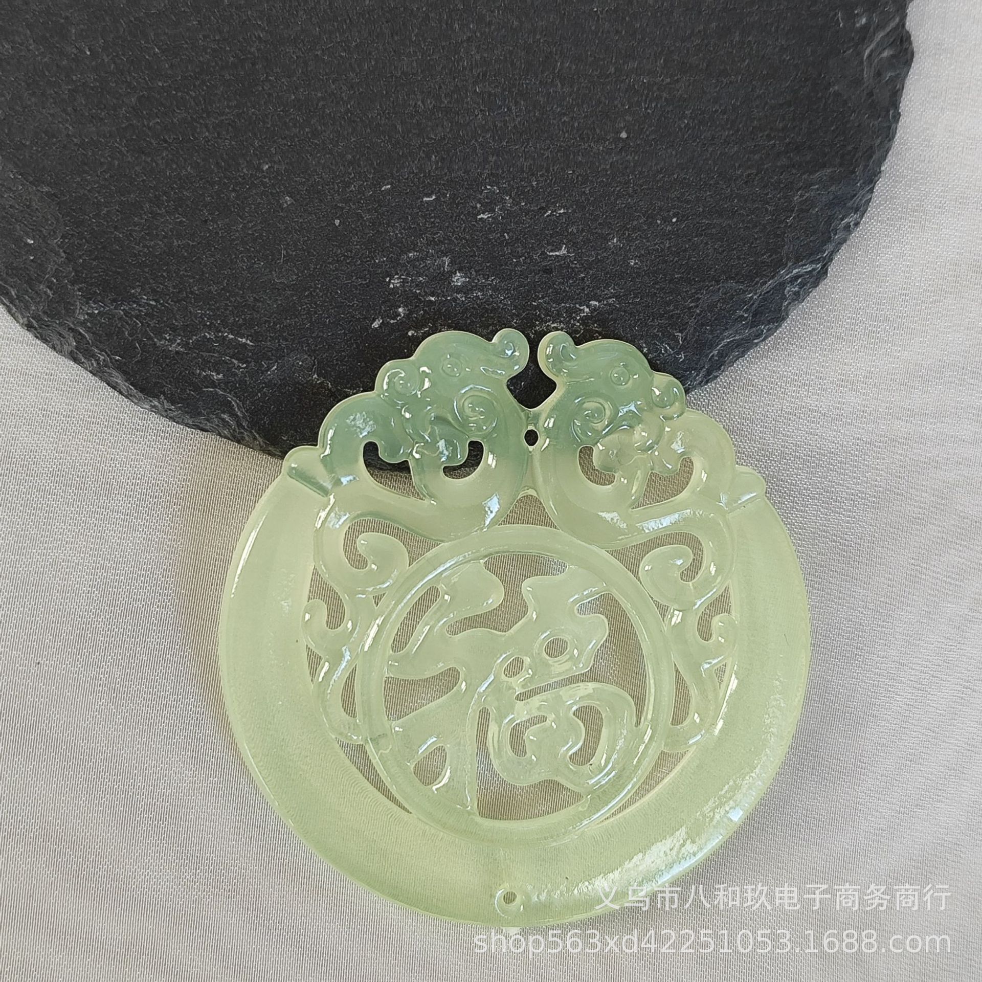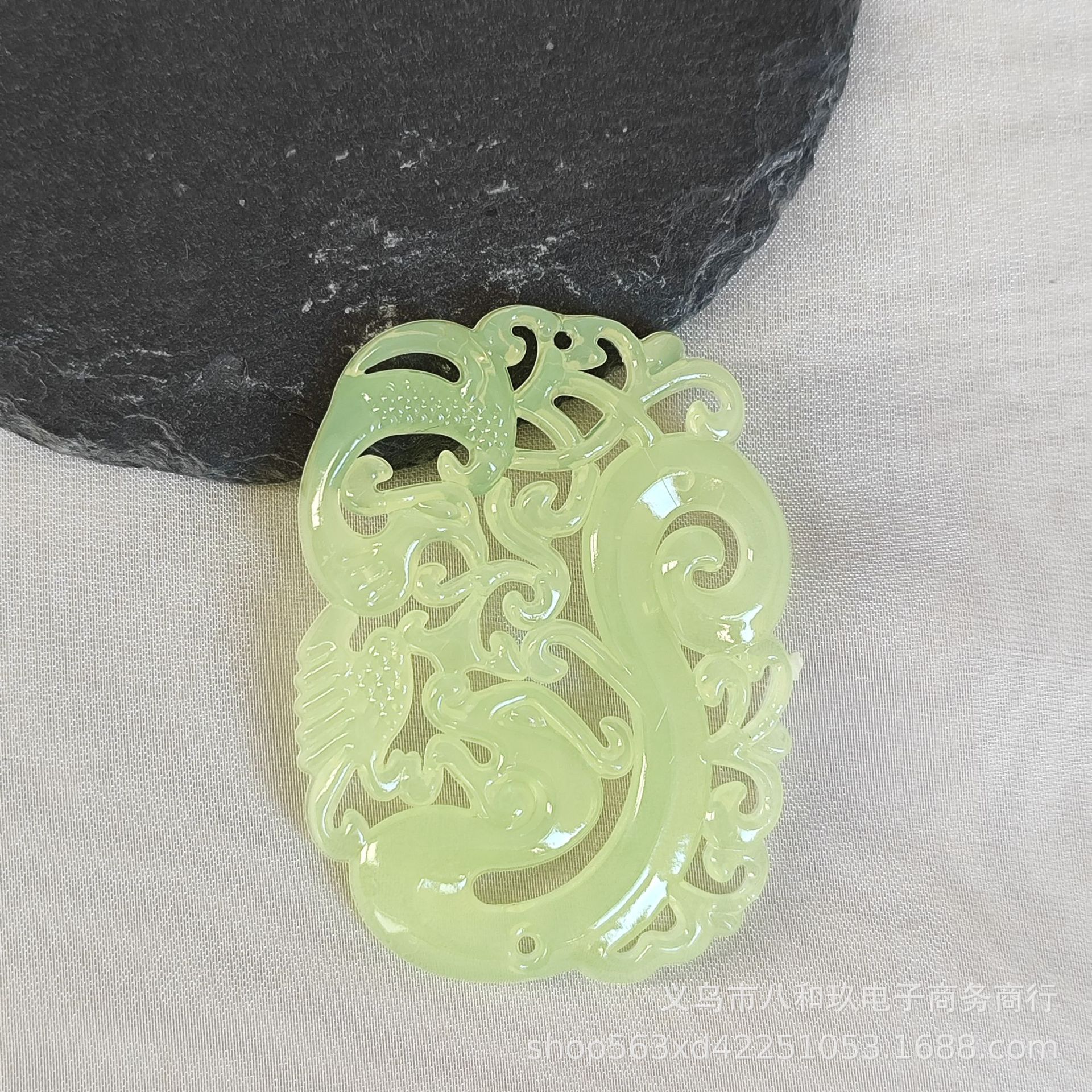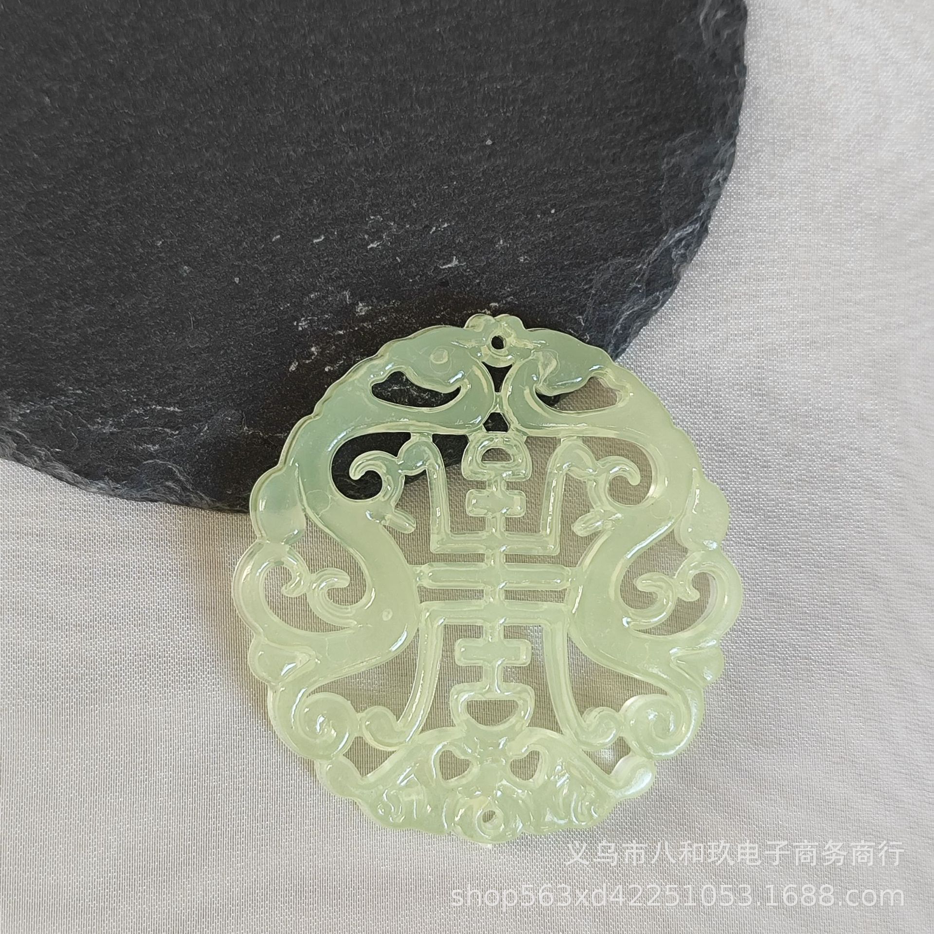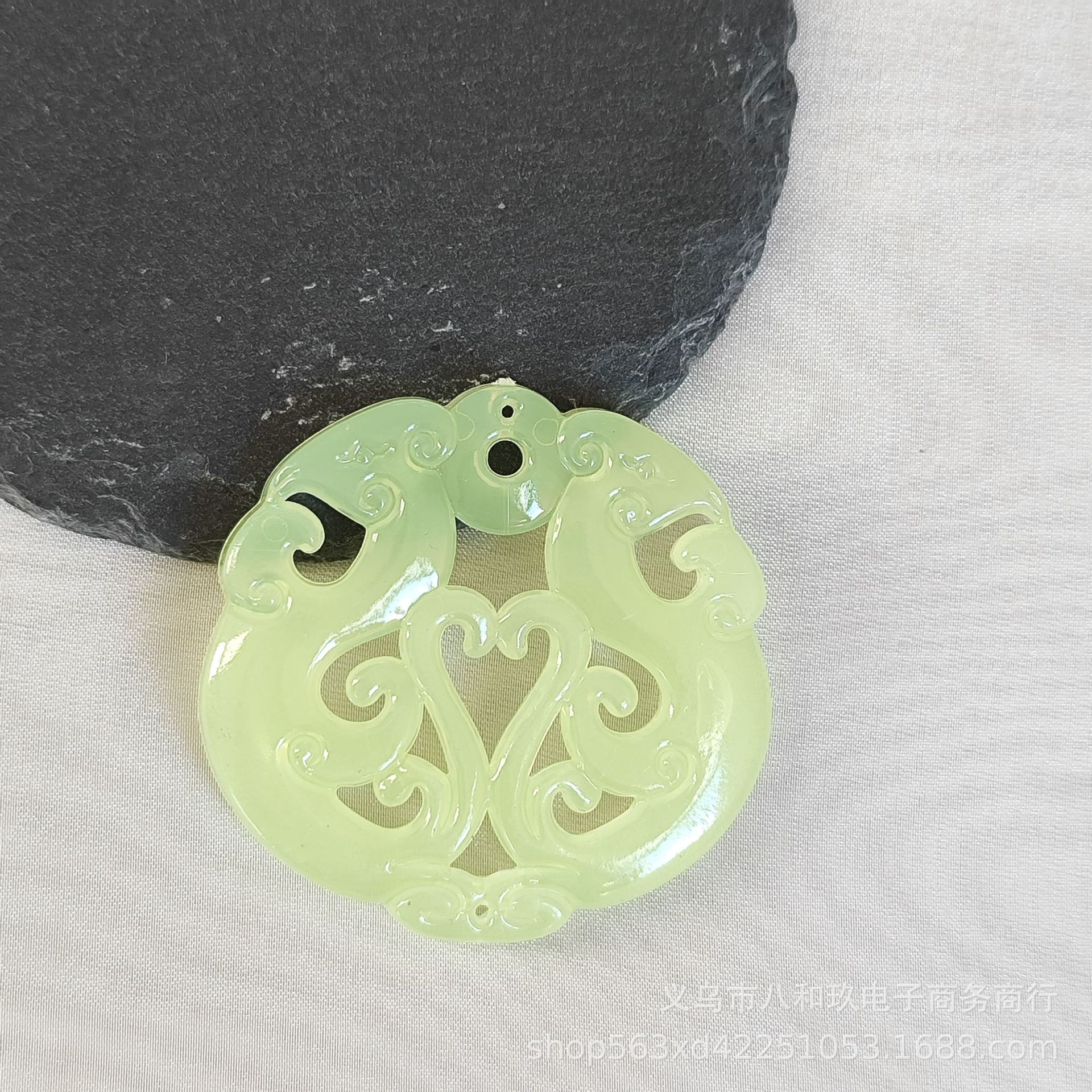 Имитация натурального белого нефрита с полыми двойными драконами, желанием дня рождения, нефритовая подвеска с кисточками