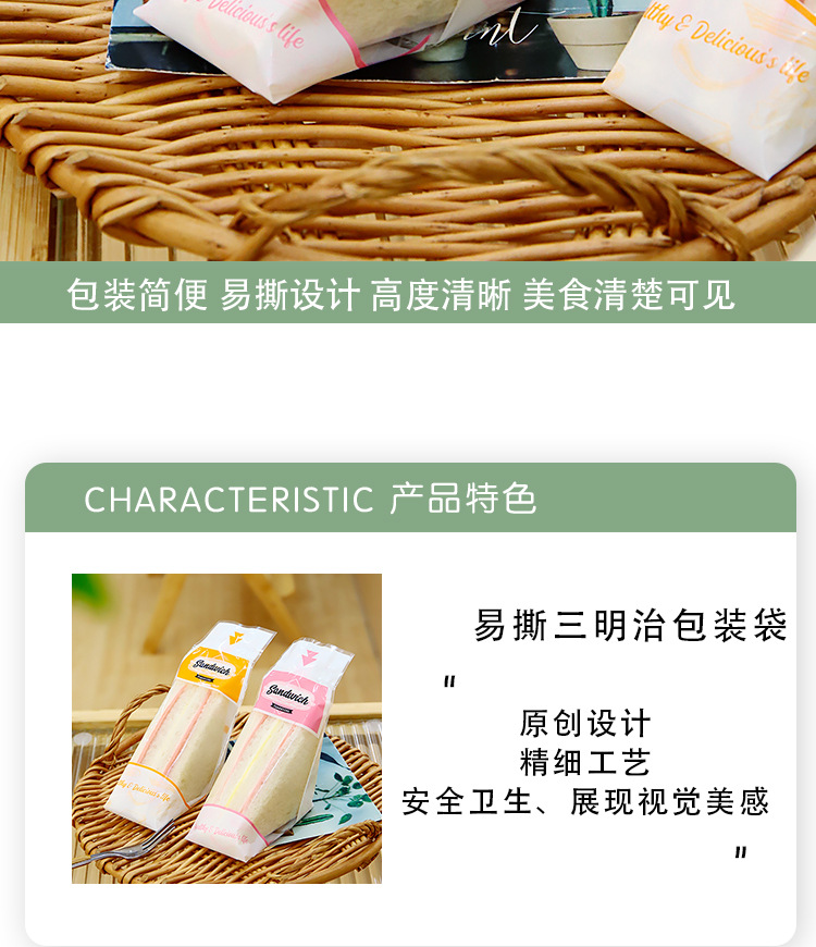 Специальный одноразовый прозрачный пакет для сэндвичей, упаковочная бумага для сэндвичей, легко рвущийся, треугольный пакет для выпечки торта, упаковки хлеба