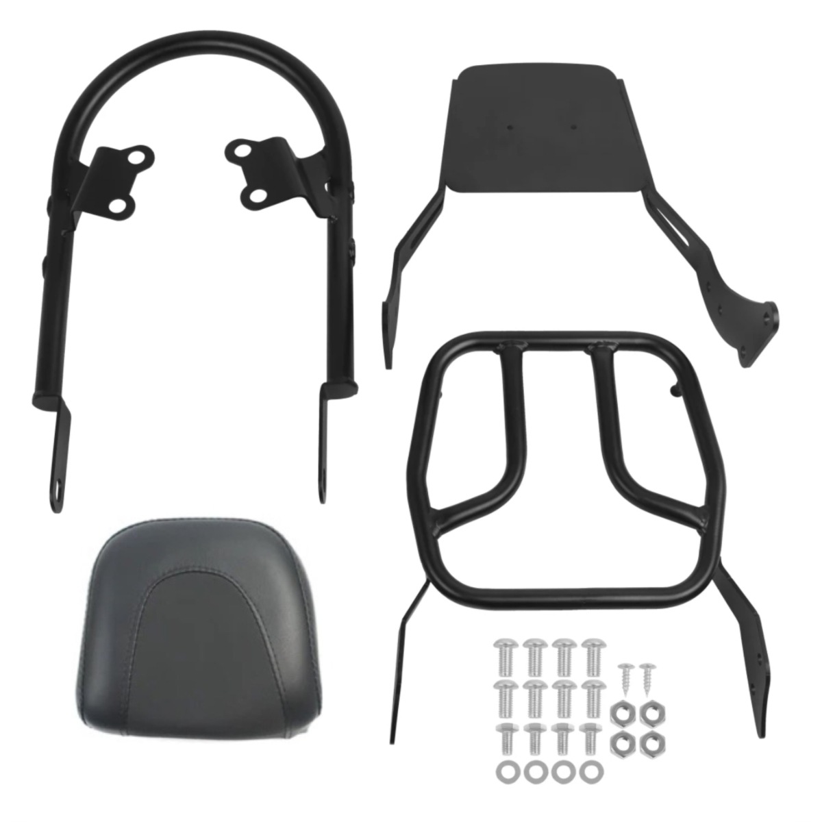 Задний подлокотник + полка спинки (матовый черный); Задний подлокотник + полка спинки (хромирование); Задний подлокотник + изогнутый хвостовой лук (матовый черный); Задний подлокотник + изогнутый хвостовой лук (электрохромирование); Отдельная спинка полка (матовая черная); Отдельная полка для спинки (хромирование)