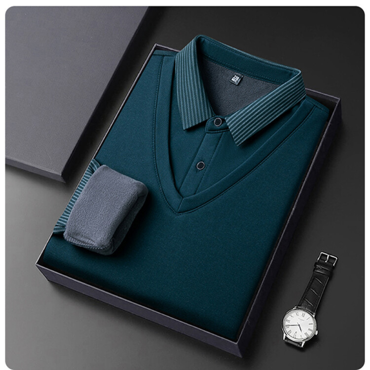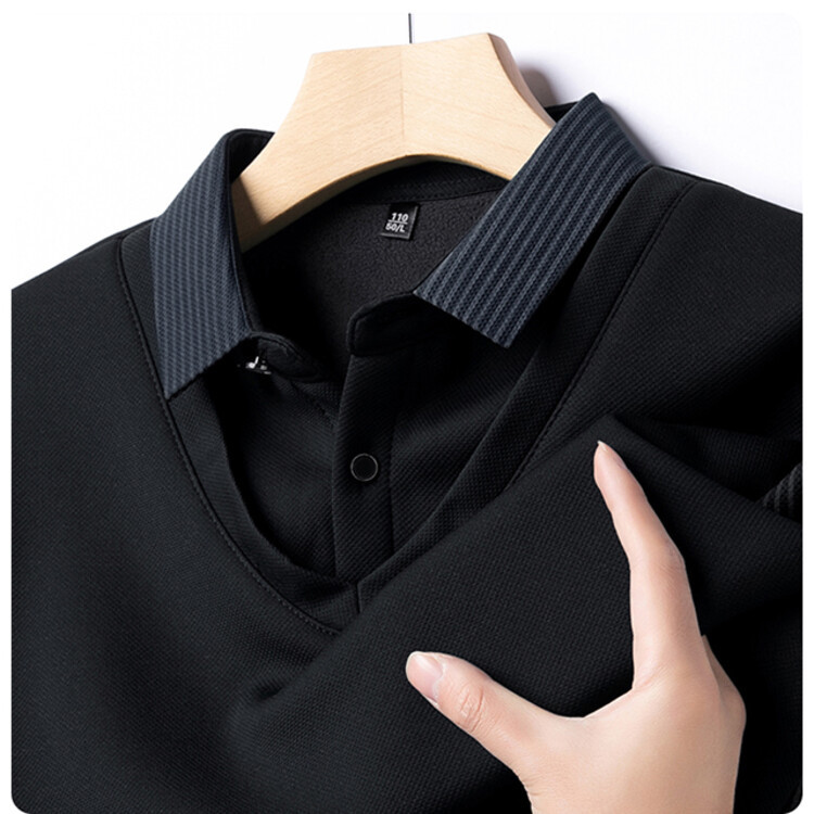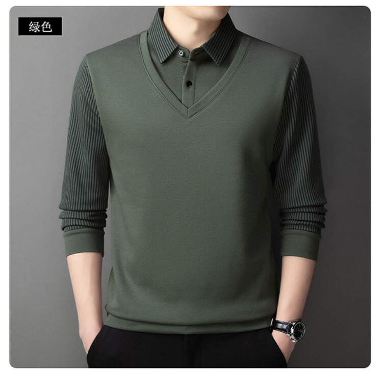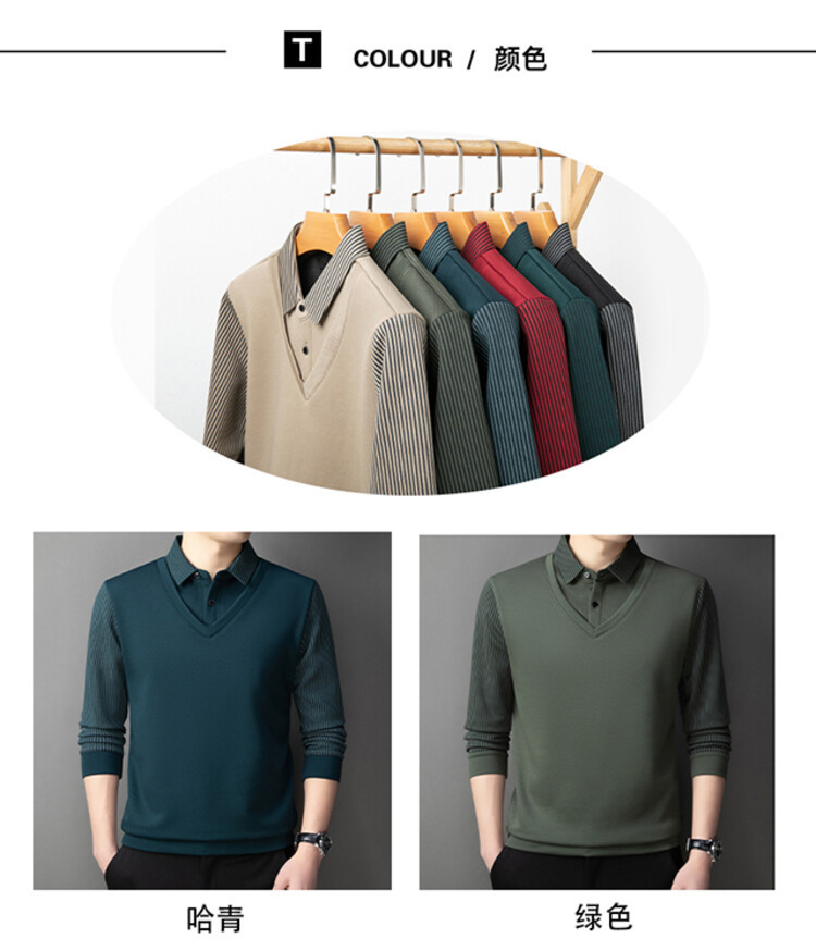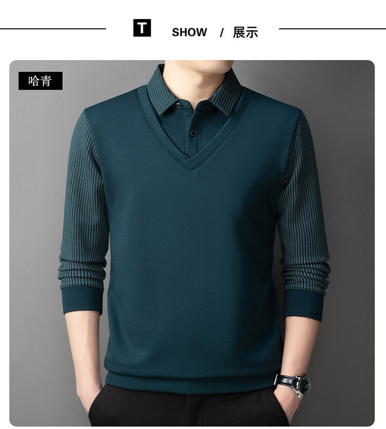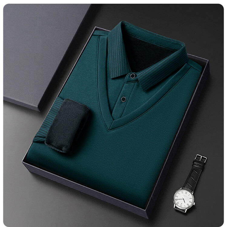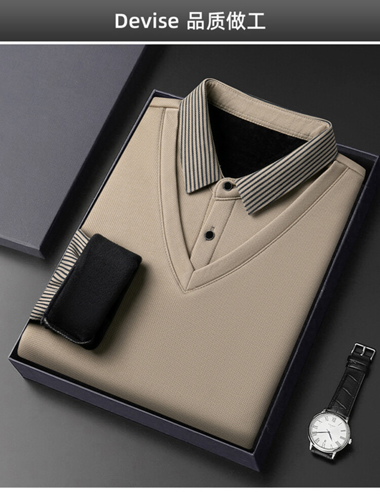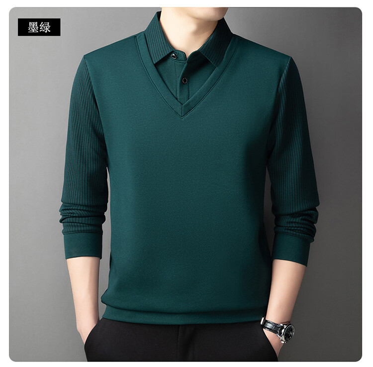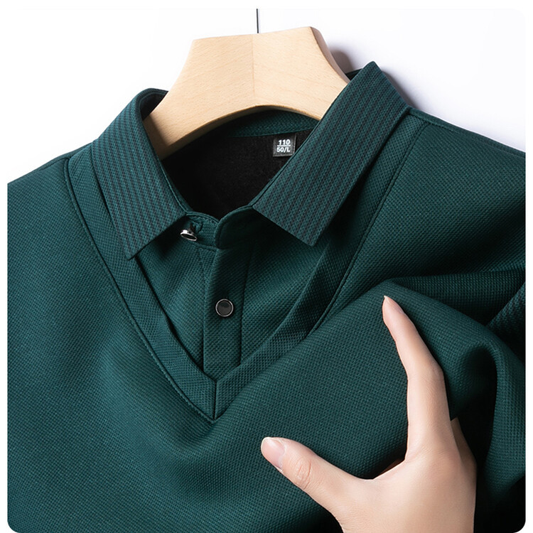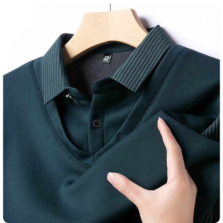Мужская рубашка-поло с эффектом двухслойности на осень и зиму, с отложным воротником, повседневная, для мужчин среднего возраста, универсальная, с длинным рукавом