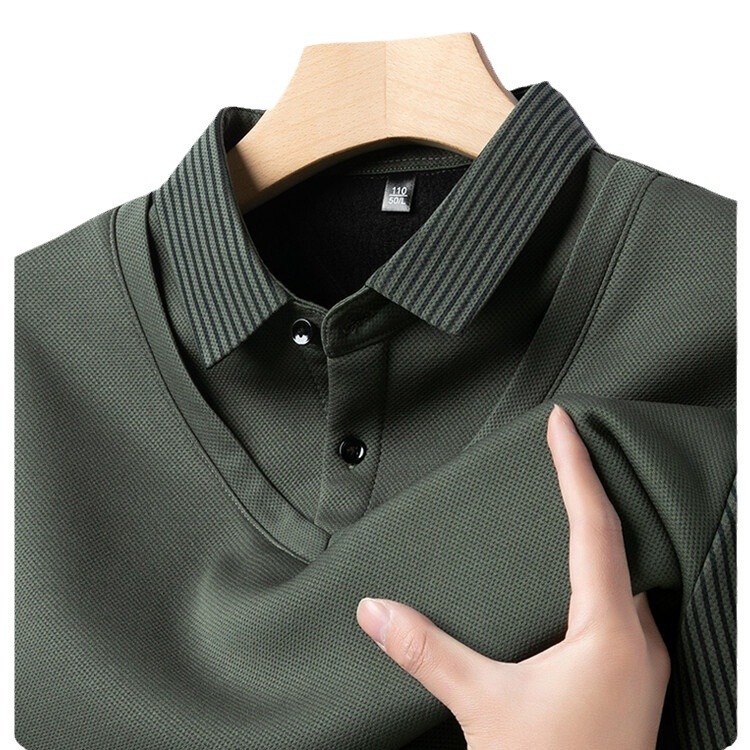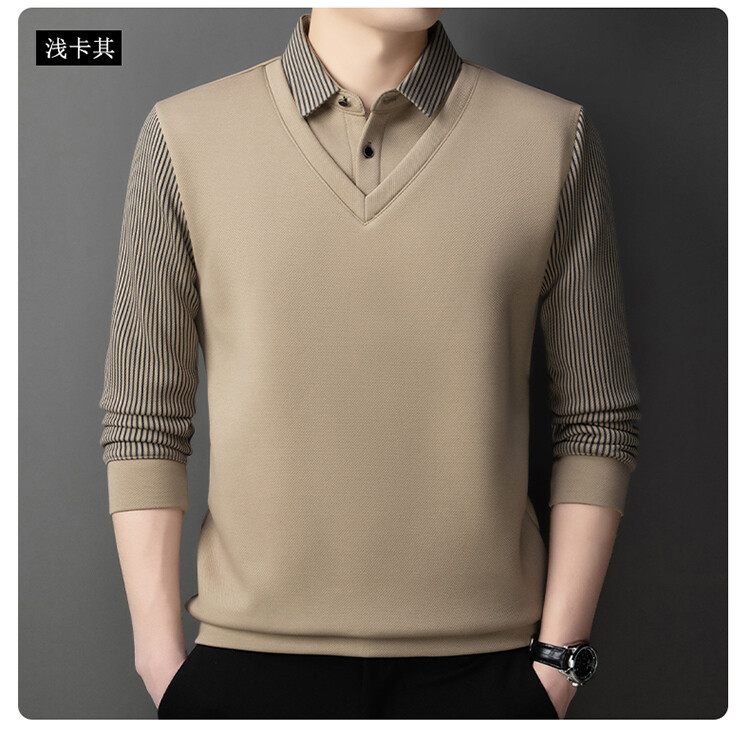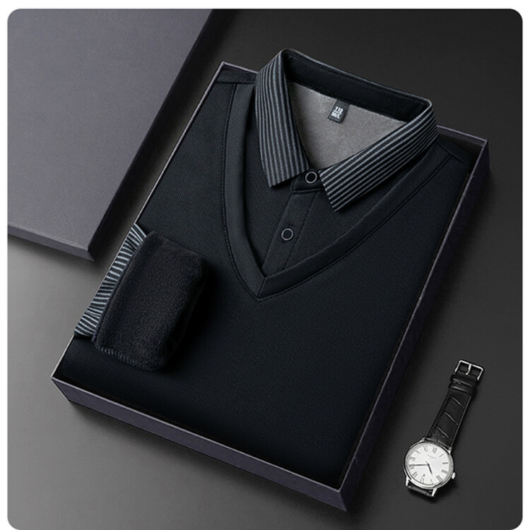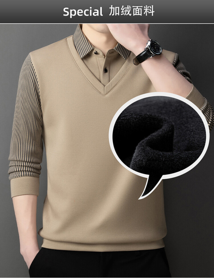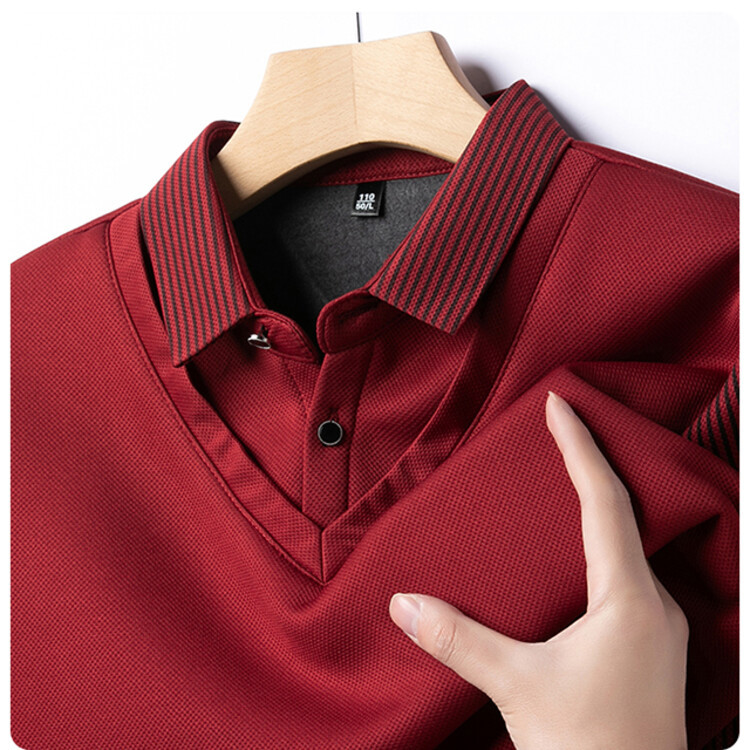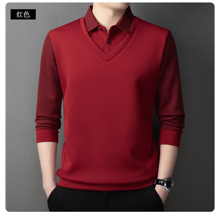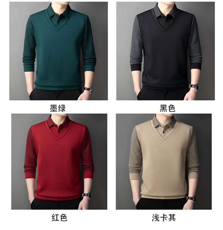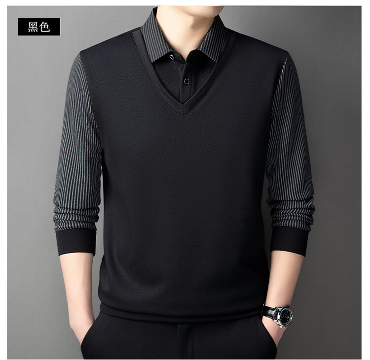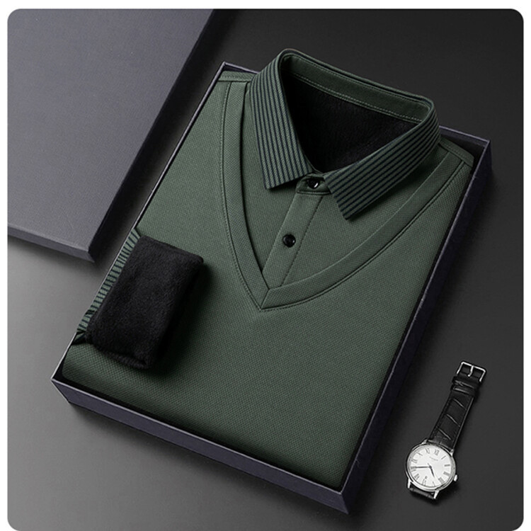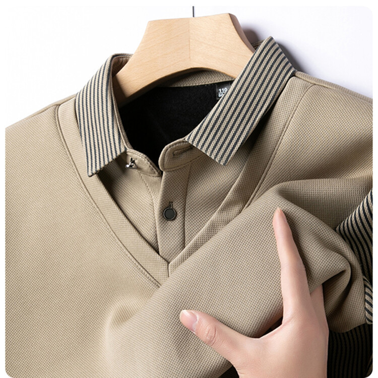Мужская рубашка-поло с эффектом двухслойности на осень и зиму, с отложным воротником, повседневная, для мужчин среднего возраста, универсальная, с длинным рукавом