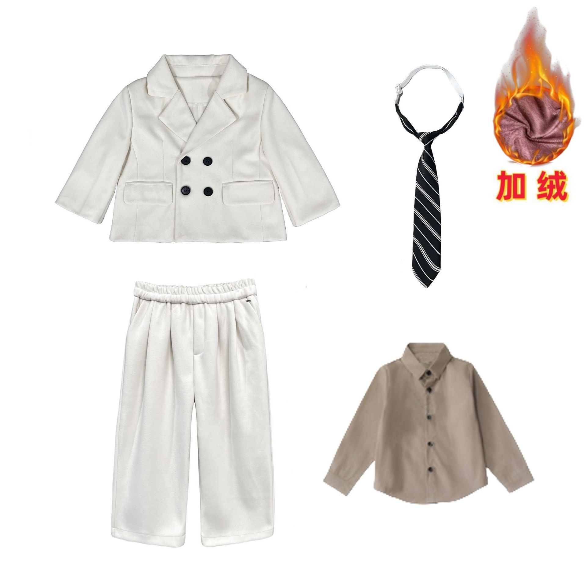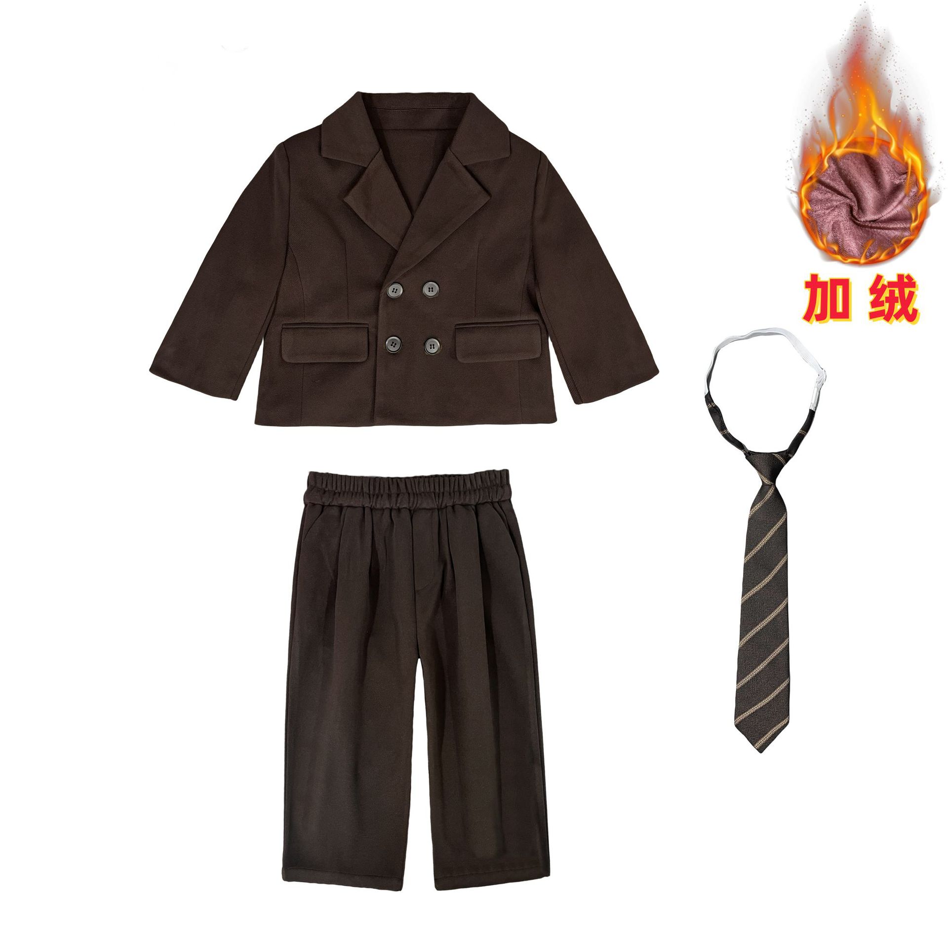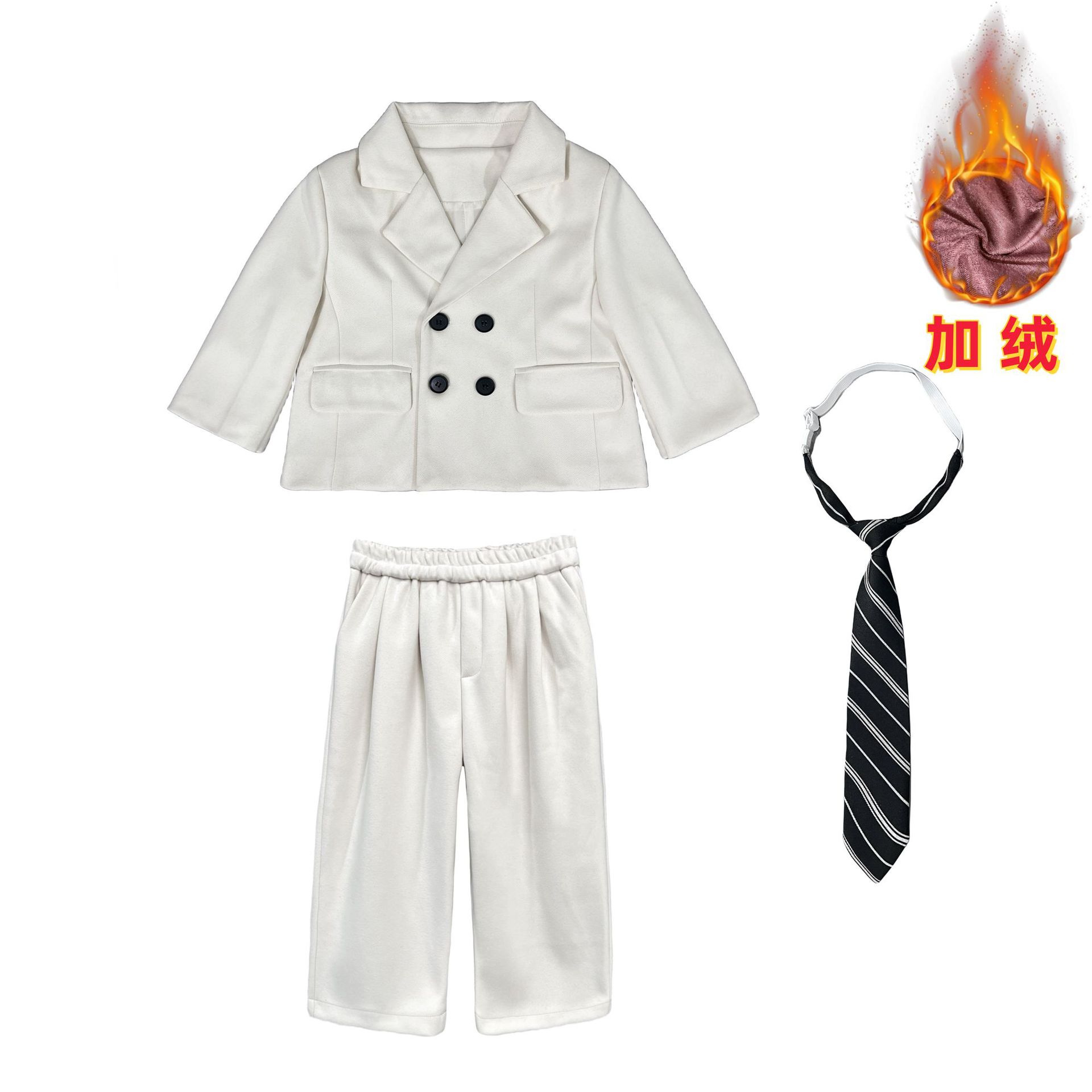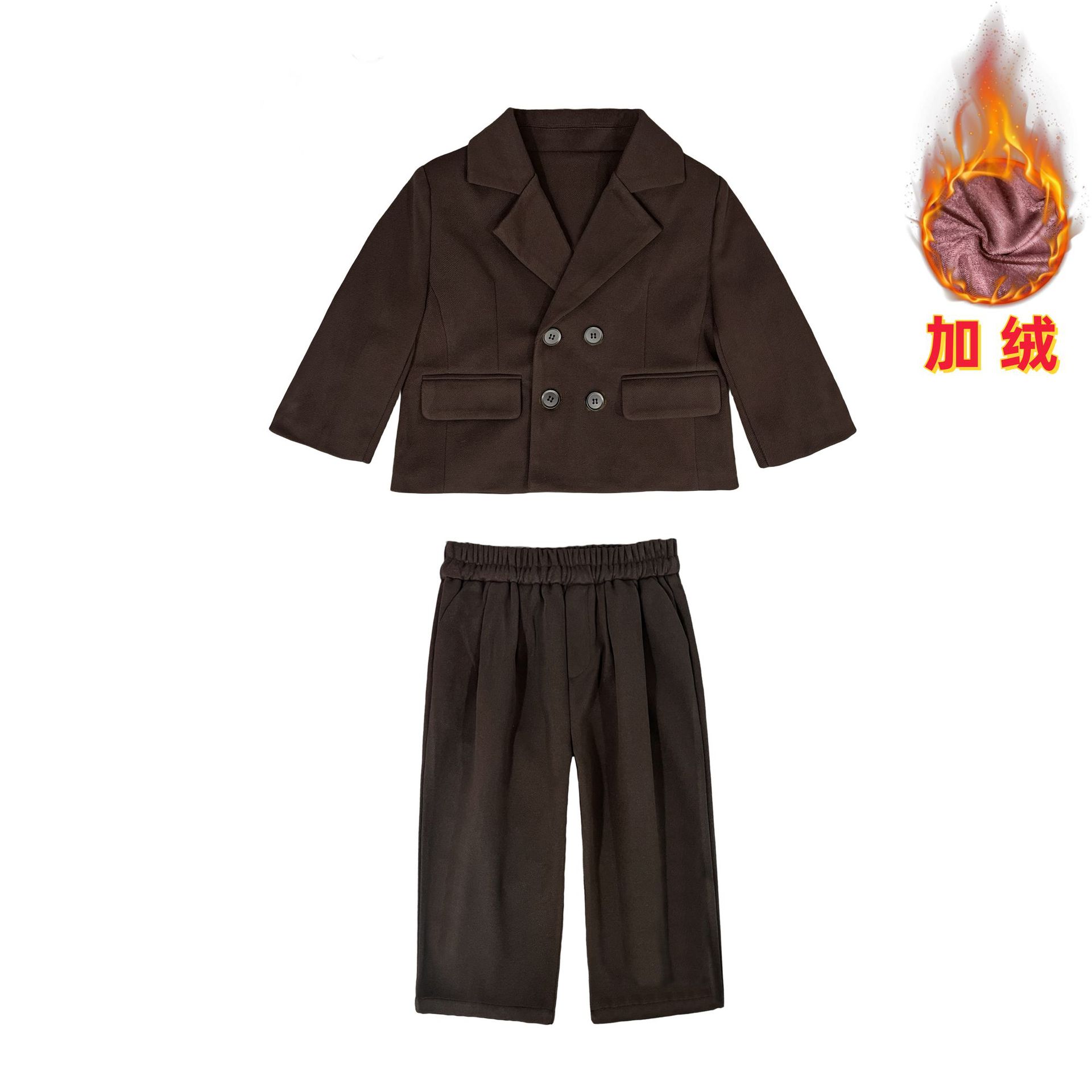 2023 осень-зима Новый костюм для мальчиков утолщенный шерстяной детский маленький костюм в Корейском стиле свадебный речевой костюм для девочек-цветочниц