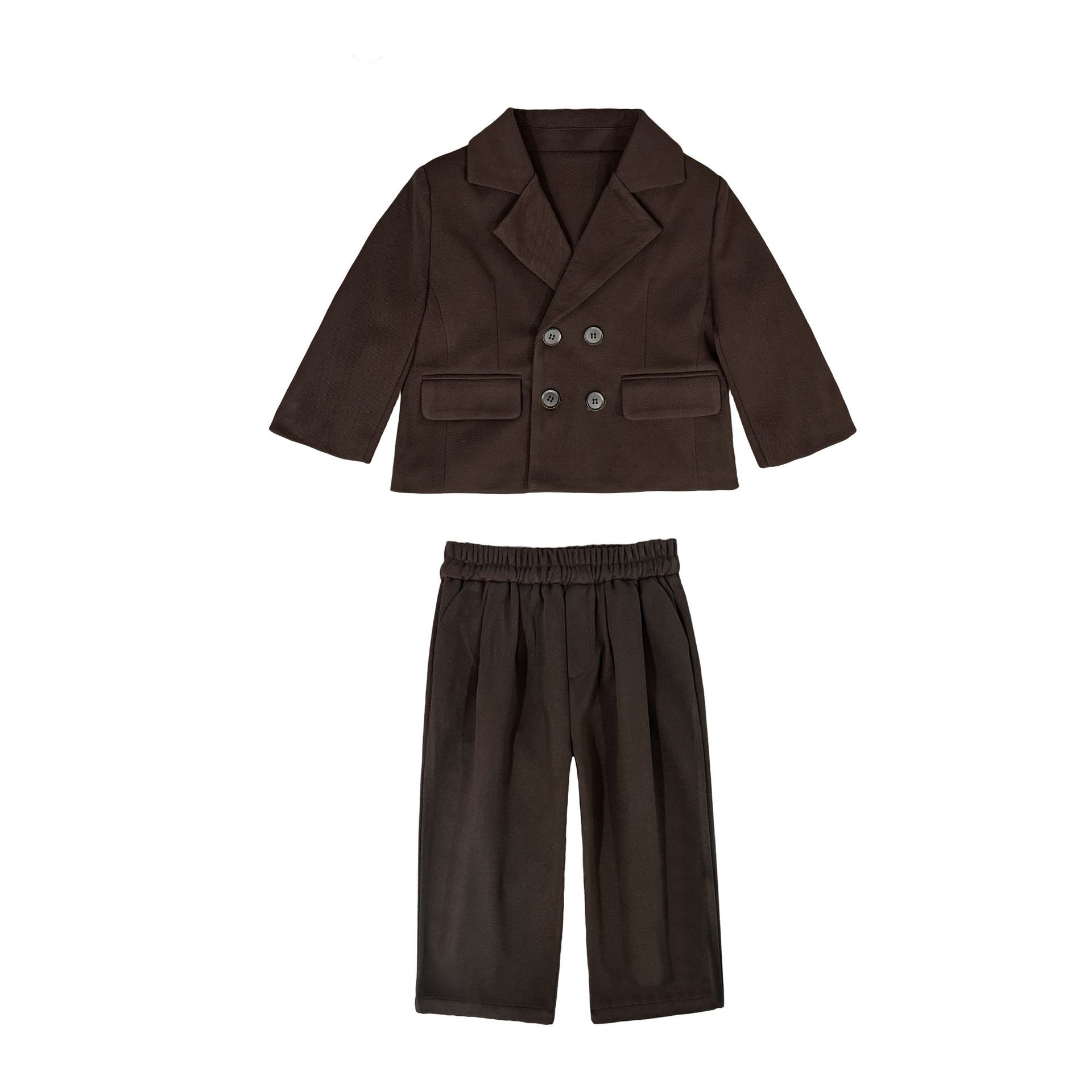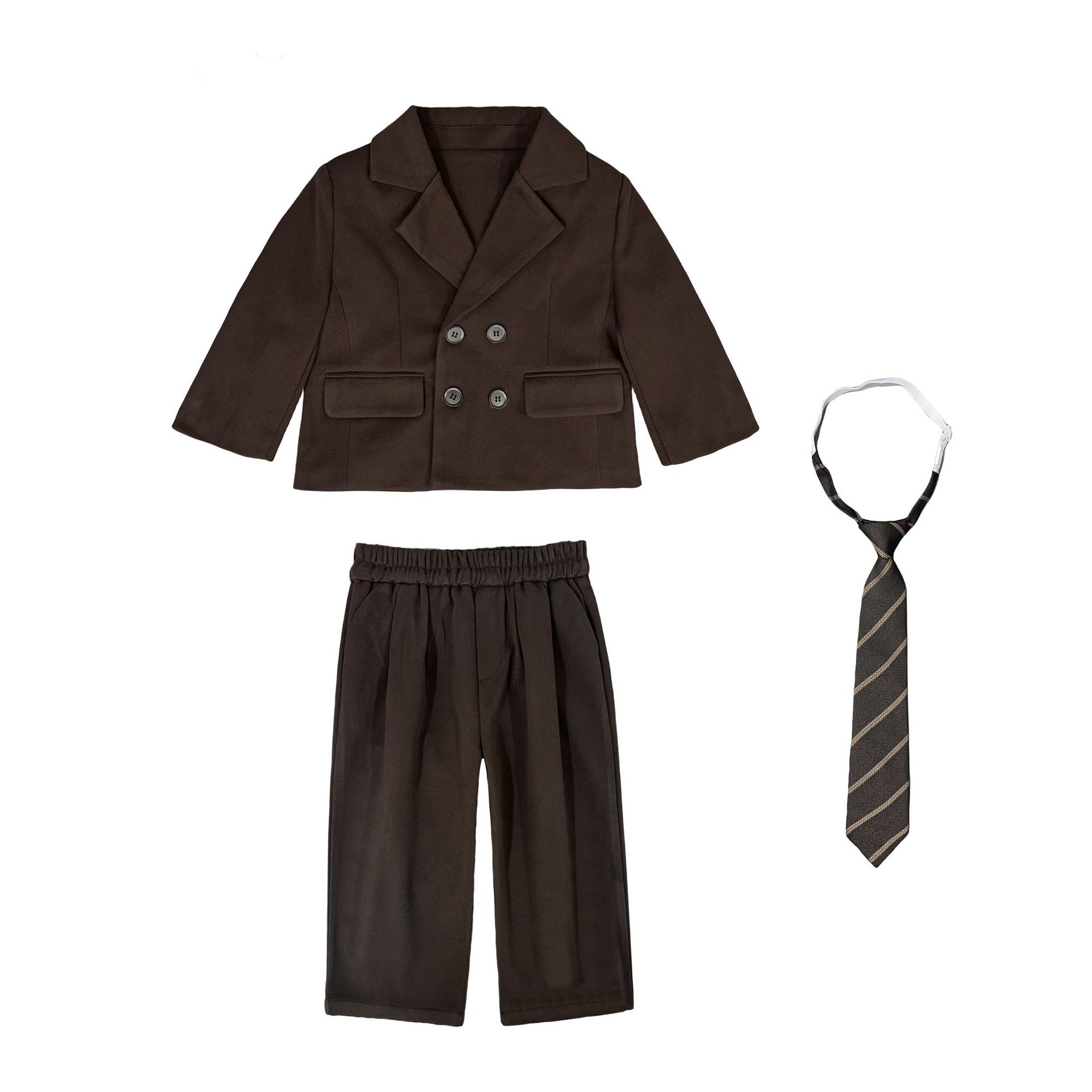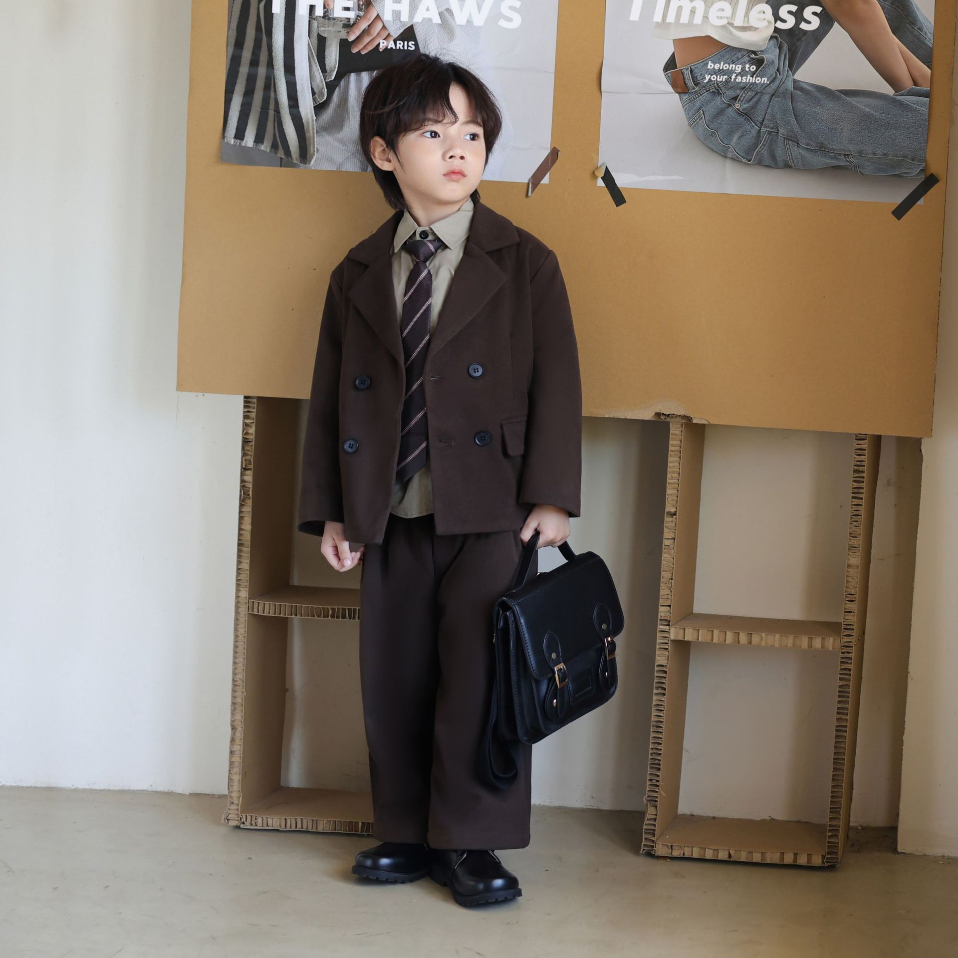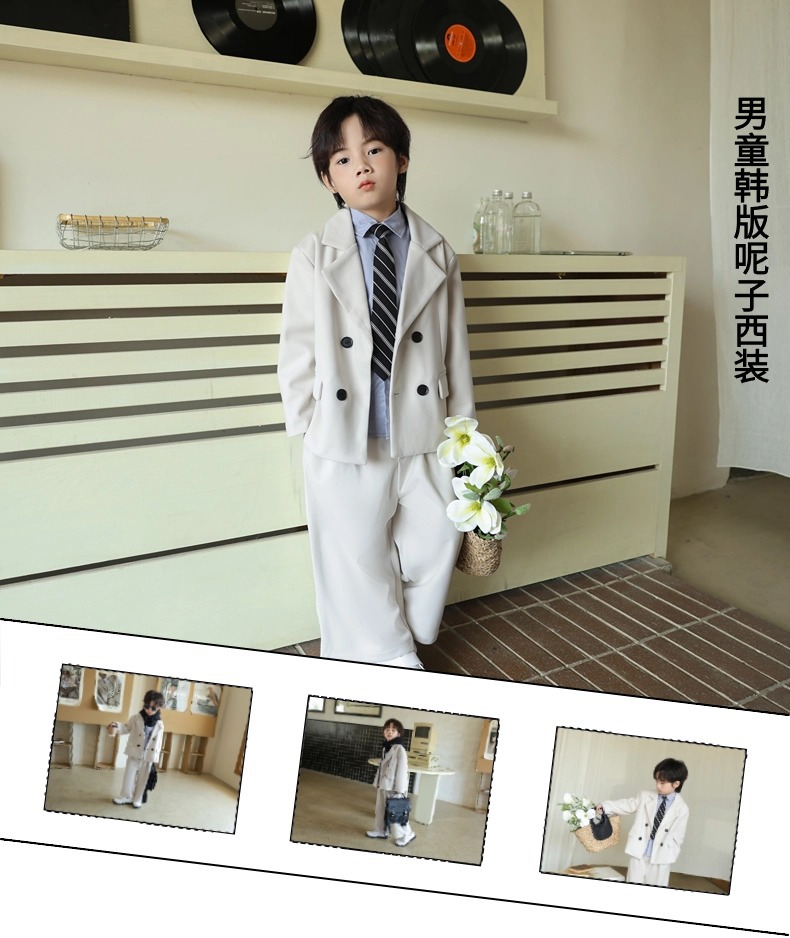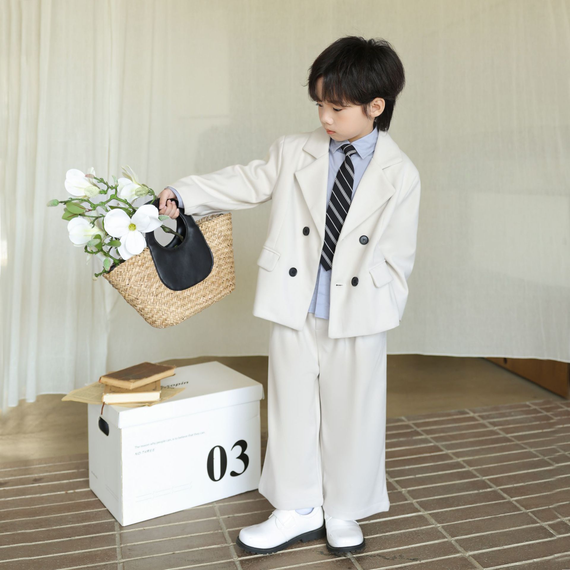 2023 осень-зима Новый костюм для мальчиков утолщенный шерстяной детский маленький костюм в Корейском стиле свадебный речевой костюм для девочек-цветочниц