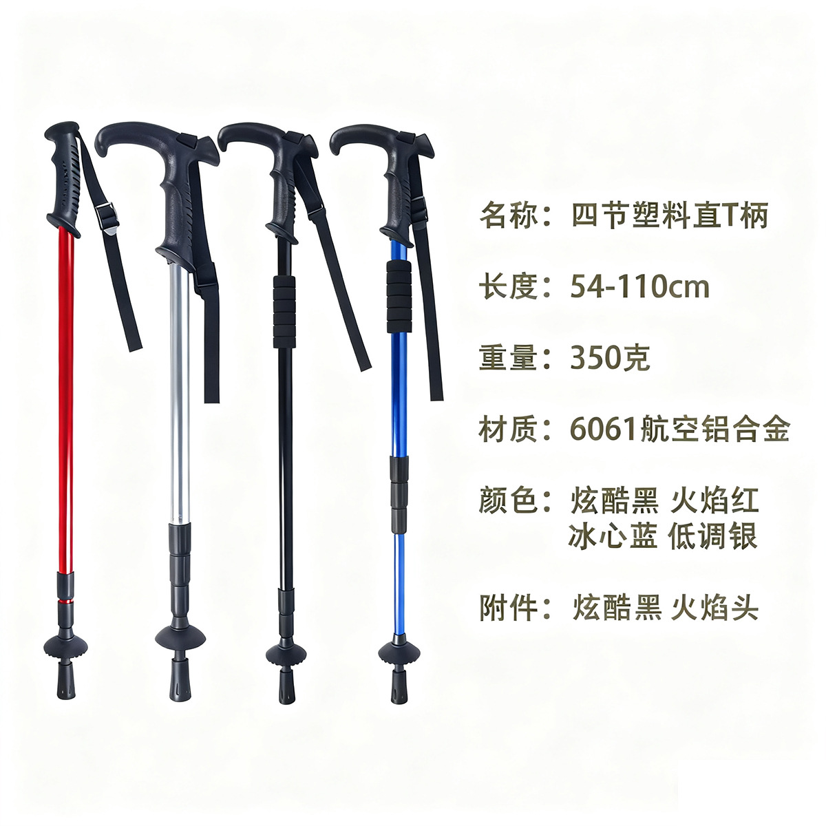 材质:杖杆—硬铝合金 杖尖—碳钢 手柄—PP/TPR