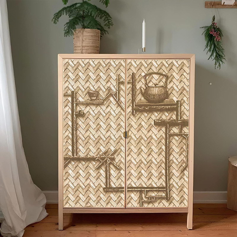 Самоклеящиеся обои Amazon 3D с узором «соты», ПВХ, в китайском стиле, имитация бамбукового плетения, ретро-дизайн, для декора гостевых домов, оптом