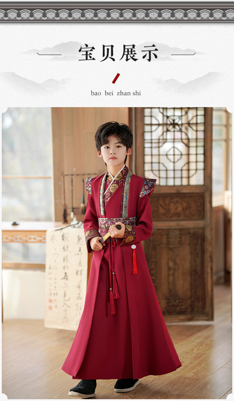 Детский ханьфу для мальчиков, осенний традиционный костюм в китайском стиле, 2023, костюм Тан в древнем стиле для мальчиков, маленький джентльмен, весенне-осенний стиль Тан.