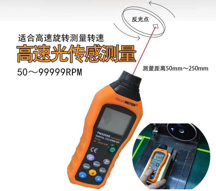 Цифровой контактный тахометр PEAKMETER Huayi PM6208A для измерения скорости двигателя